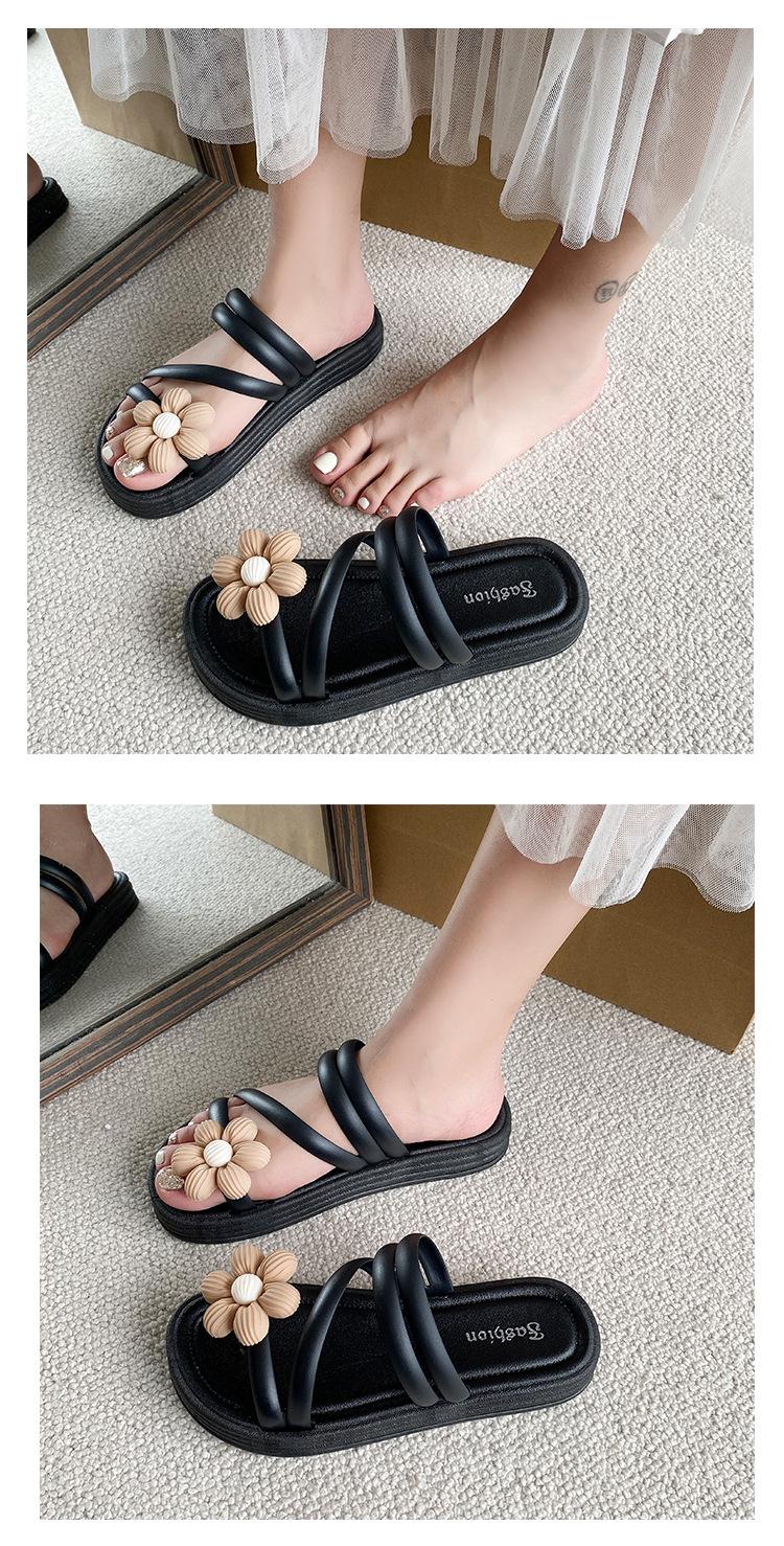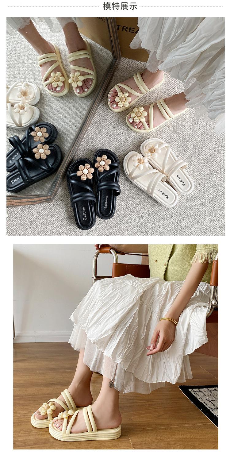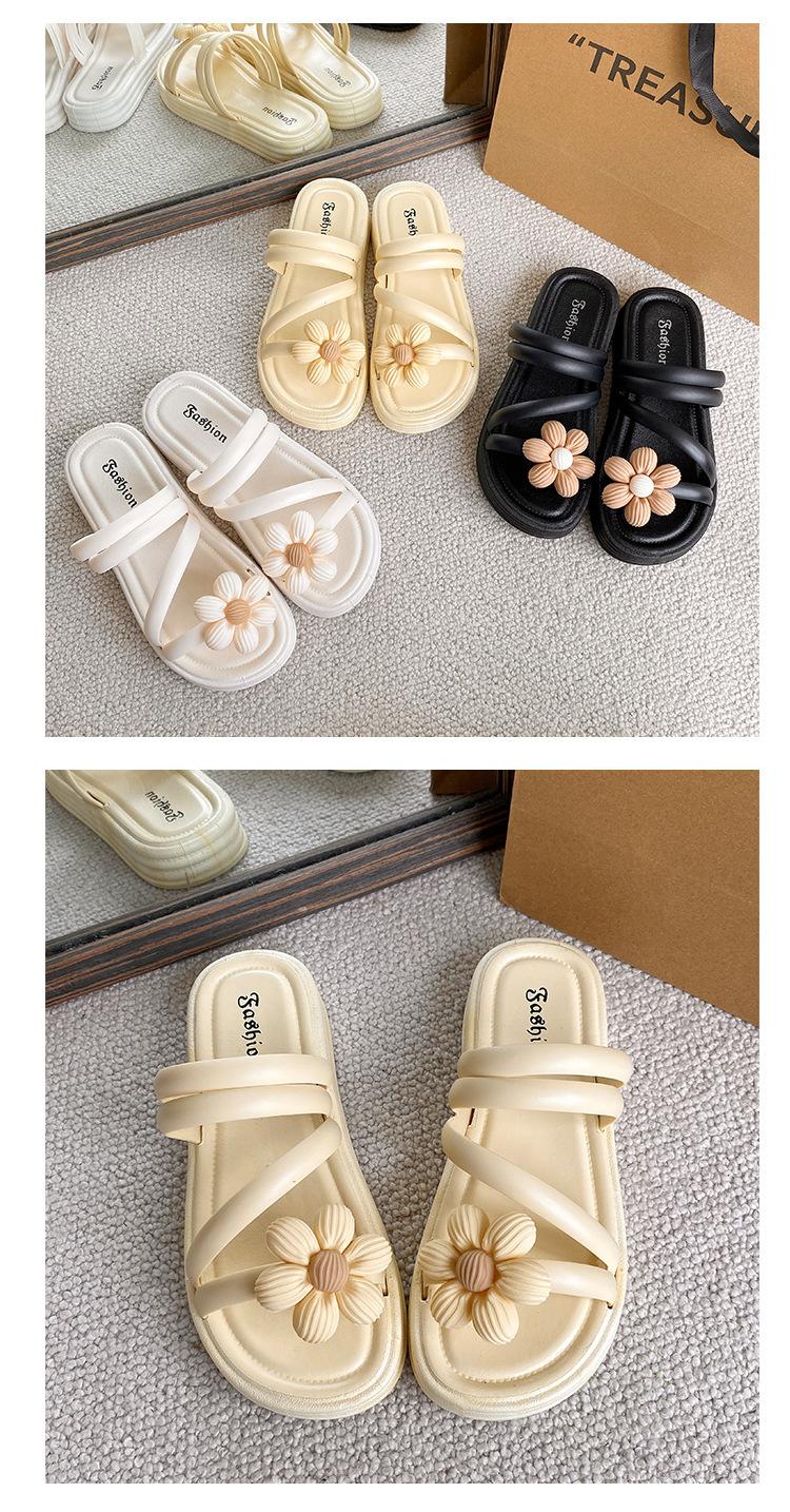 Pantuflas de Flores de Estilo Popular para Mujer Suela Gruesa Antideslizante Nueva Moda Verano Estilo Hada Pantuflas Zapatos Planos de Playa