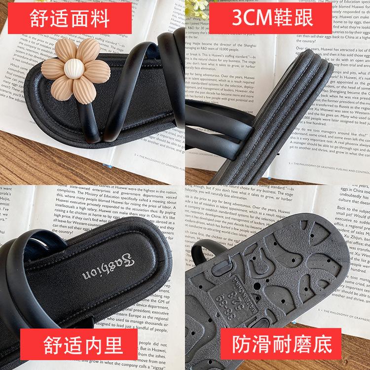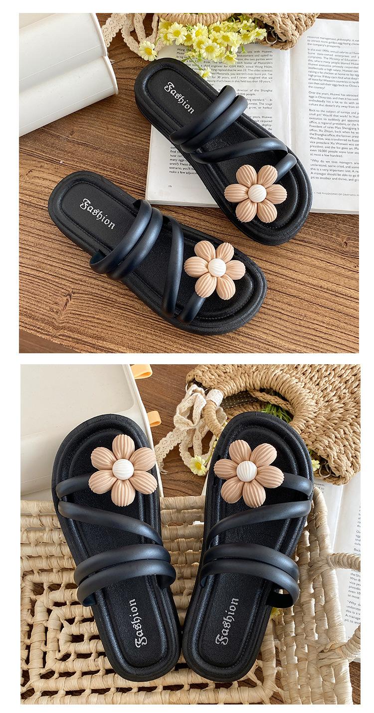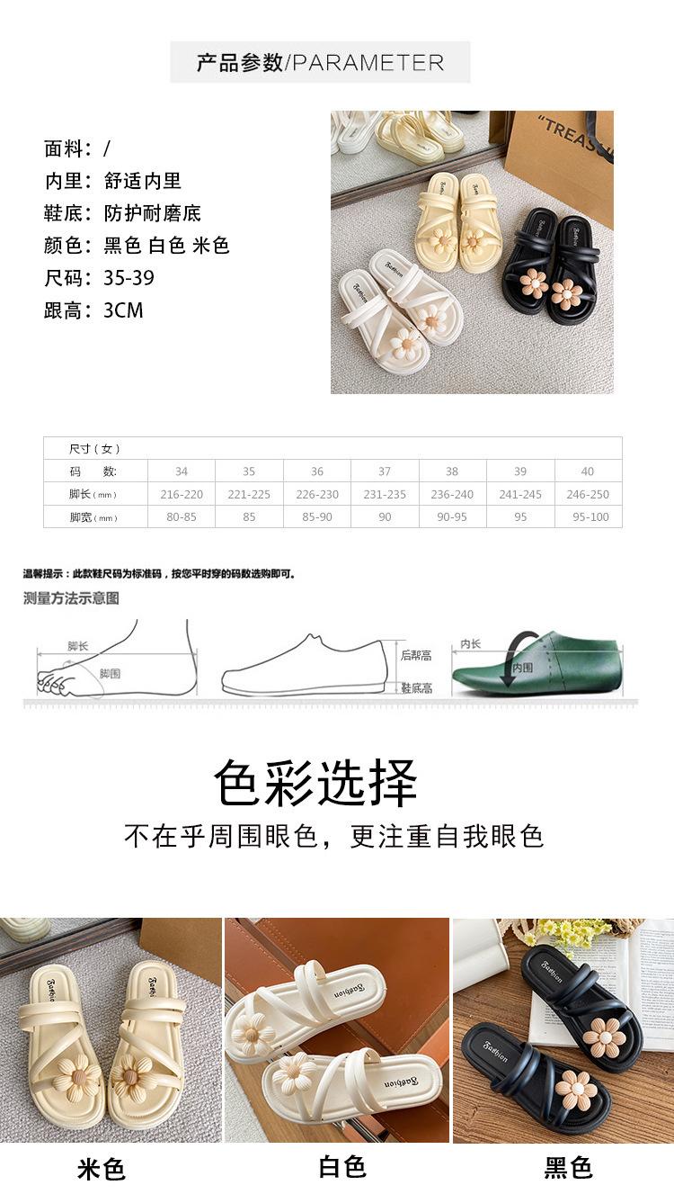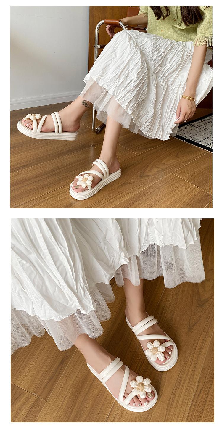 Pantuflas de Flores de Estilo Popular para Mujer Suela Gruesa Antideslizante Nueva Moda Verano Estilo Hada Pantuflas Zapatos Planos de Playa