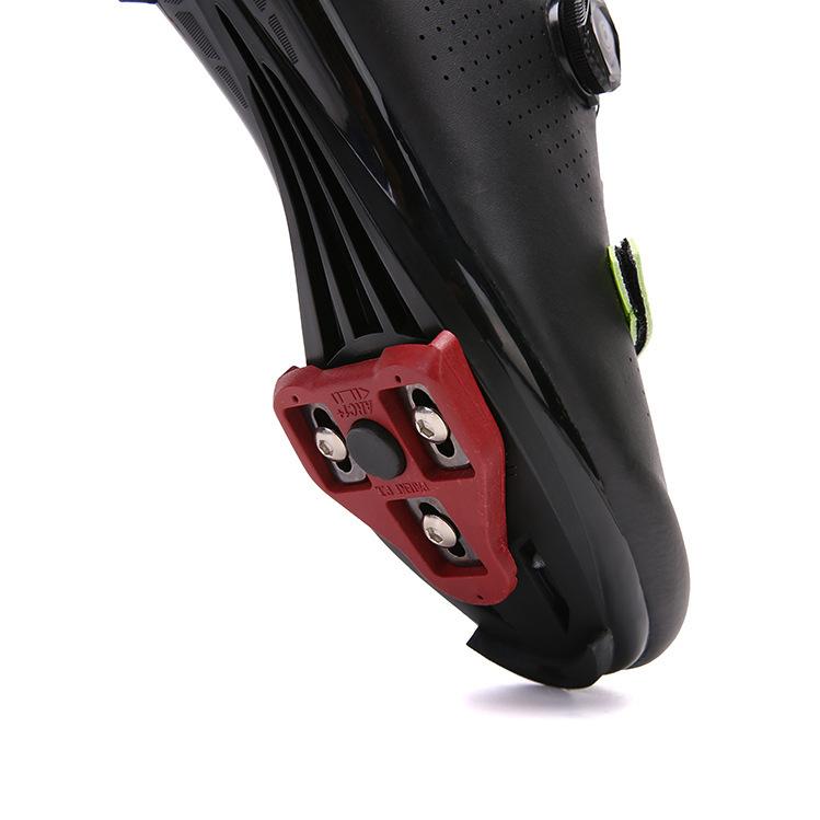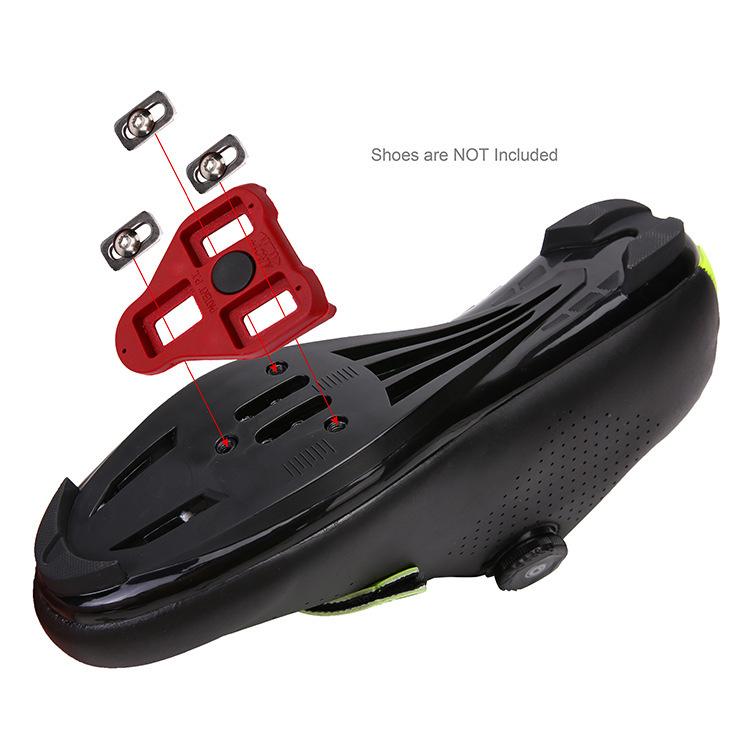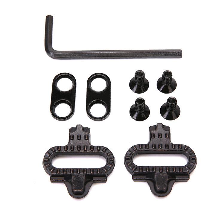 Black and yellow road lock plate, Red road lock plate, Black mountain cleats, All black road cleats
