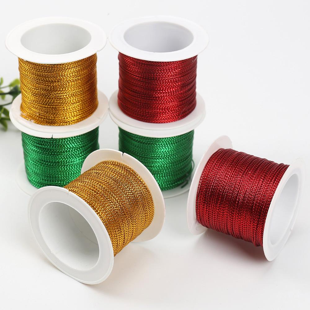 Línea de etiqueta dorada plateada de 1 mm 20 M alambre dorado línea colgante Cuerda de atado para embalaje de decoración de regalo de Navidad roja verde