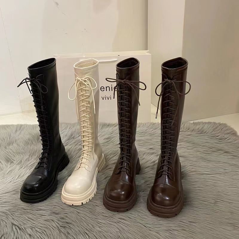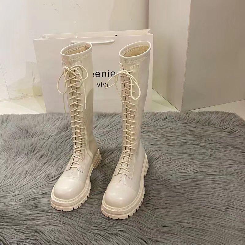 Botas largas blancas de suela gruesa zapatos de mujer 2022 nuevo primavera otoño e invierno pequeñas marrones verano botas largas de caballero