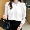 Camisa Plisada de Cuello Mao Francés para Mujer 2025 Diseño Nuevo Nicho Suelto Manga Larga Top de Satén Gasa