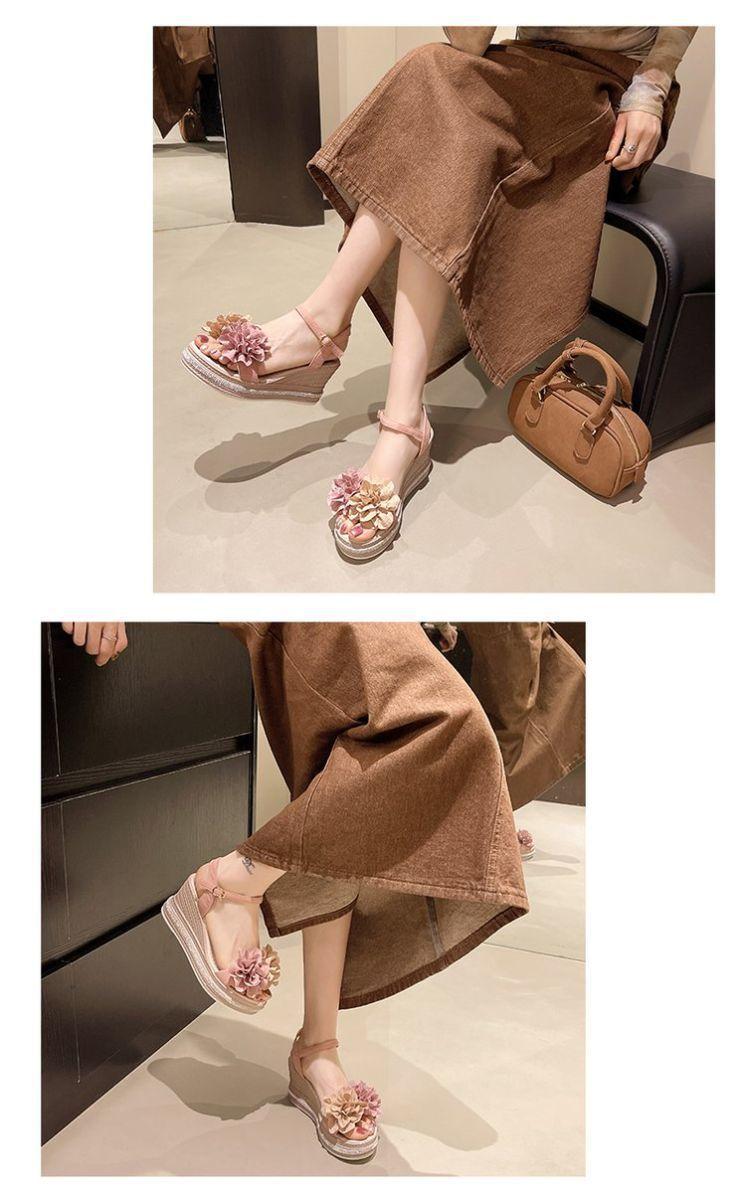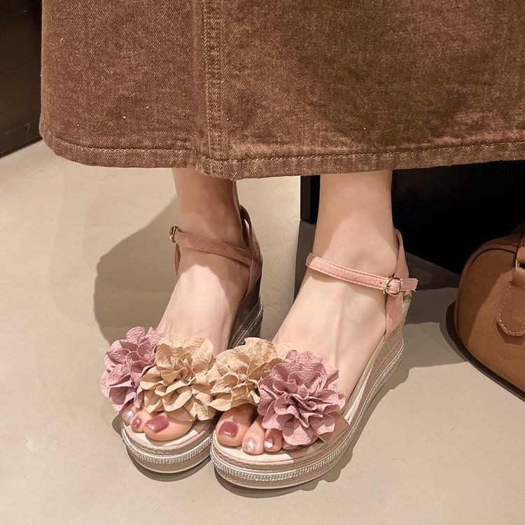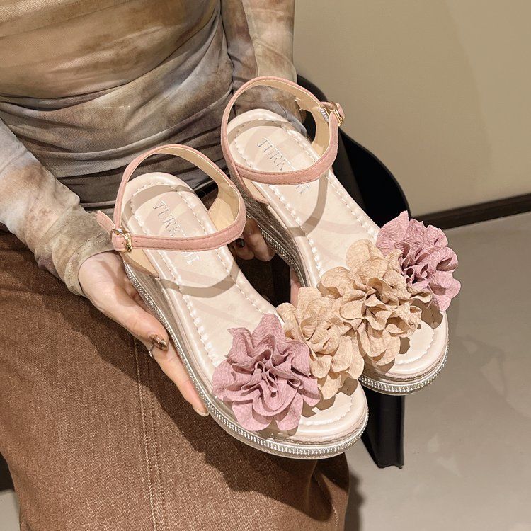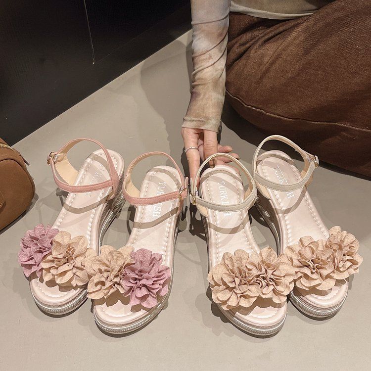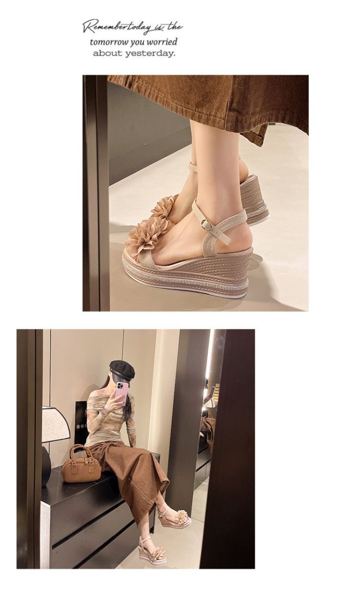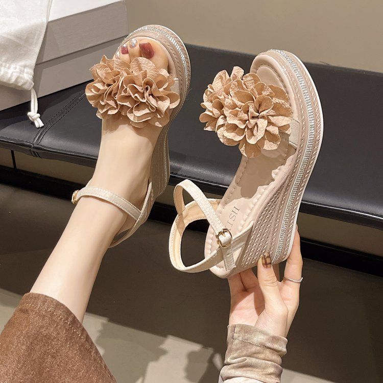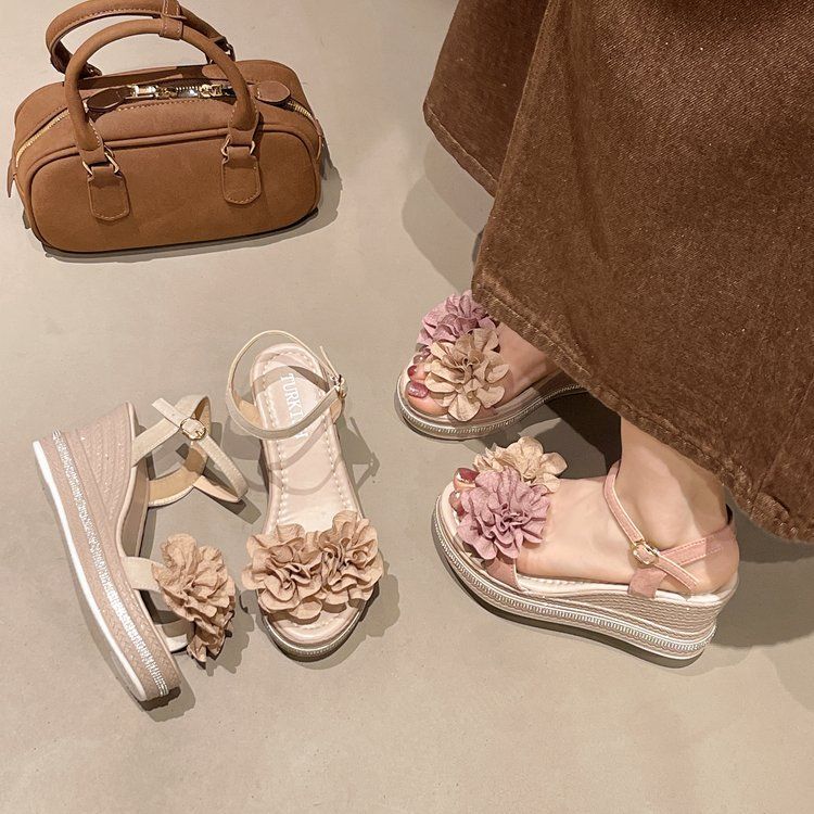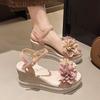 Sandalias de Cuña para Mujer 2025 Verano Nuevo Tacón Alto Plano Moda Exterior Sandalias Gruesas de Alta Gama Combinan con Todo Adelgazantes