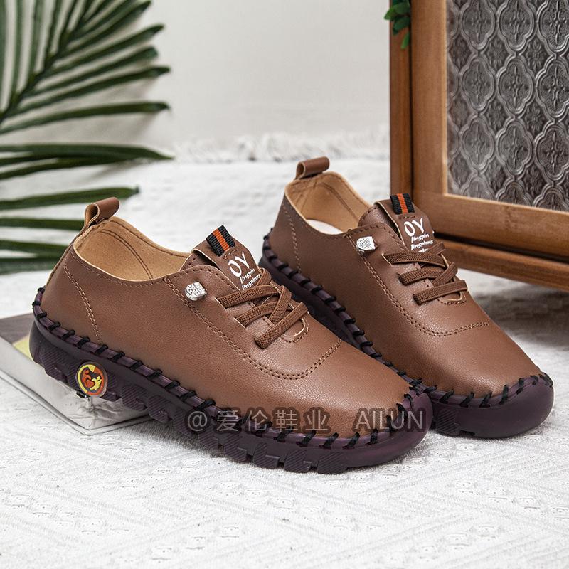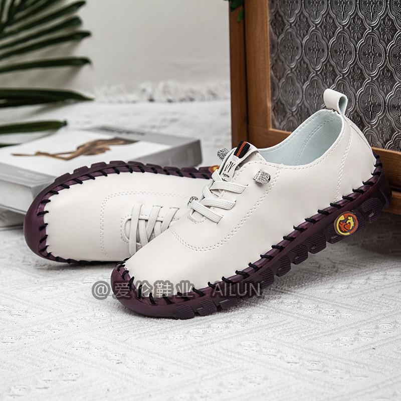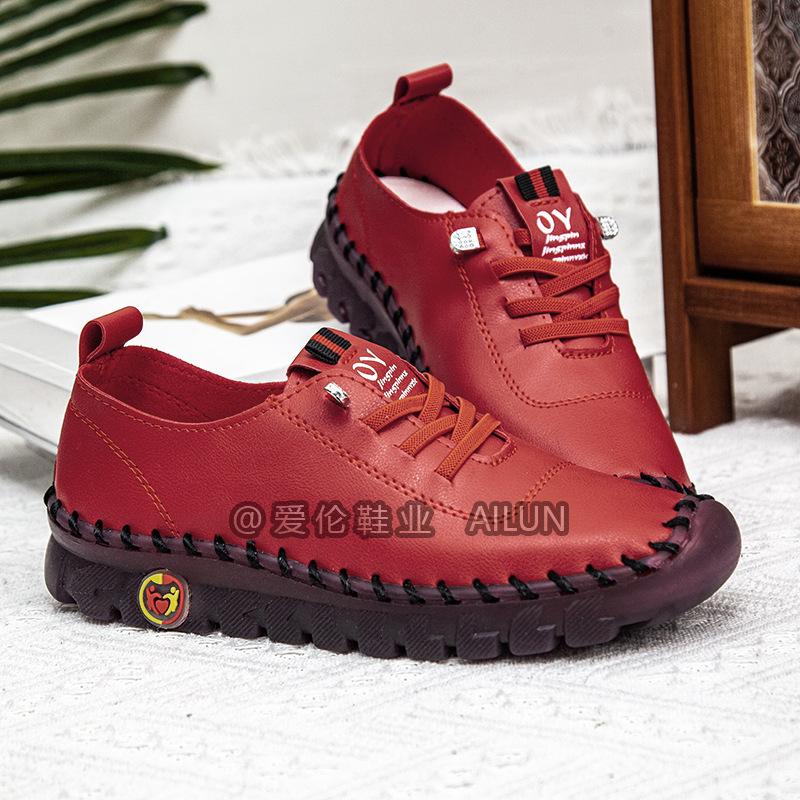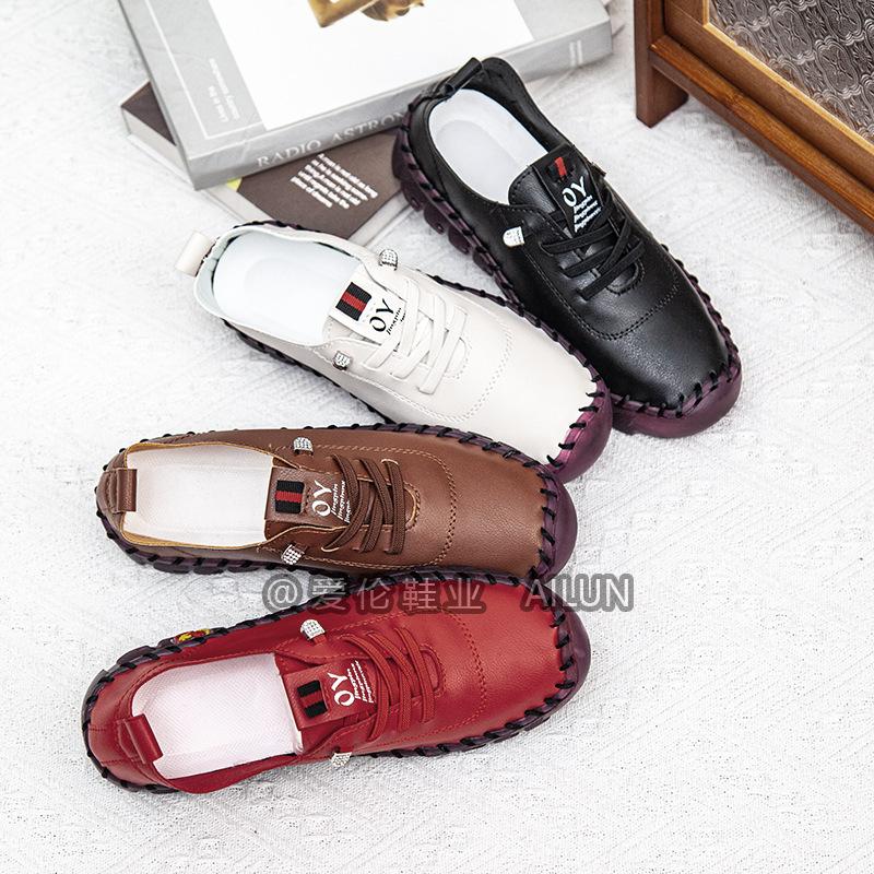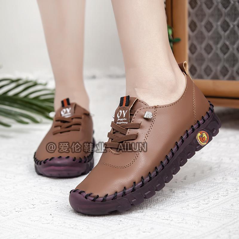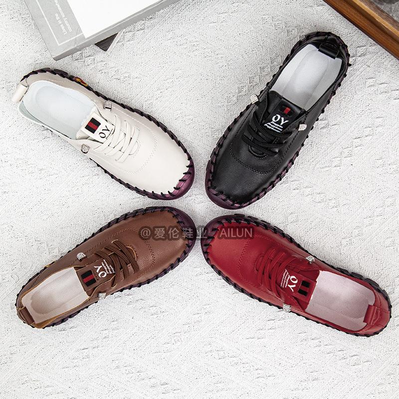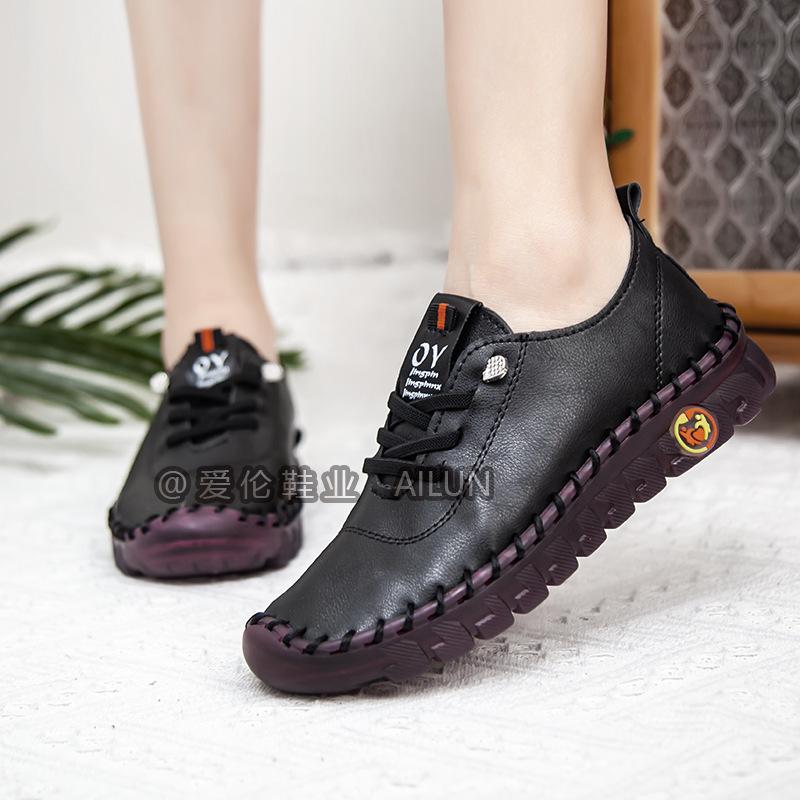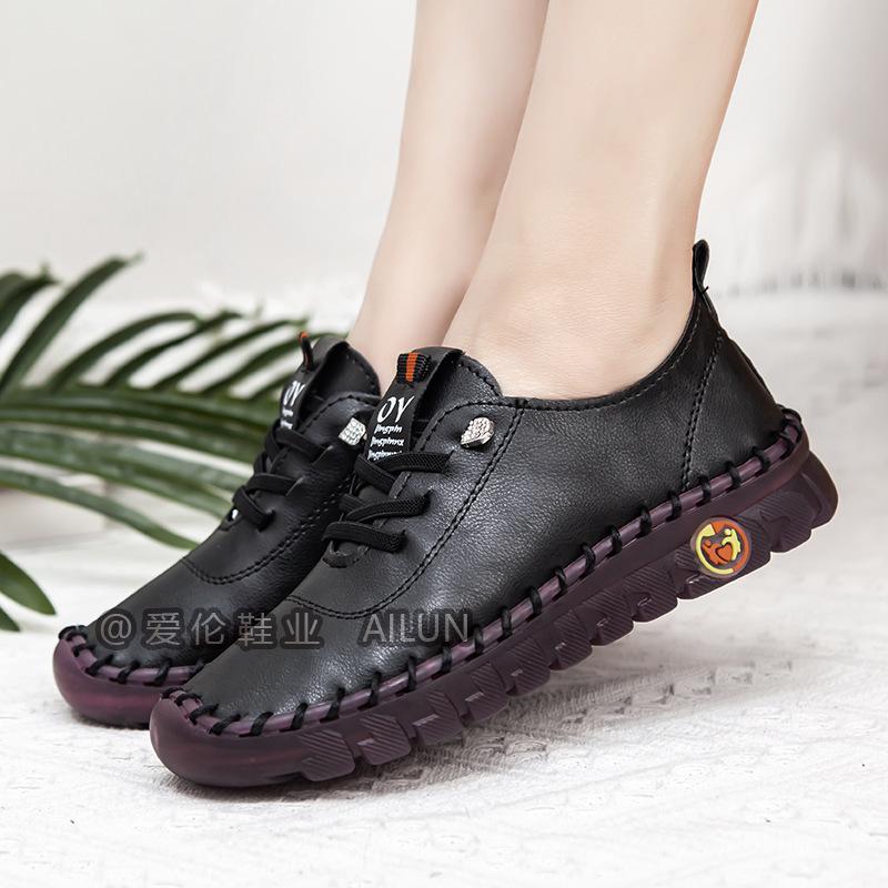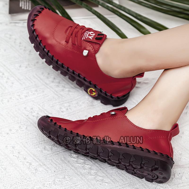 En stock, zapatos para estudiantes transfronterizos de Amazon, cosidos a mano, de talla grande, zapatos planos de estación independiente para mujer, zapatos casuales para mamás