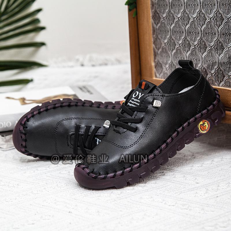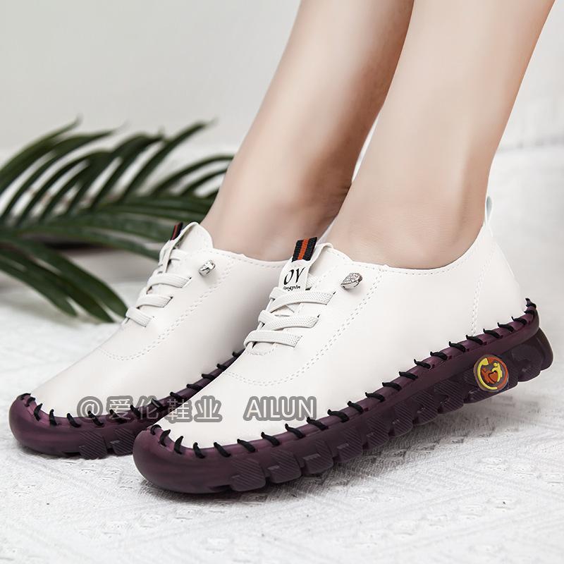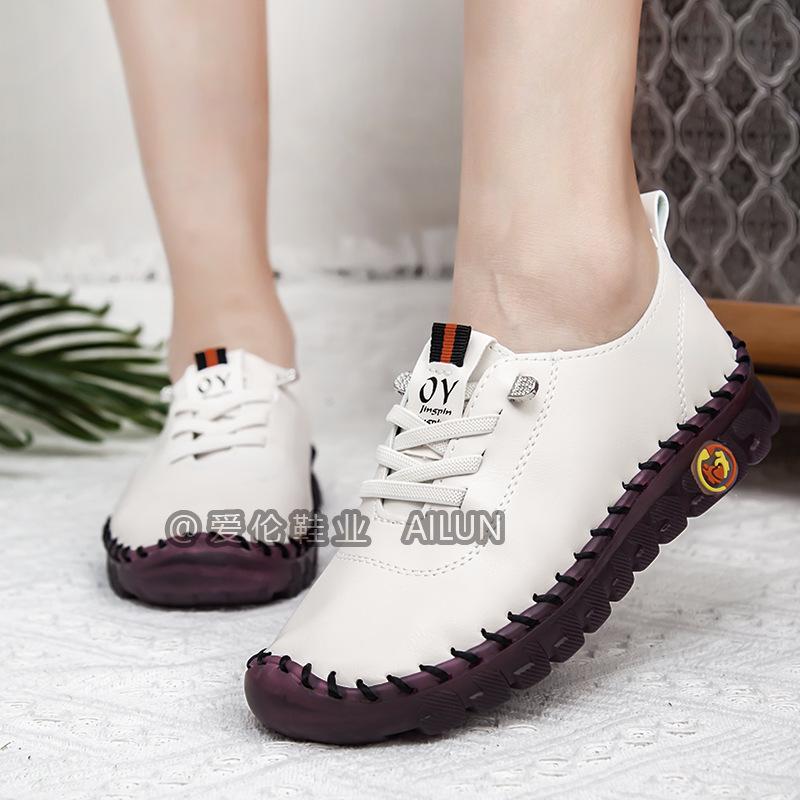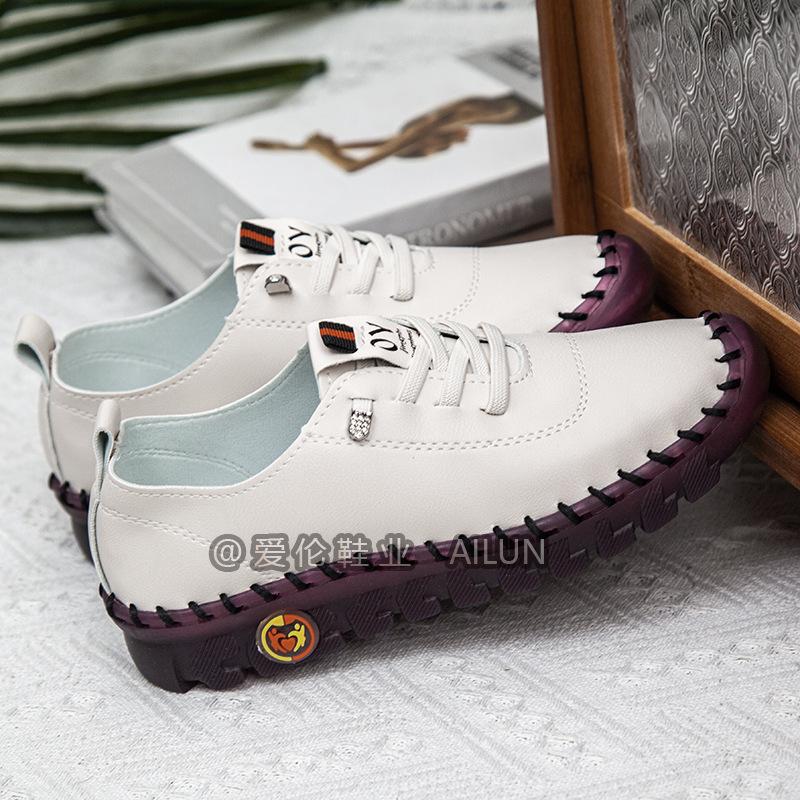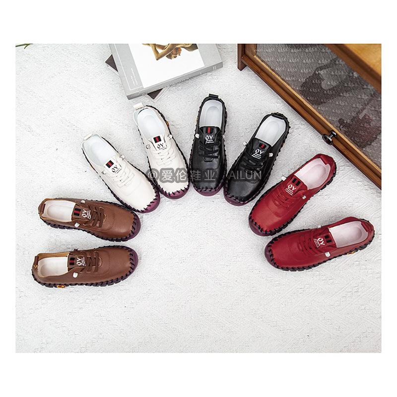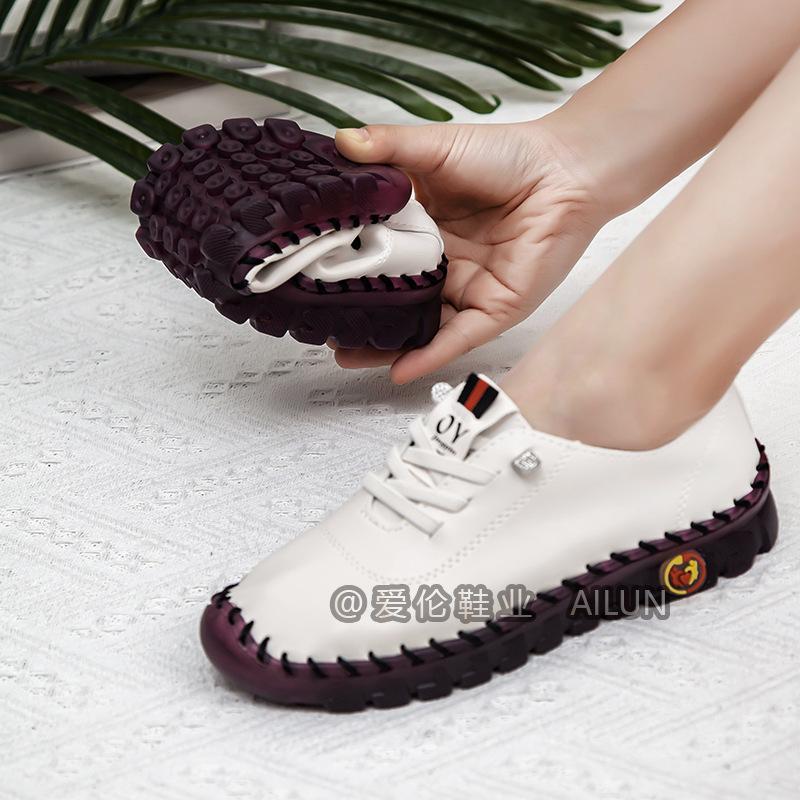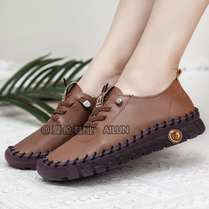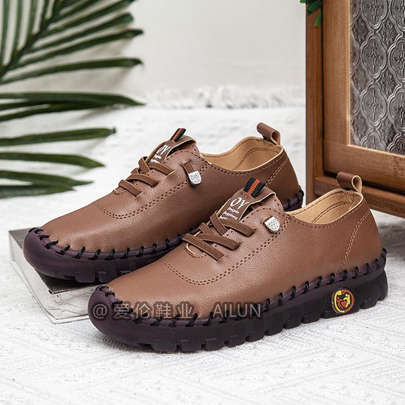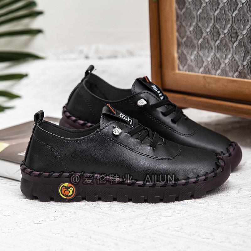 En stock, zapatos para estudiantes transfronterizos de Amazon, cosidos a mano, de talla grande, zapatos planos de estación independiente para mujer, zapatos casuales para mamás