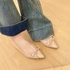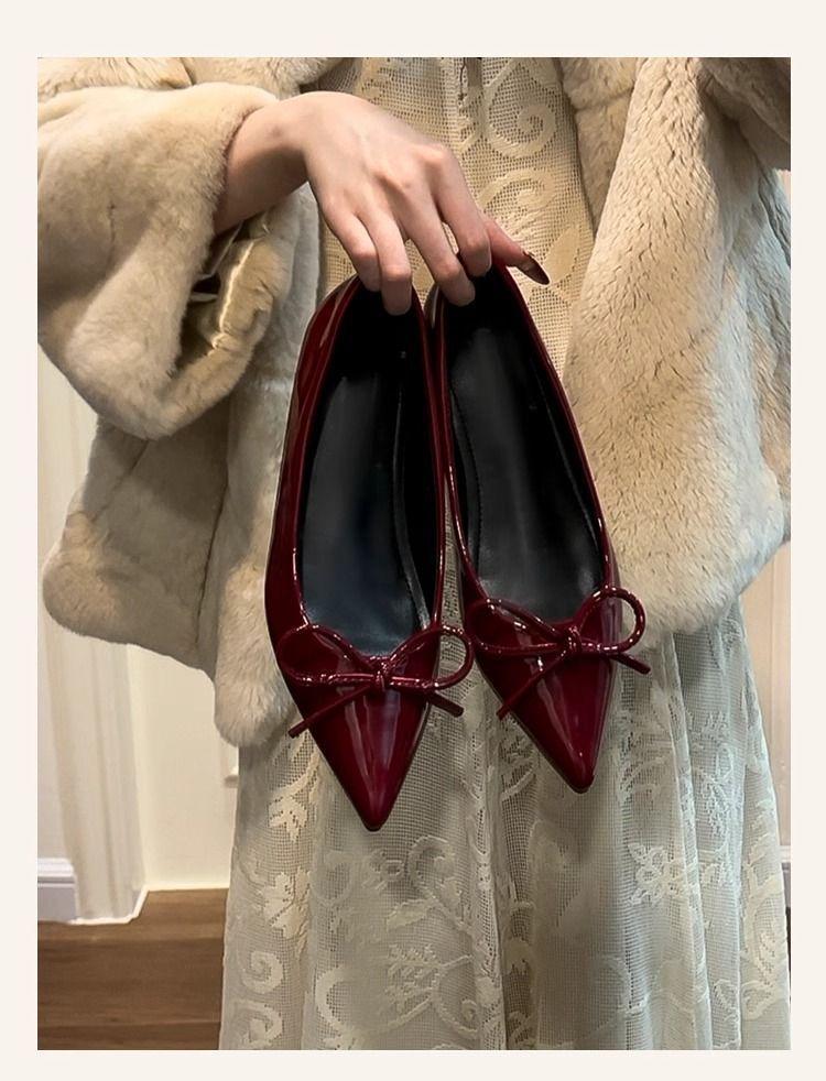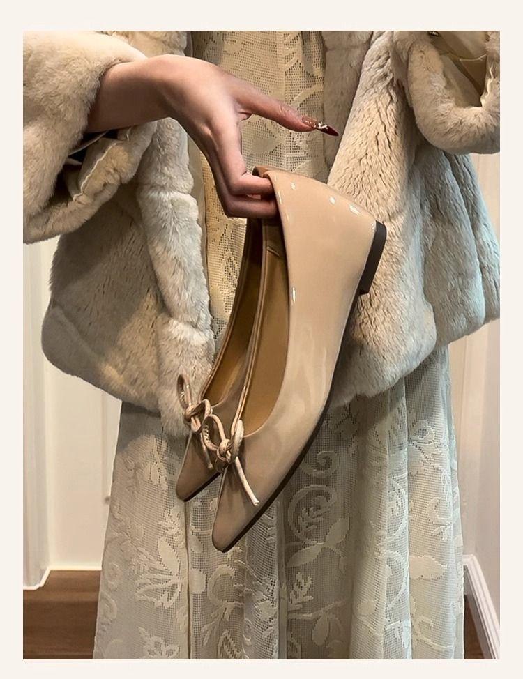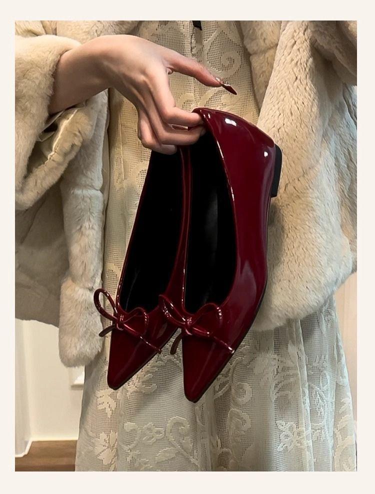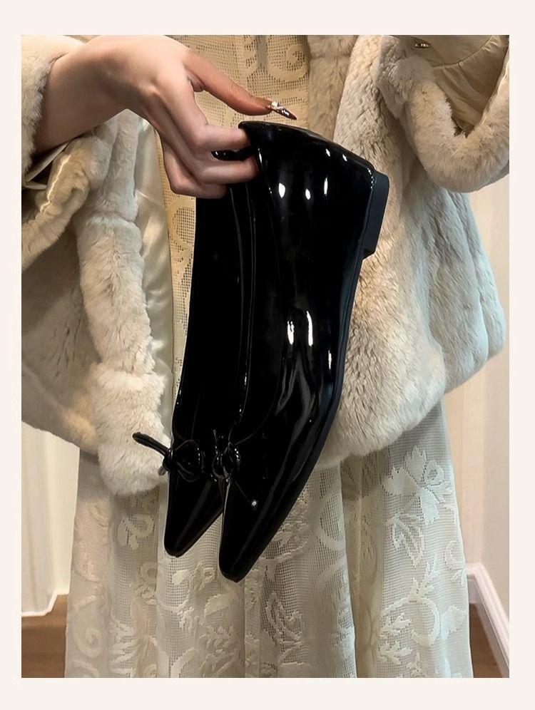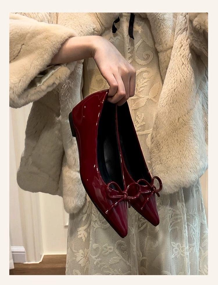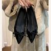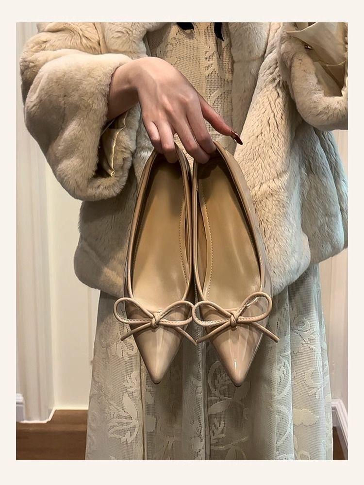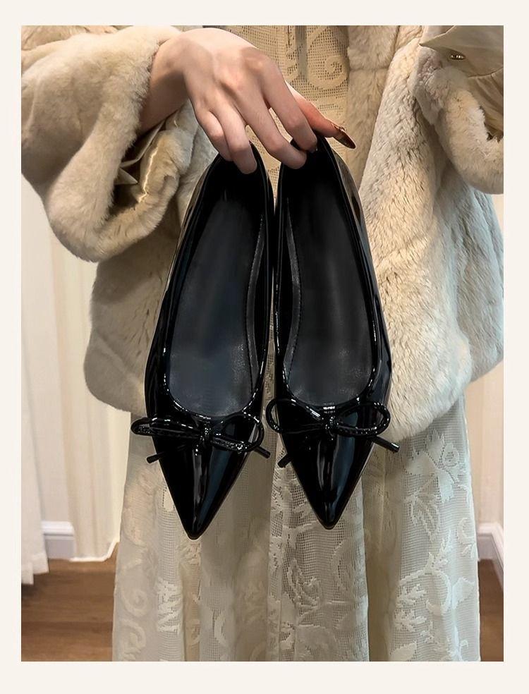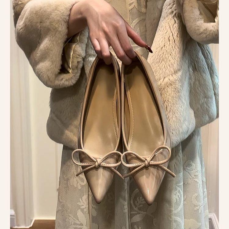 Zapatos Elegantes de Estilo Coreano con Lazo de Boca Baja y Tacón Grueso 2025 Nuevos Versátiles Sexys Punta Afilada Suela Blanda Slip-On
