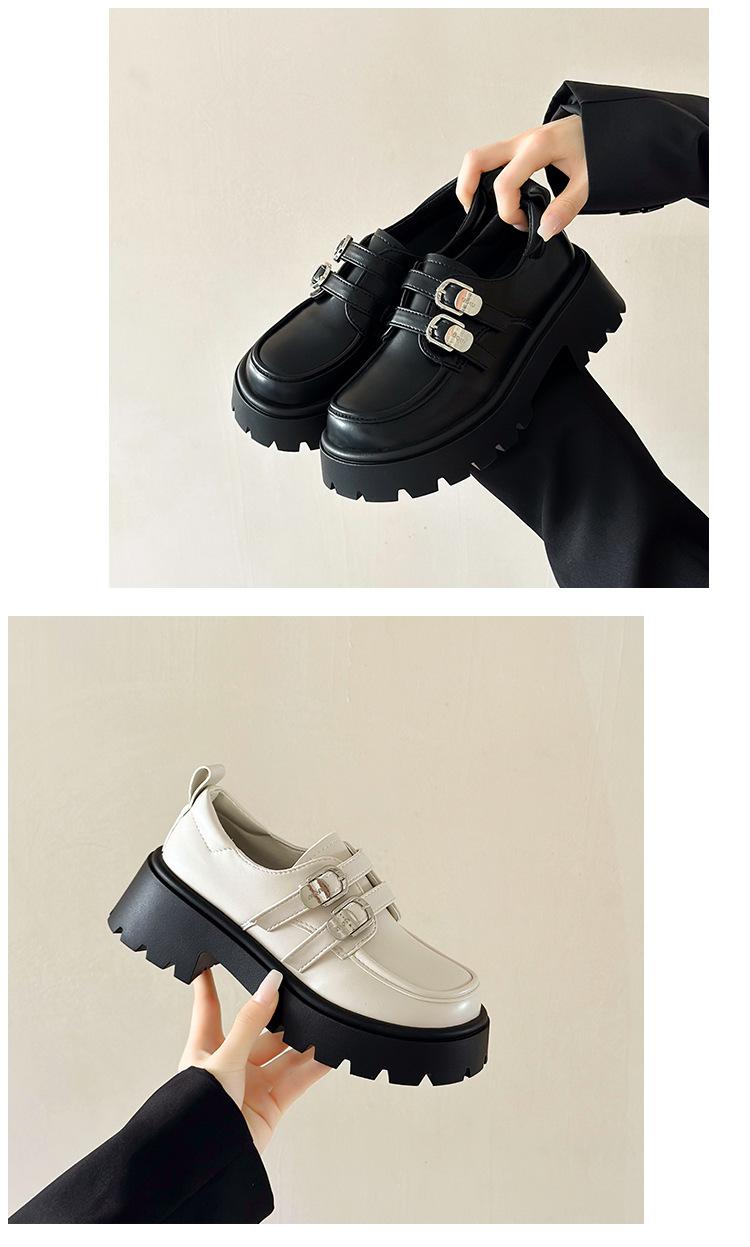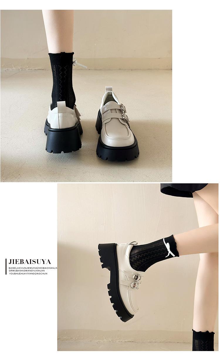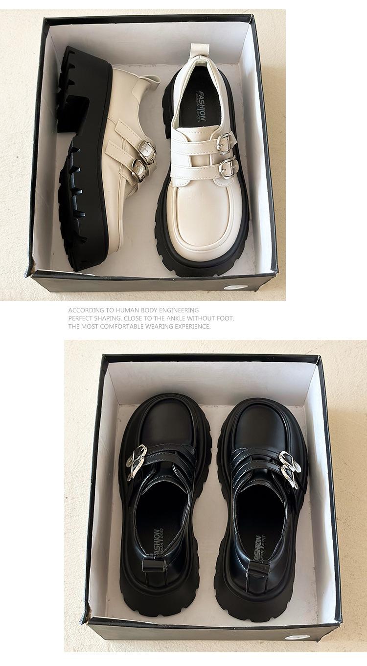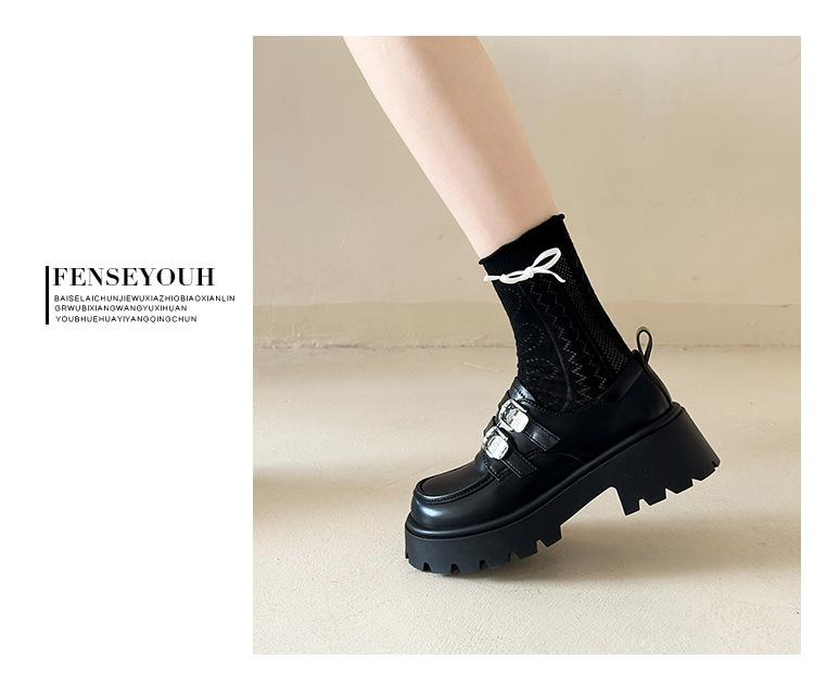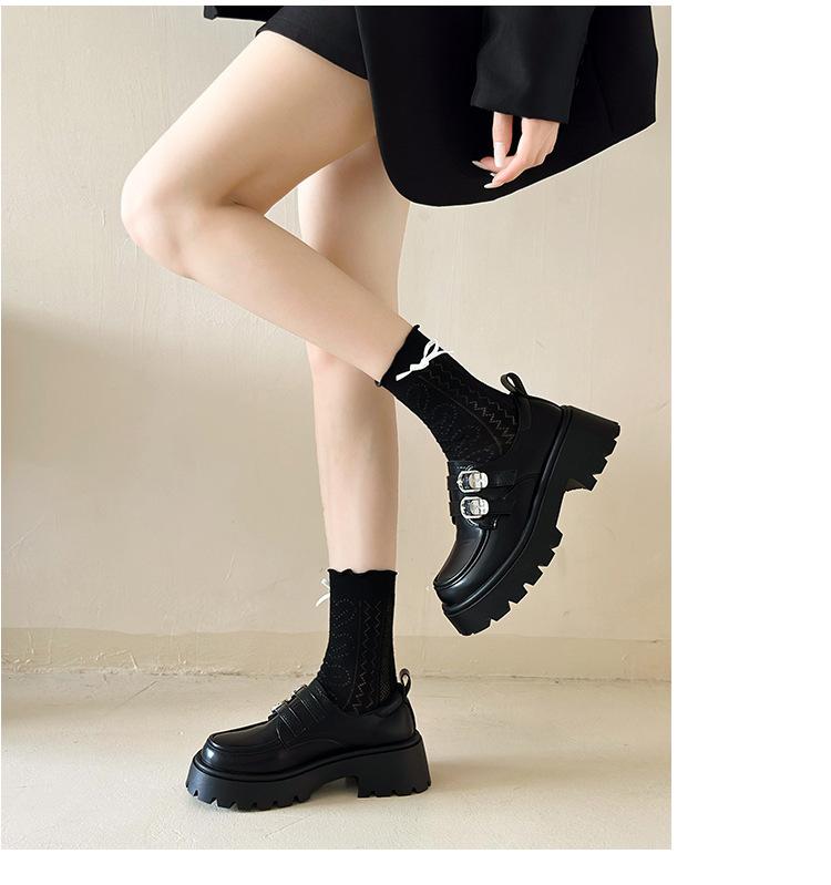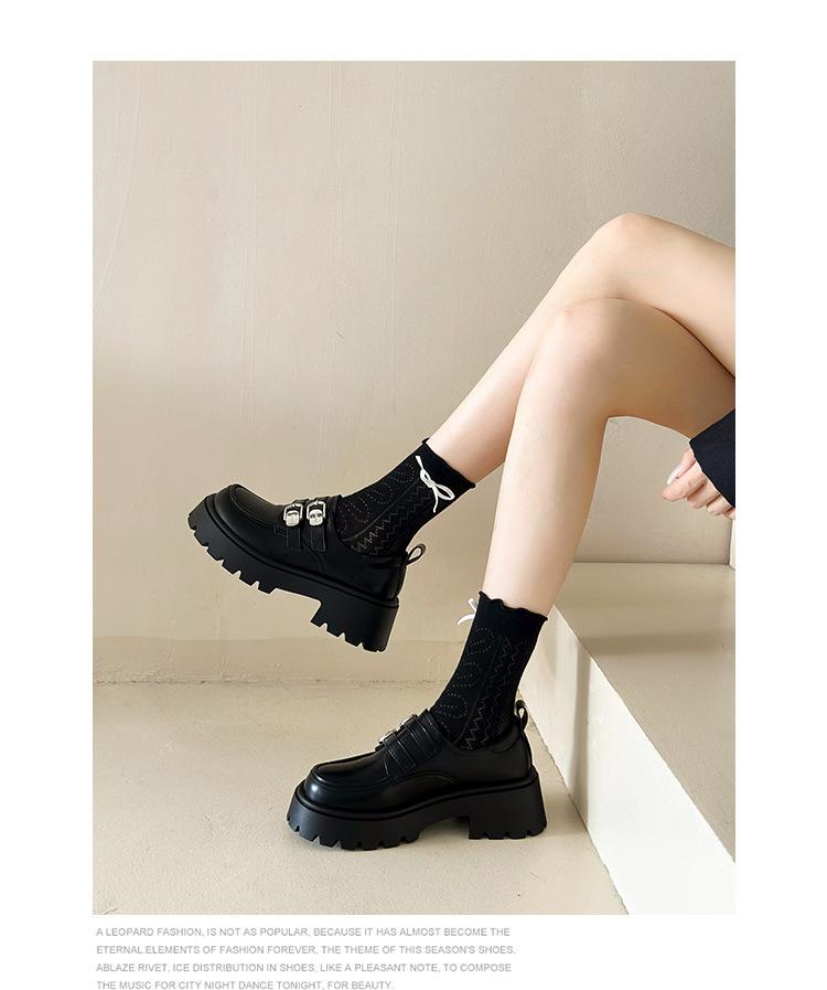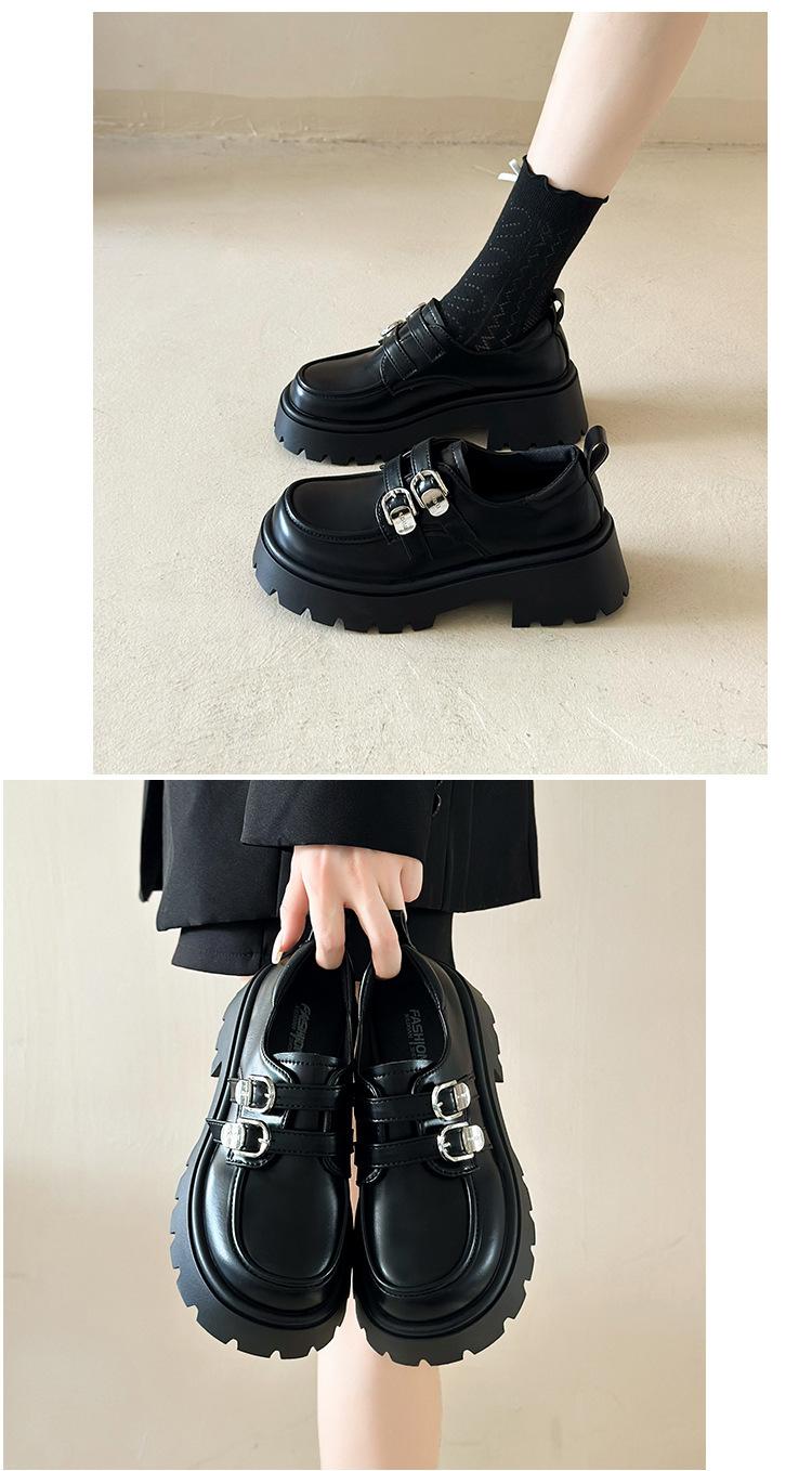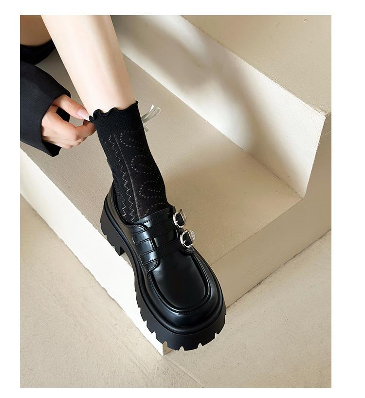Compra Zapatos de Cuero Negro de Tacón Alto Grueso Estilo Francés para Mujer Venta al por Mayor Nuevos Mocasines Versátiles de Suela Gruesa que Aumentan la Estatura Modernos Cool al por mayor en Joom.pro