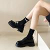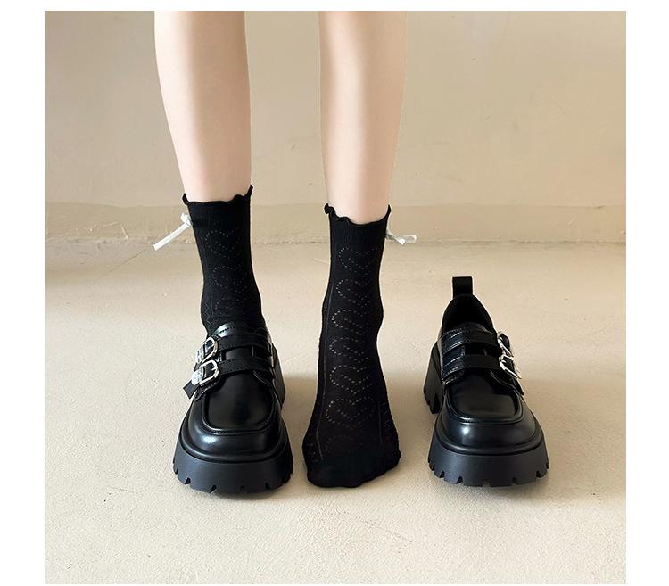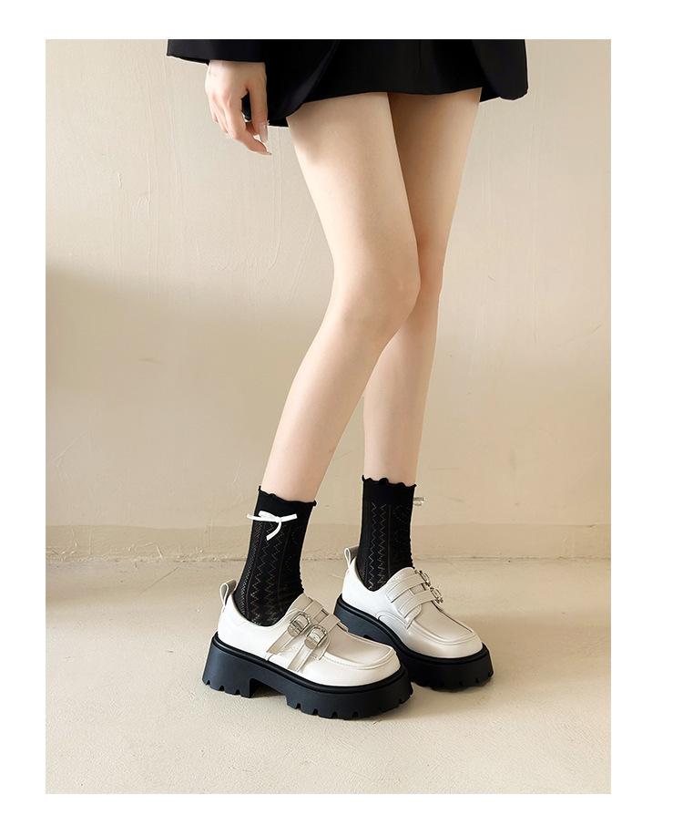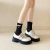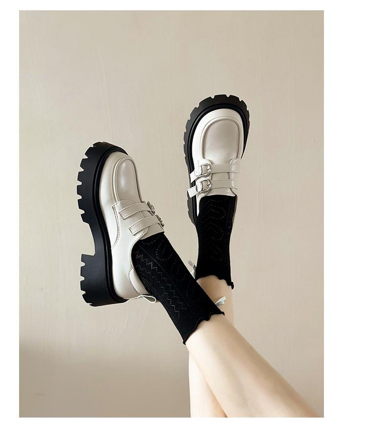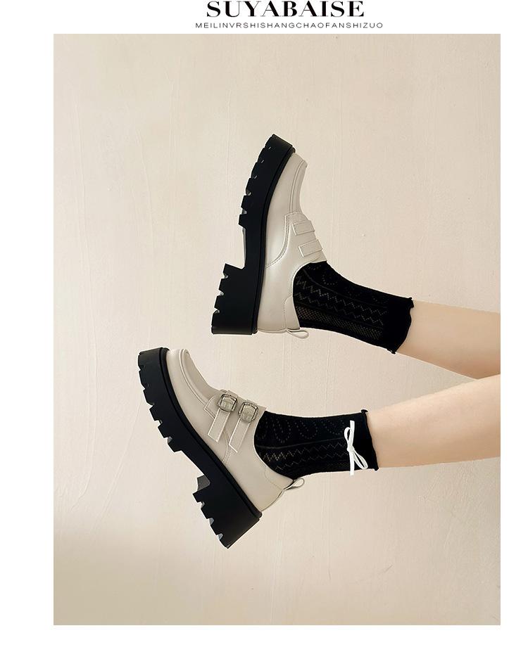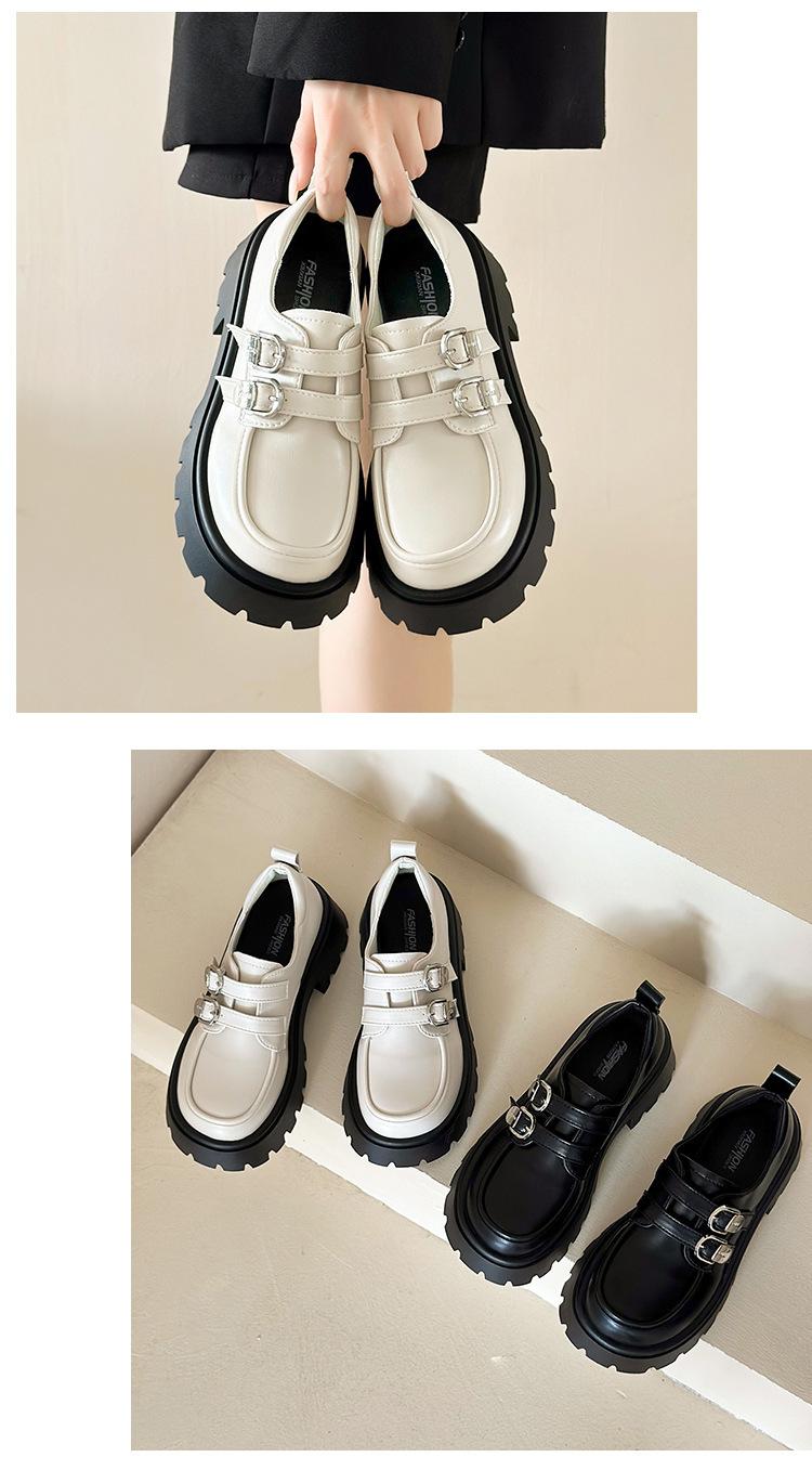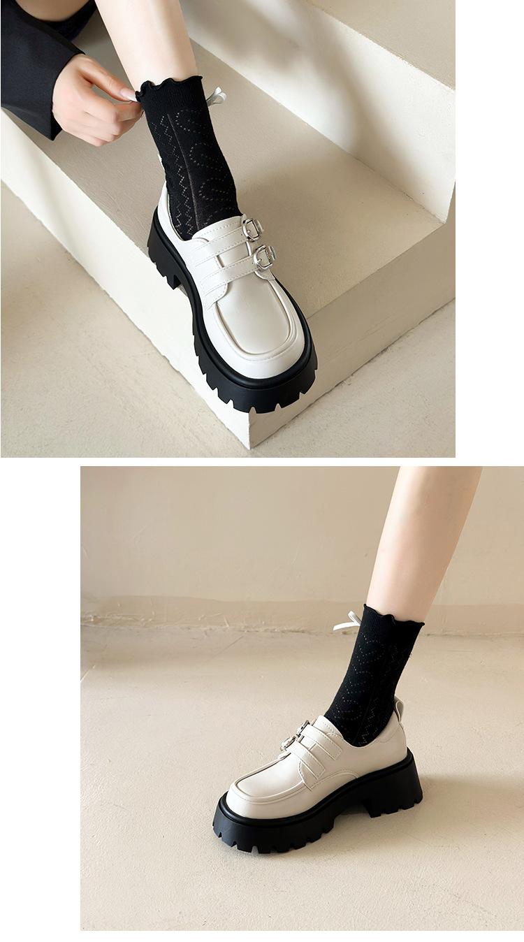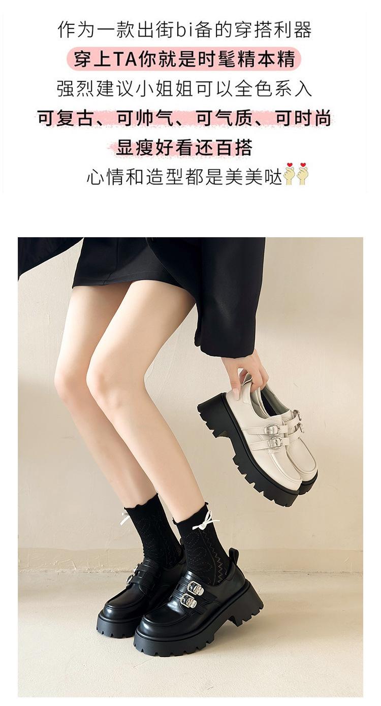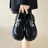 Compra Zapatos de Cuero Negro de Tacón Alto Grueso Estilo Francés para Mujer Venta al por Mayor Nuevos Mocasines Versátiles de Suela Gruesa que Aumentan la Estatura Modernos Cool al por mayor en Joom.pro