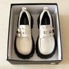 Zapatos de Cuero Negro de Tacón Alto Grueso Estilo Francés para Mujer Venta al por Mayor Nuevos Mocasines Versátiles de Suela Gruesa que Aumentan la Estatura Modernos Cool
