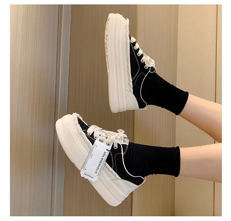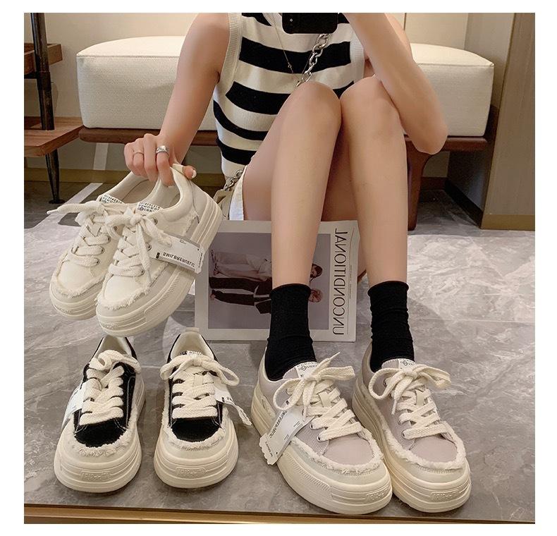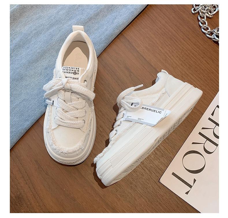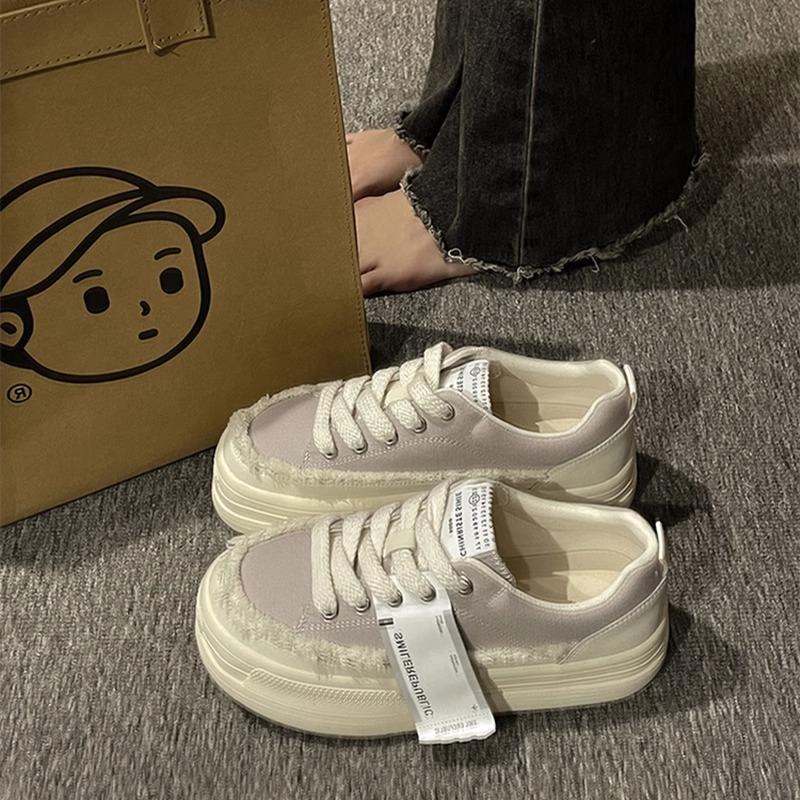 Zapatos de Lona para Mujer 2025 Nuevo Popular Versátil de Suela Gruesa para Aumentar la Altura Casual Deportivo Diseño de Nicho Feo Lindo Tenis Blancos