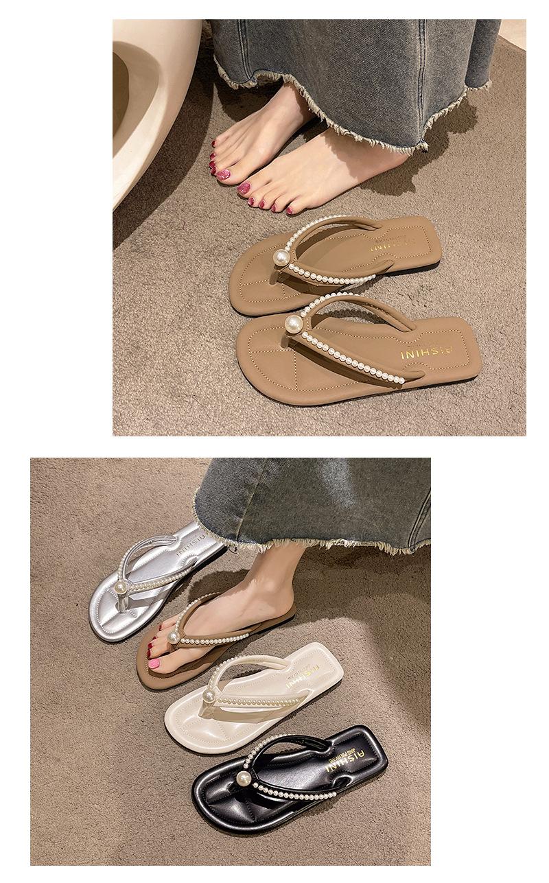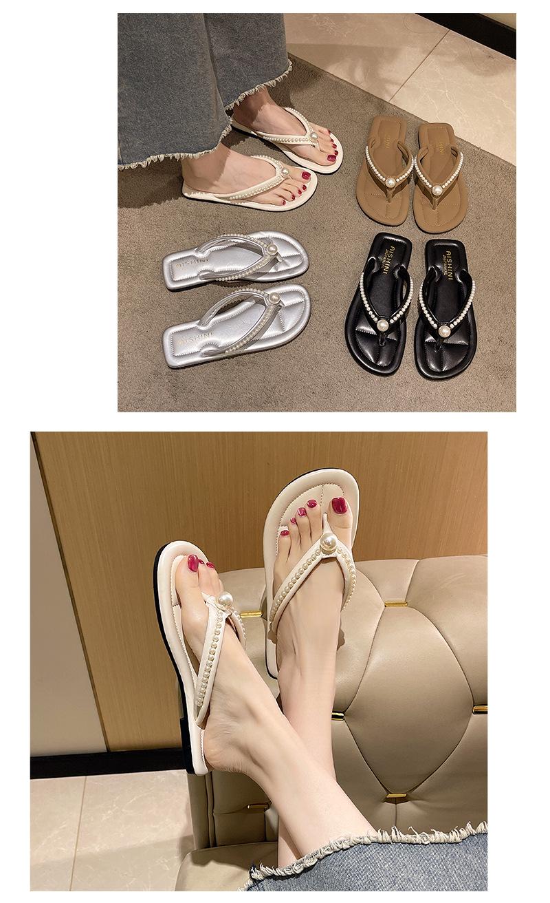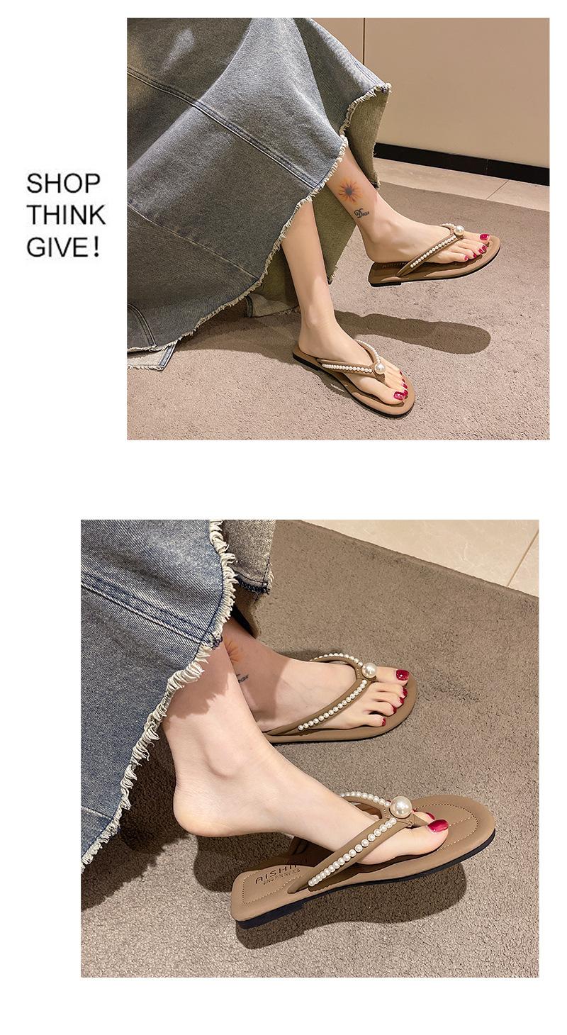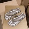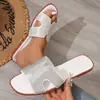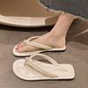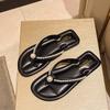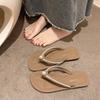 Sandalias de dedo para mujer 2025 verano nuevo moda coreana usar pedrería dedo tacón plano playa sandalias al por mayor
