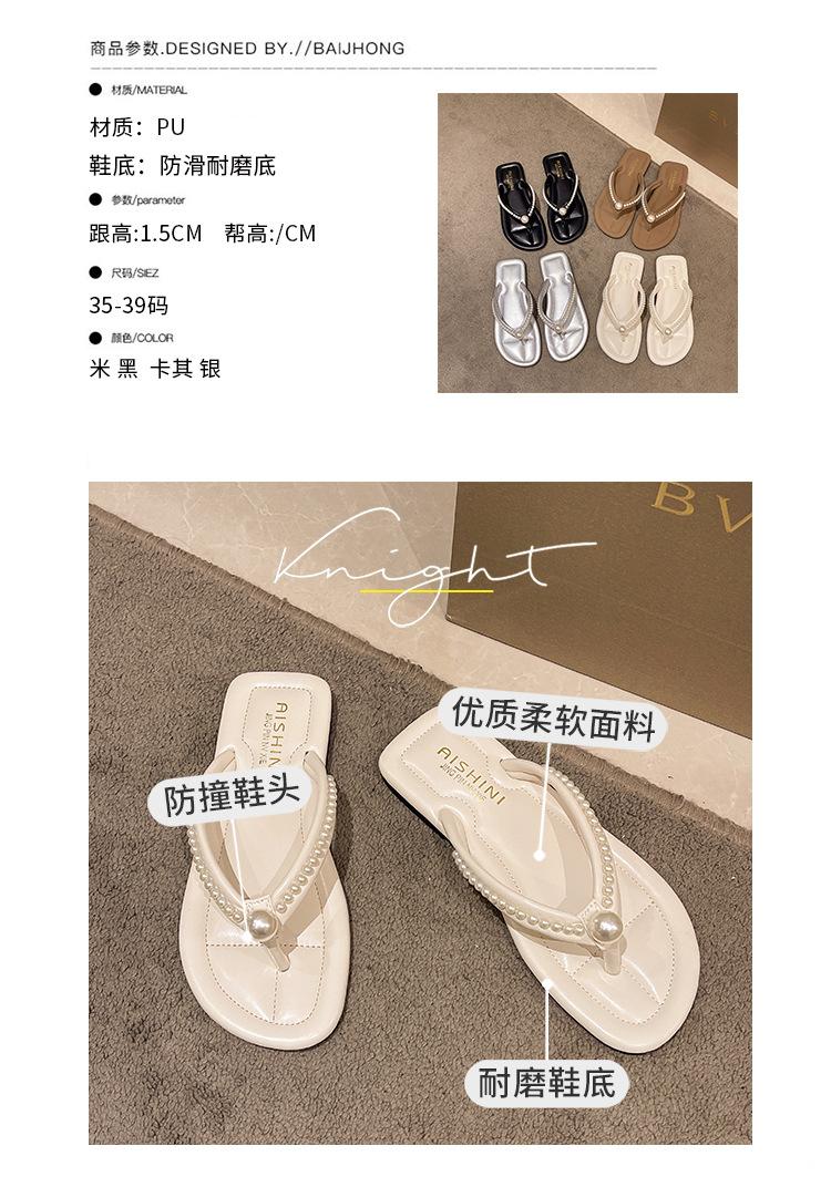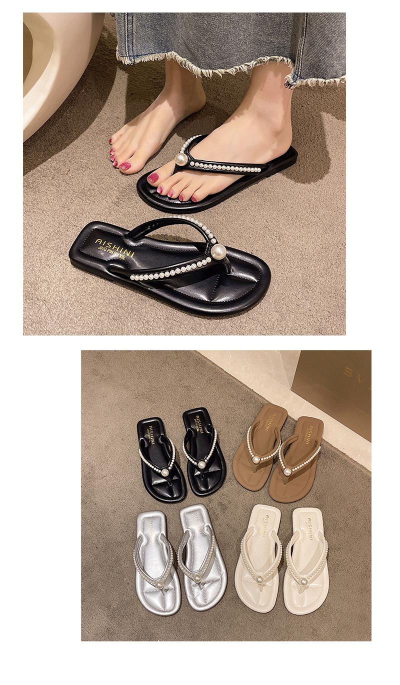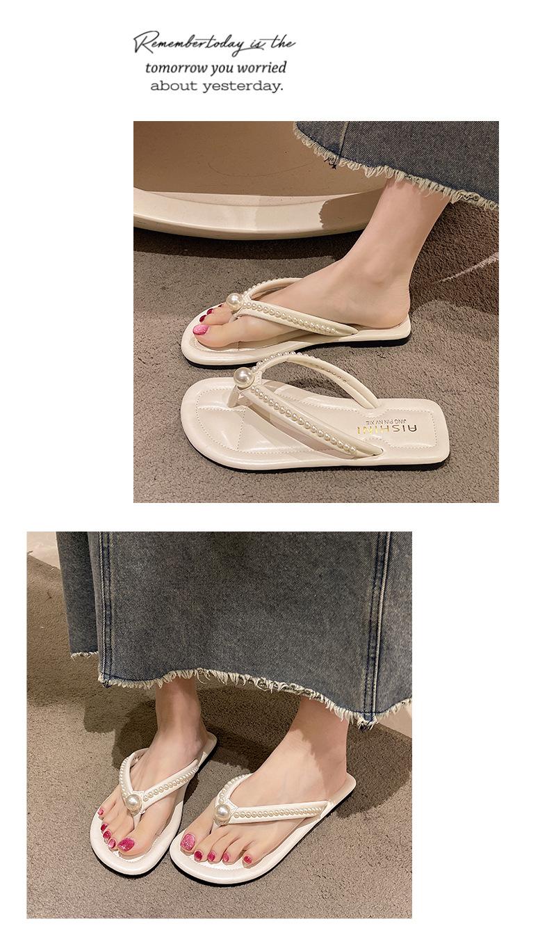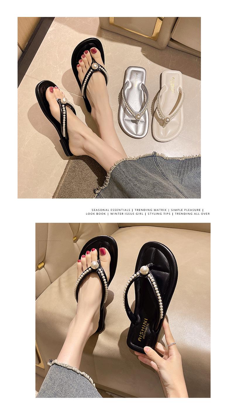 Sandalias de dedo para mujer 2025 verano nuevo moda coreana usar pedrería dedo tacón plano playa sandalias al por mayor