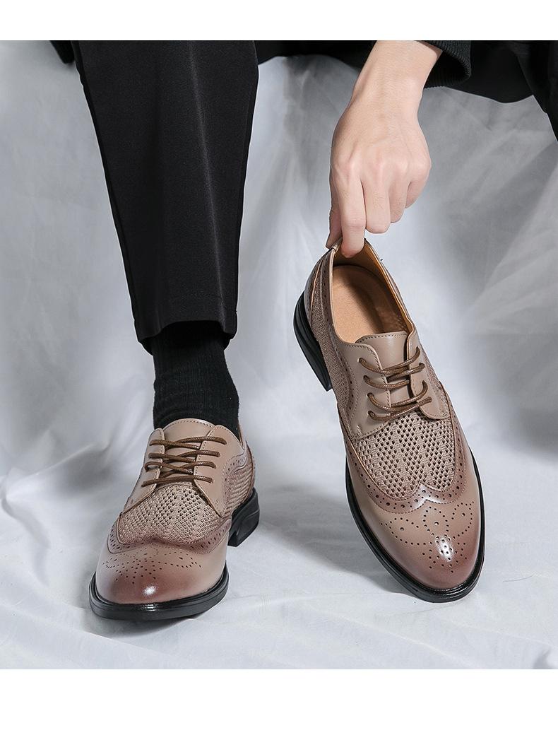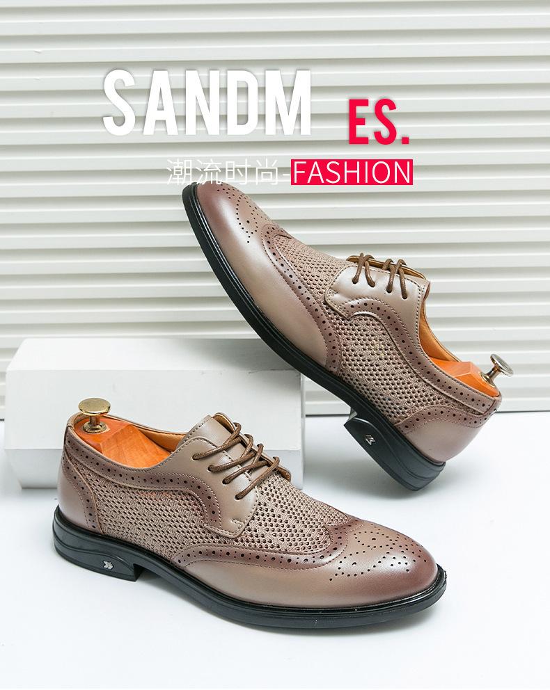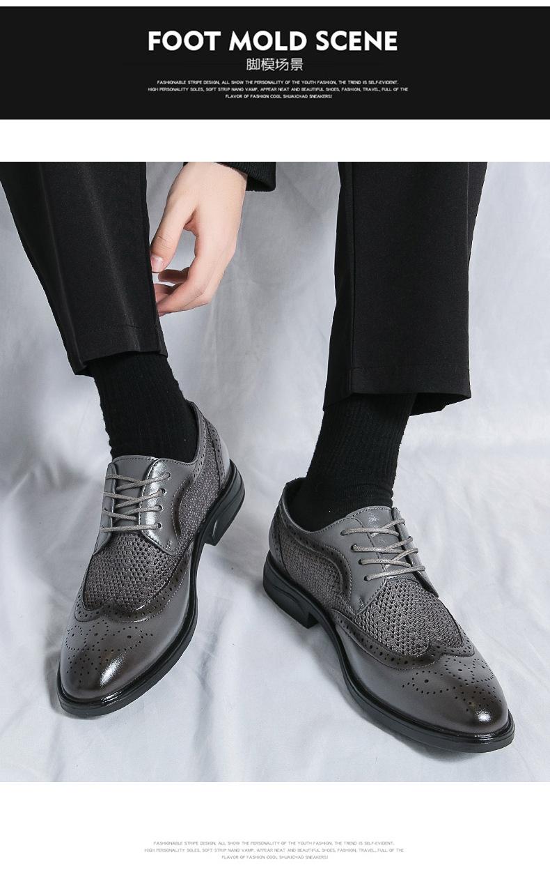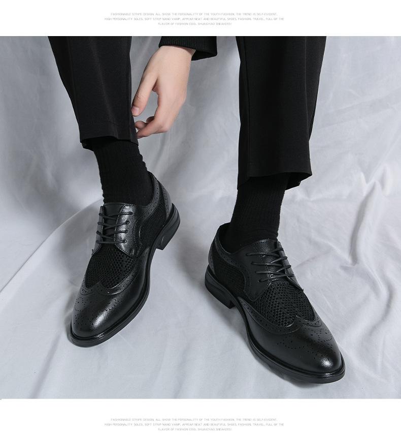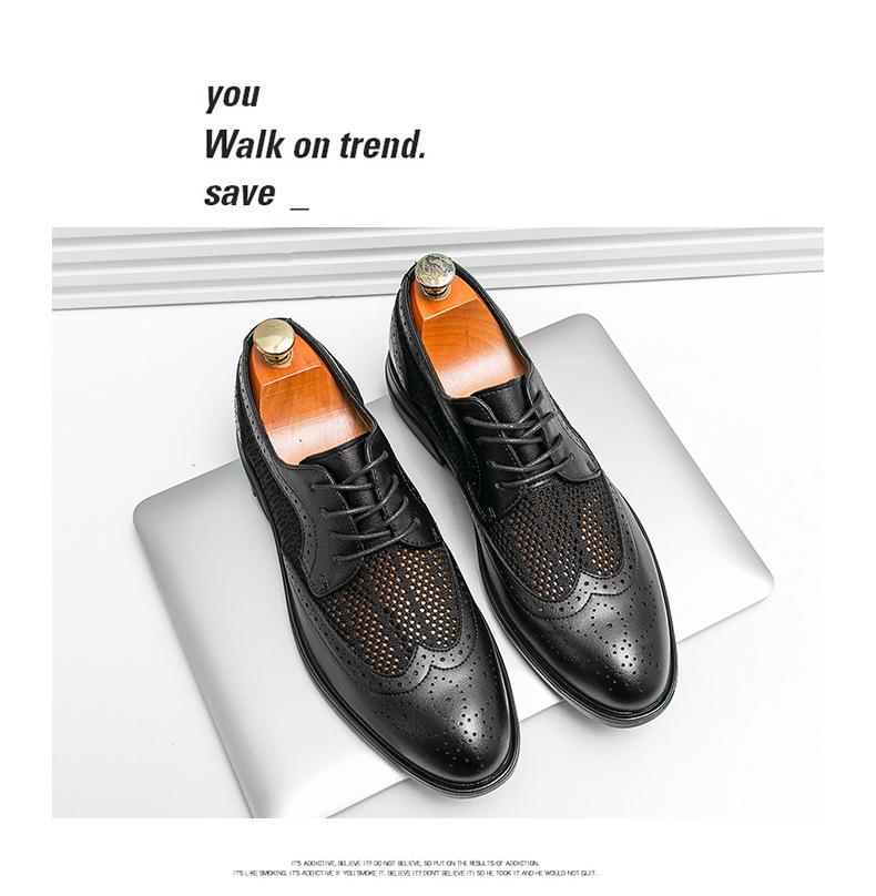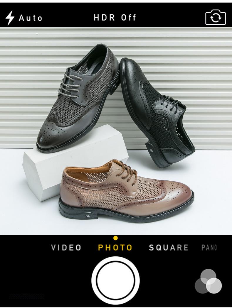 Zapatos de hombre de comercio exterior de primavera 2025 talla grande zapatos de cuero huecos zapatos casuales de hombre de suela gruesa zapatos de cuero de malla transpirable zapatos bajos de moda
