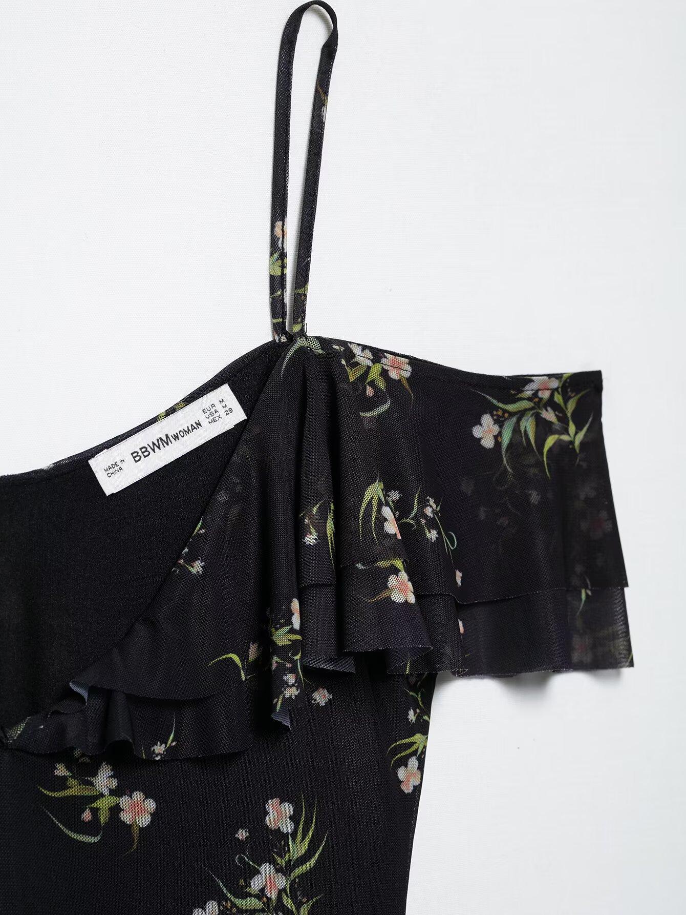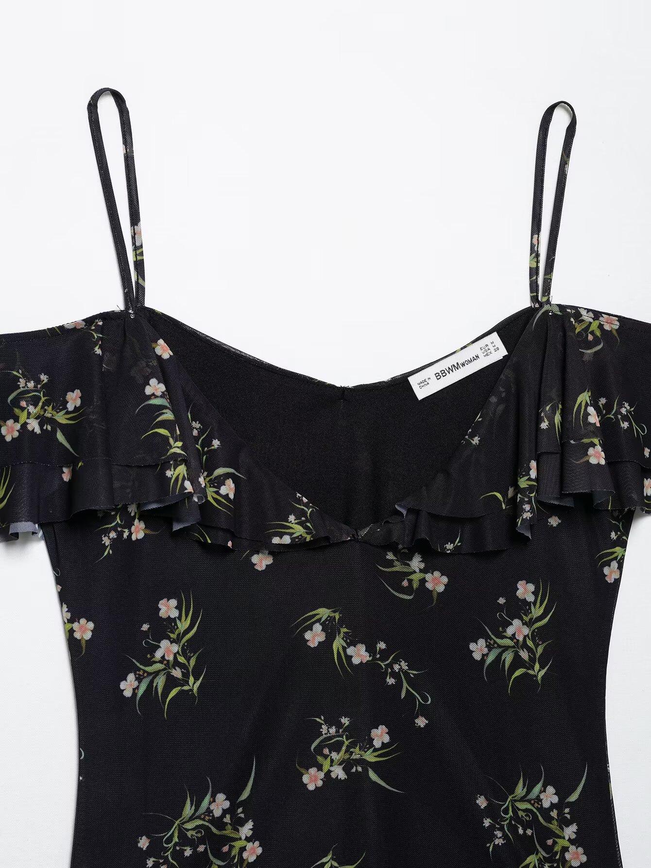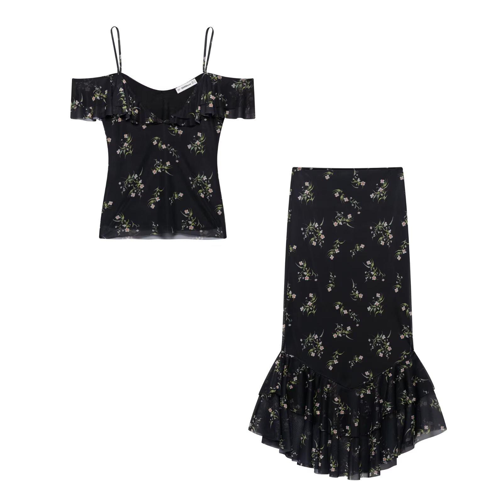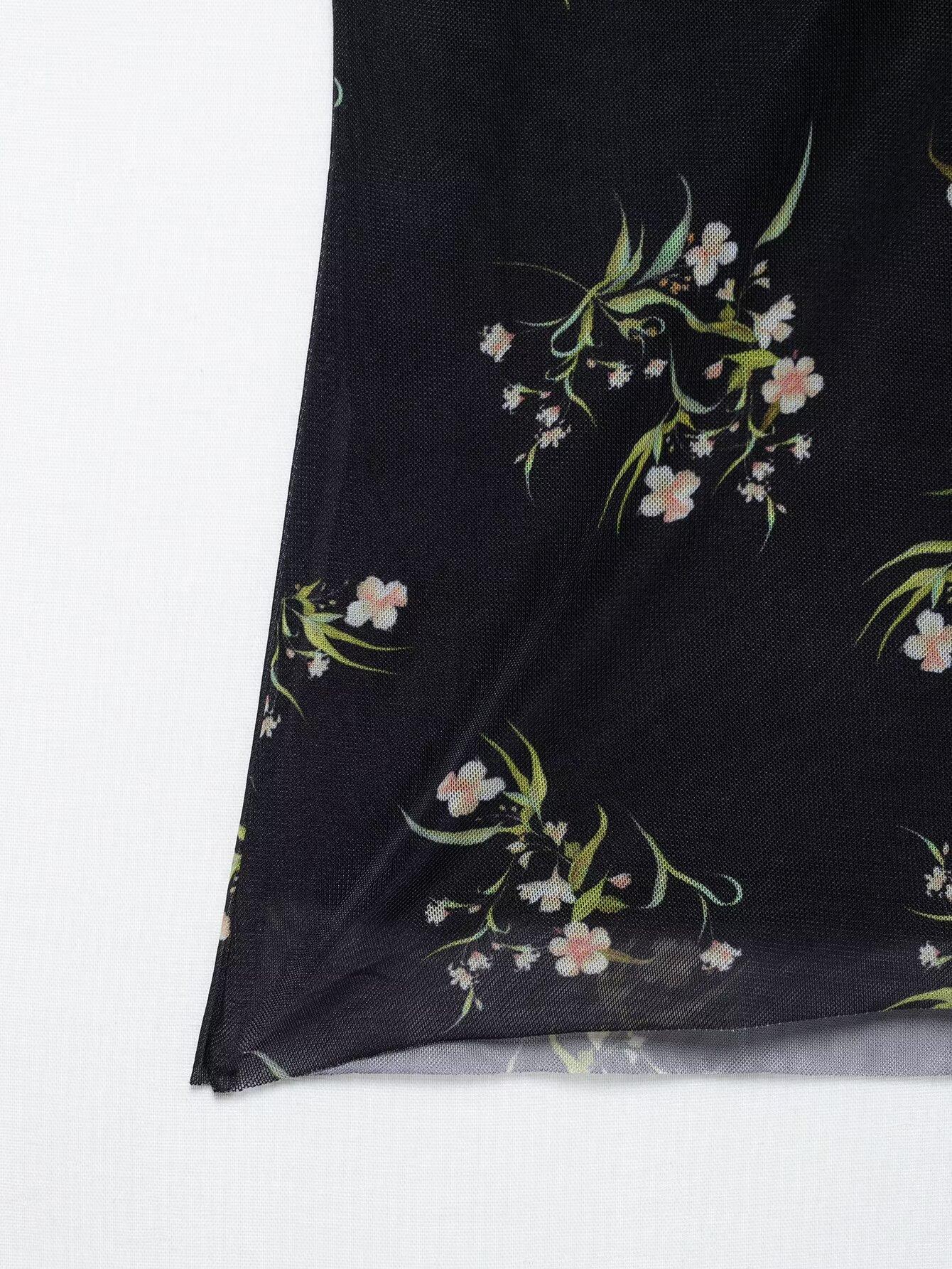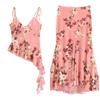 Primavera 2025 Nuevo Ropa de Mujer Transfronteriza Europea y Americana Malla de Seda Estampada Top de Tirantes Traje Sobrefalda w03 6190