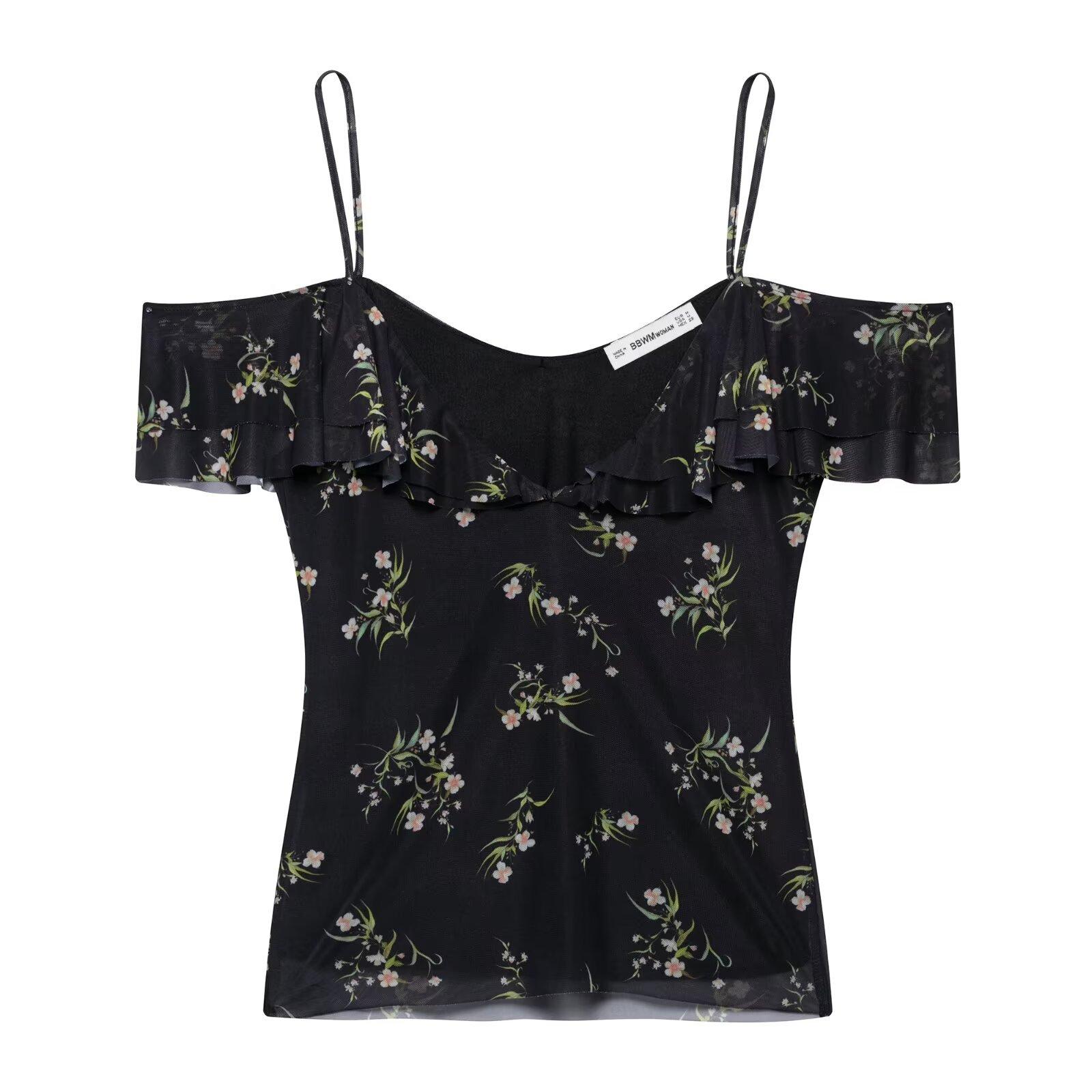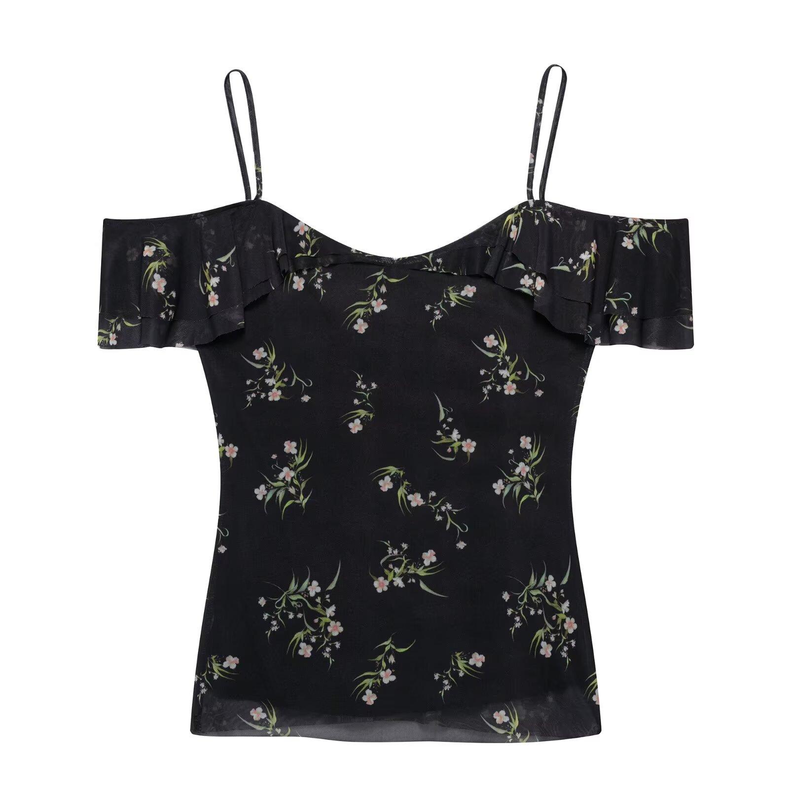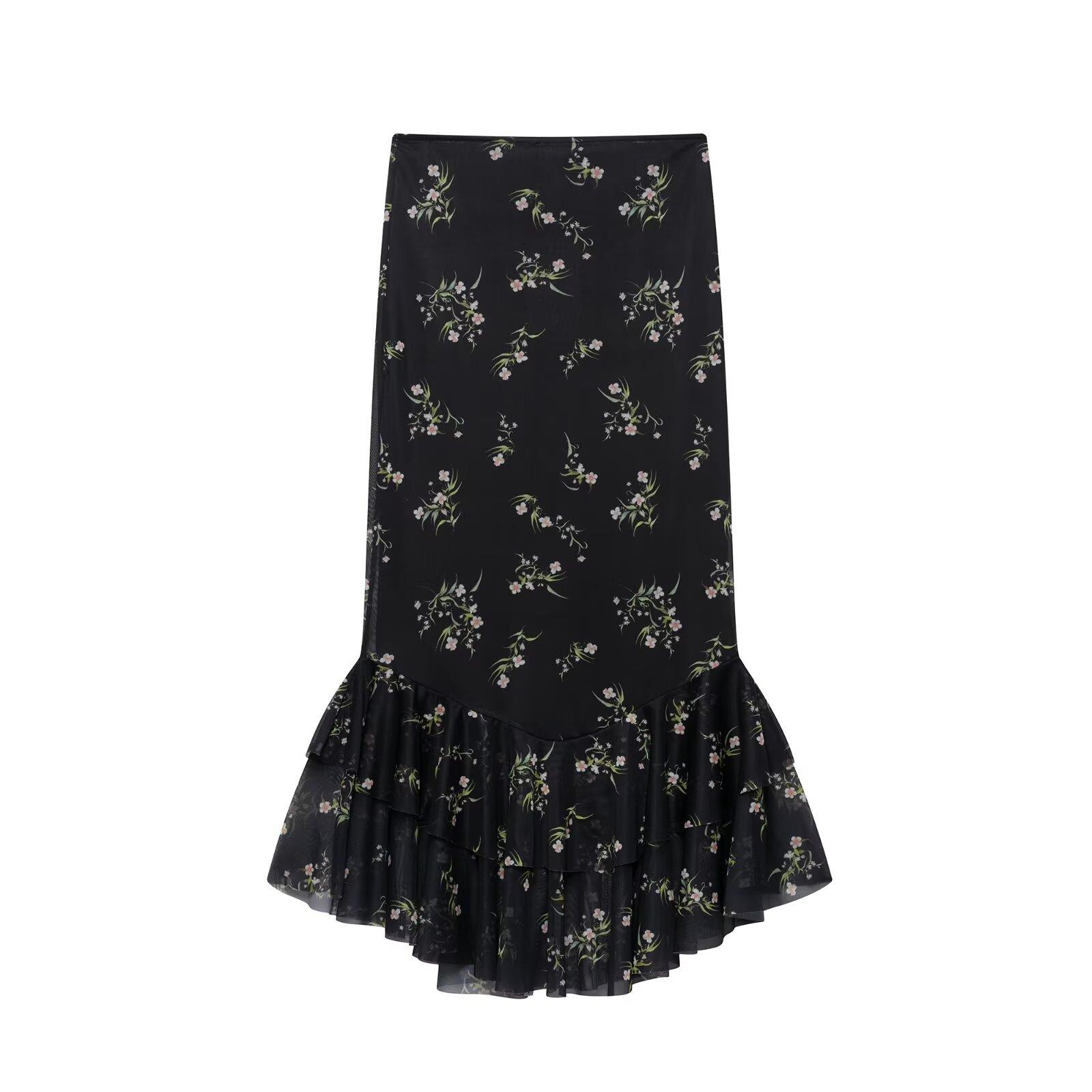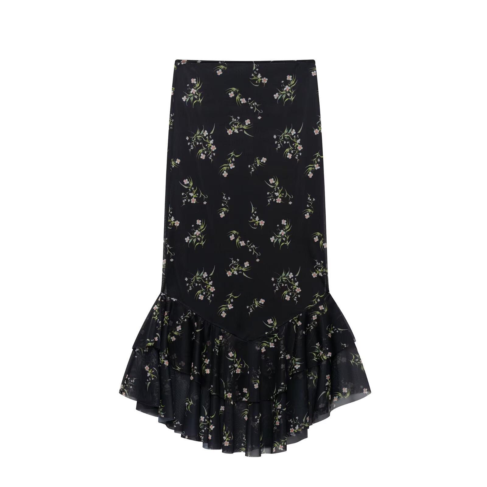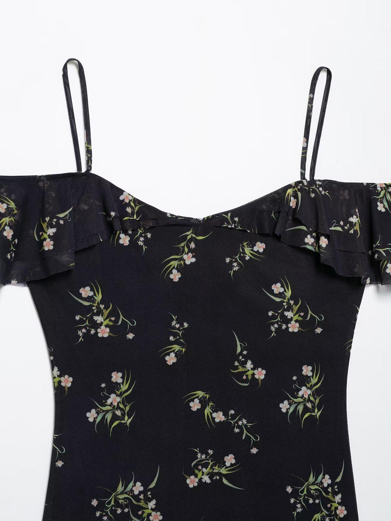 Primavera 2025 Nuevo Ropa de Mujer Transfronteriza Europea y Americana Malla de Seda Estampada Top de Tirantes Traje Sobrefalda w03 6190