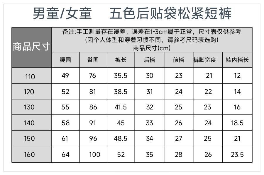 110cm, 120cm, 130cm, 140cm, 150cm, 160cm