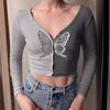 6535 camiseta de algodón estampada de manga corta diseño femenino 2023 verano nuevo irregular chica hot top corto de estudiante