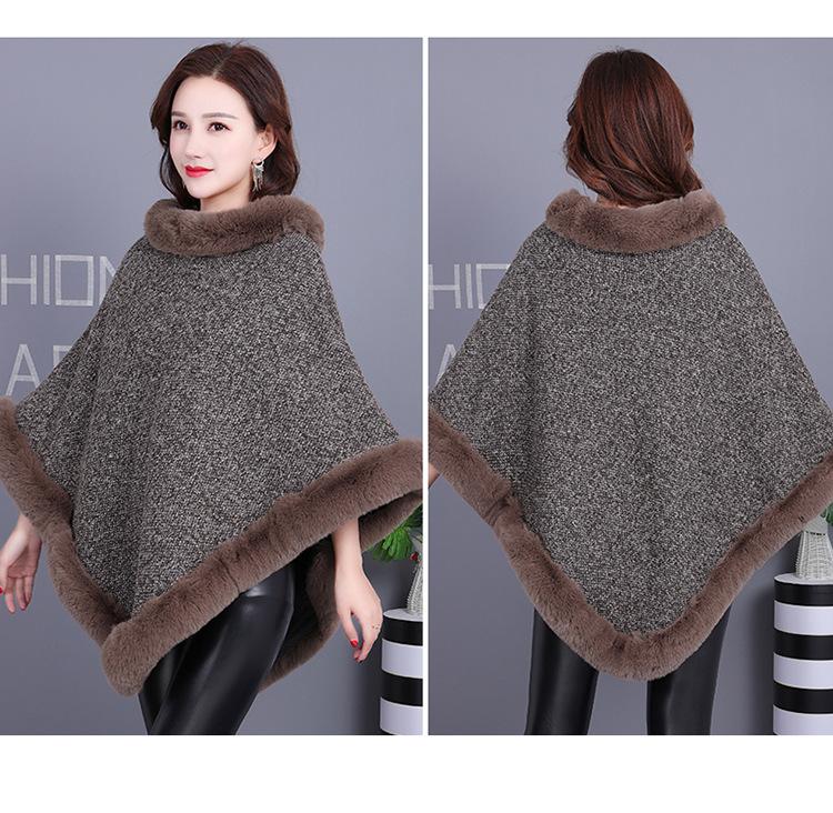 2023 Nuevo Estilo Bufanda de Piel Sintética de Conejo Rex Chal Tejido para Mujer Chaqueta para Mujer Primavera y Otoño Estilo Holgado Versátil de Comercio Exterior