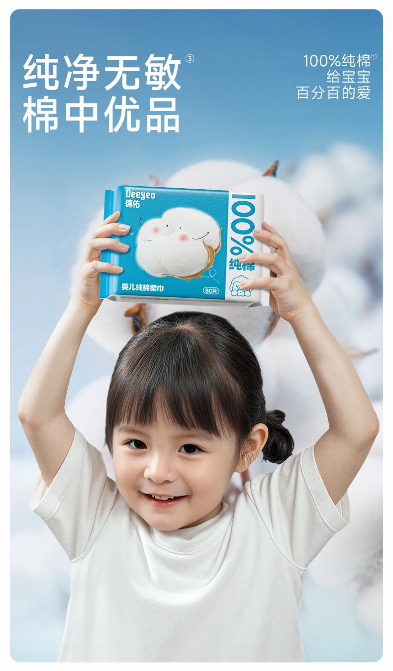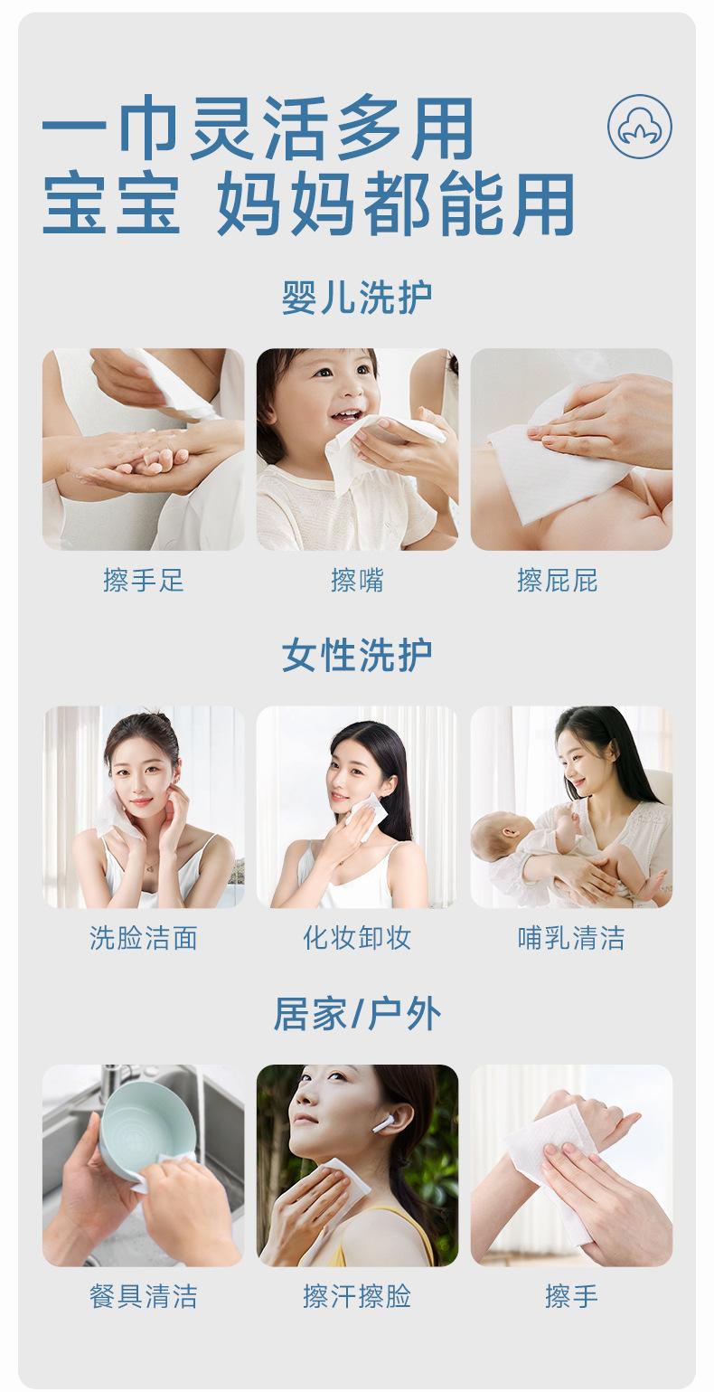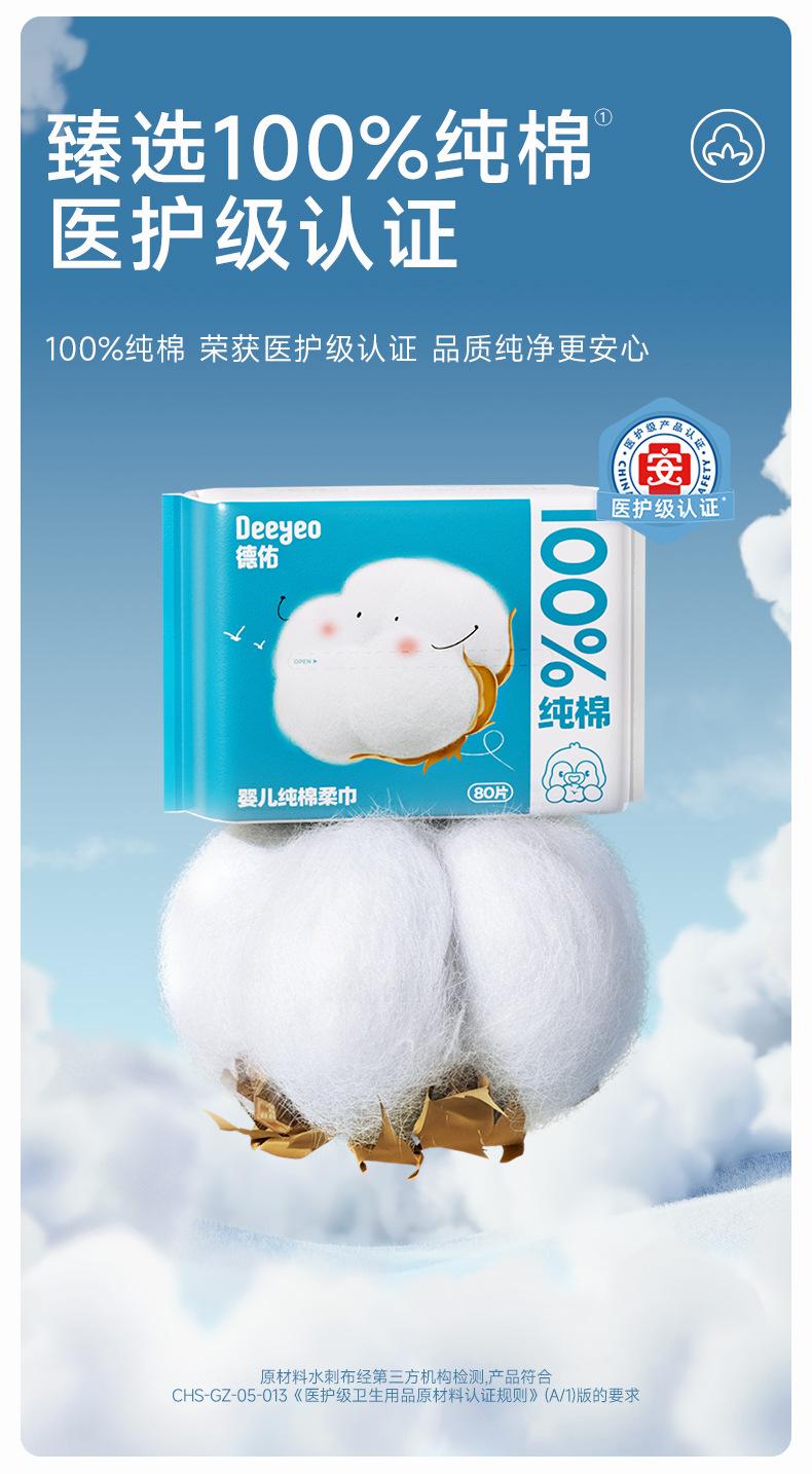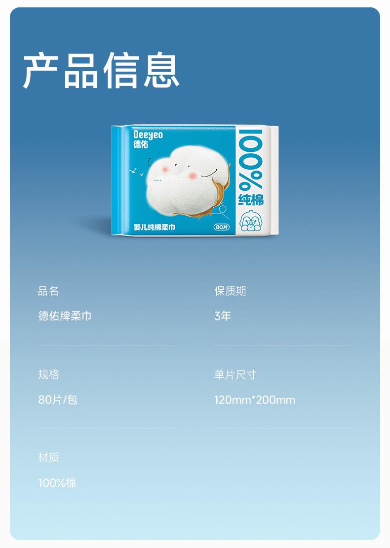 Toalla de algodón suave Deyou para bebé de 80 cm, 6 paquetes de toallas faciales de doble uso, secas y húmedas, extraíbles para recién nacidos.