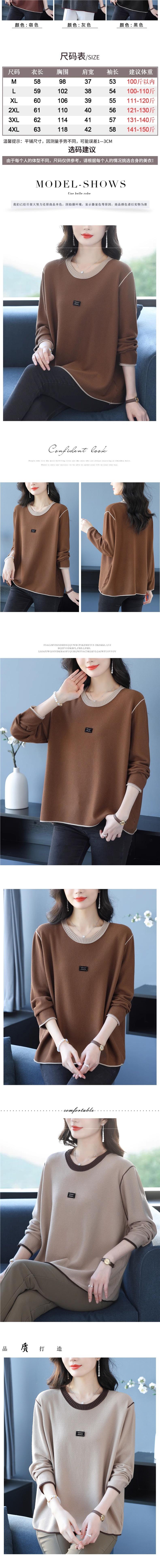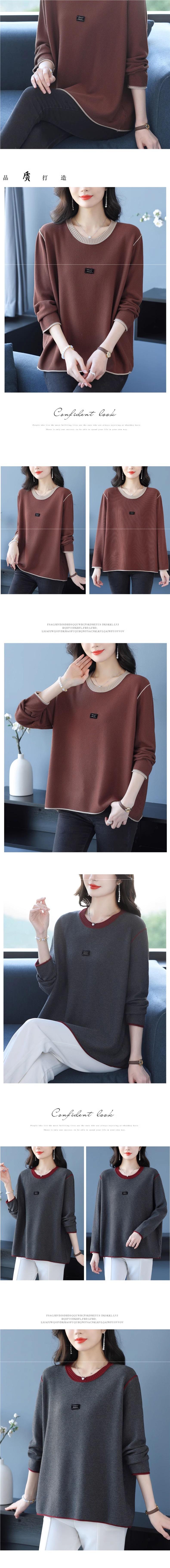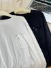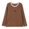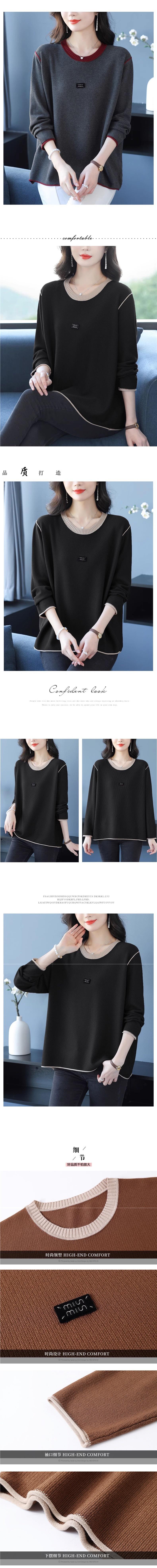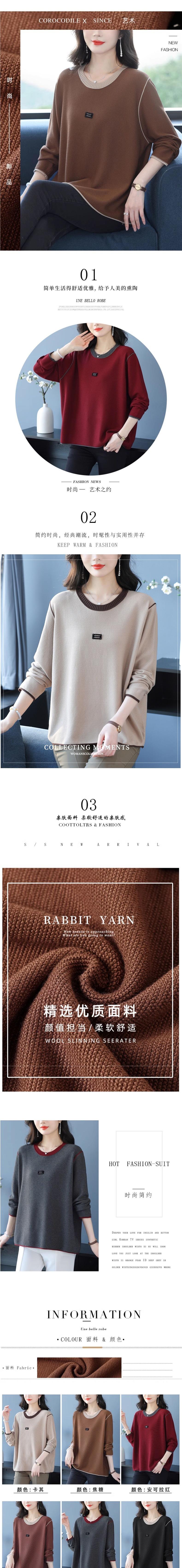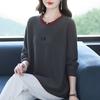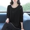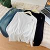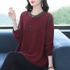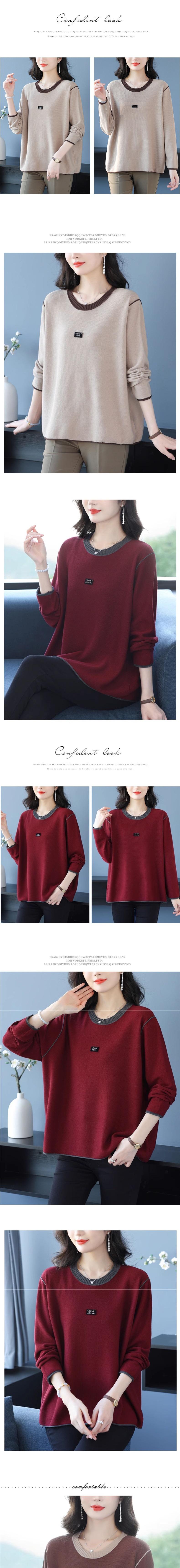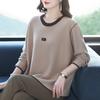 Camiseta de punto holgada y ajustada de talla grande con cuello redondo en contraste estilo coreano para mujer, primavera y otoño 2025