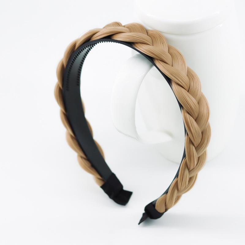 Peluca trenzada de espiga de pescado hecha a mano artificial, hebilla para cabeza de peluca trenzada, diadema para el cabello antideslizante de seda mate de alta temperatura, tocado femenino, fabricante