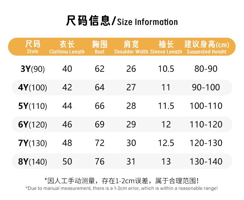 90cm(2-3Y), 100cm(4Y), 110cm(5Y), 120cm(6Y), 130cm(7Y), 140cm(8Y)