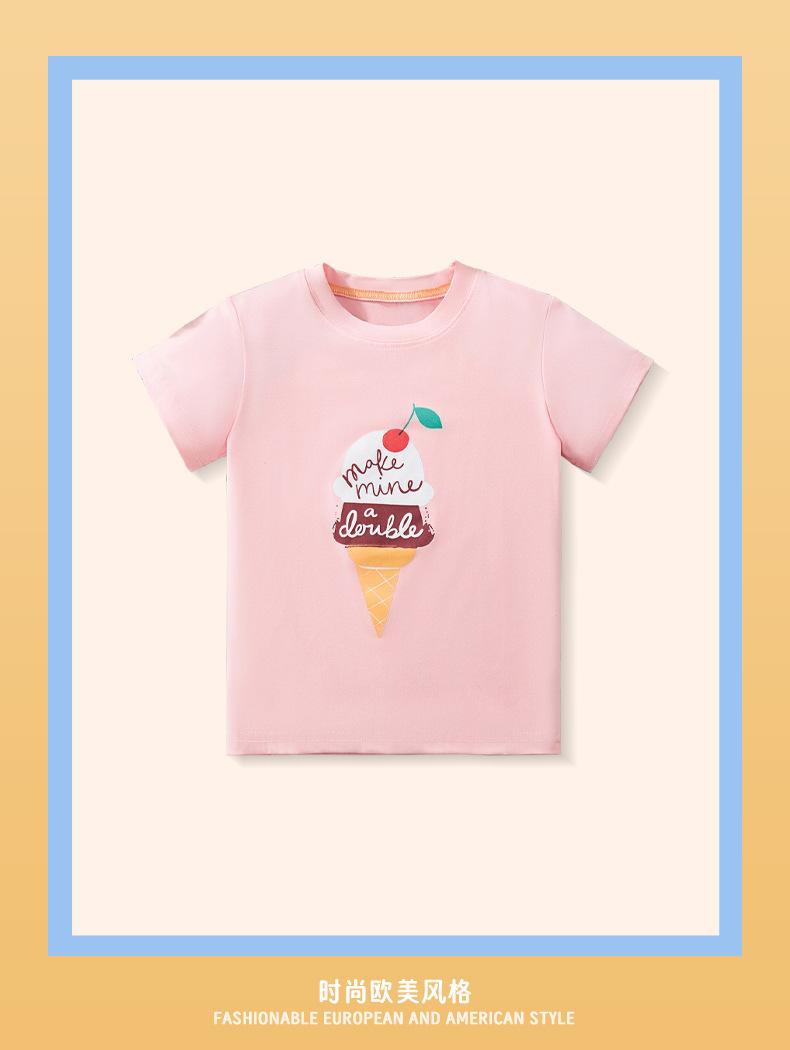 Novedad de verano 2025: Top de manga corta, bonito y dulce para niñas, ropa informal estampada para niños.