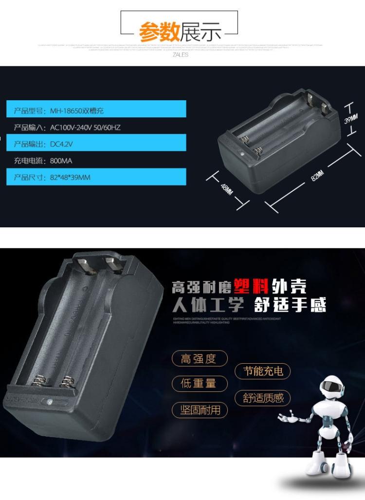 Baterías aplicables:Puede cargar una o dos baterías 18650, la carga de una sola batería tiene más potencia.。