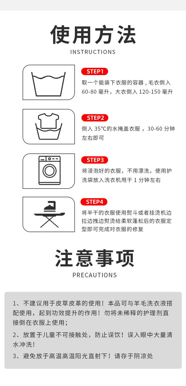 Agente Esponjoso de Lana Agente Recuperador de Encogimiento de Suéter Suéter de Cachemira Reparación Amplificada Abrigo de Felpa Detergente Suave