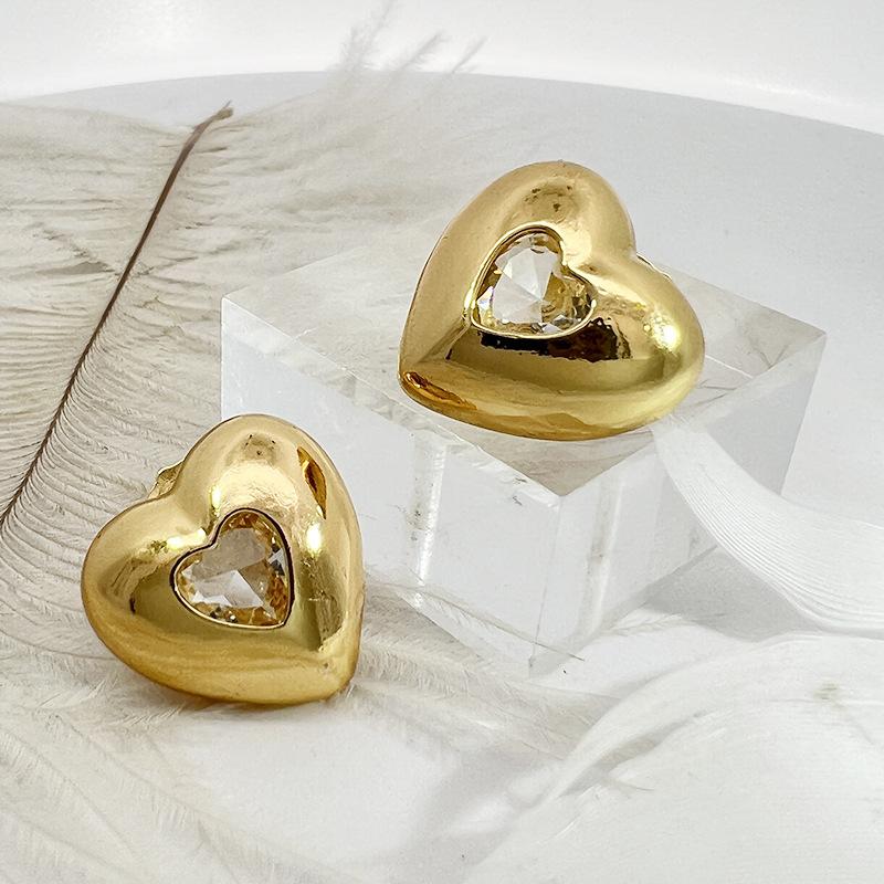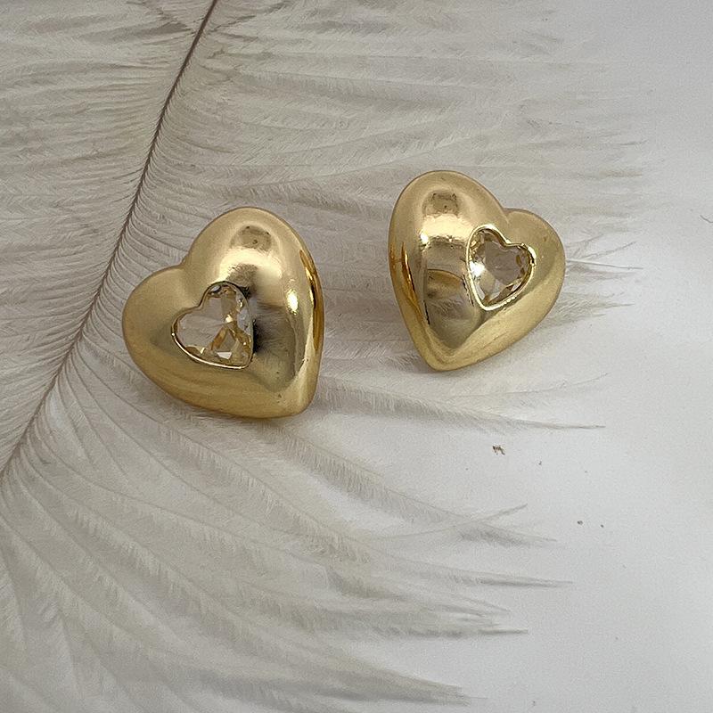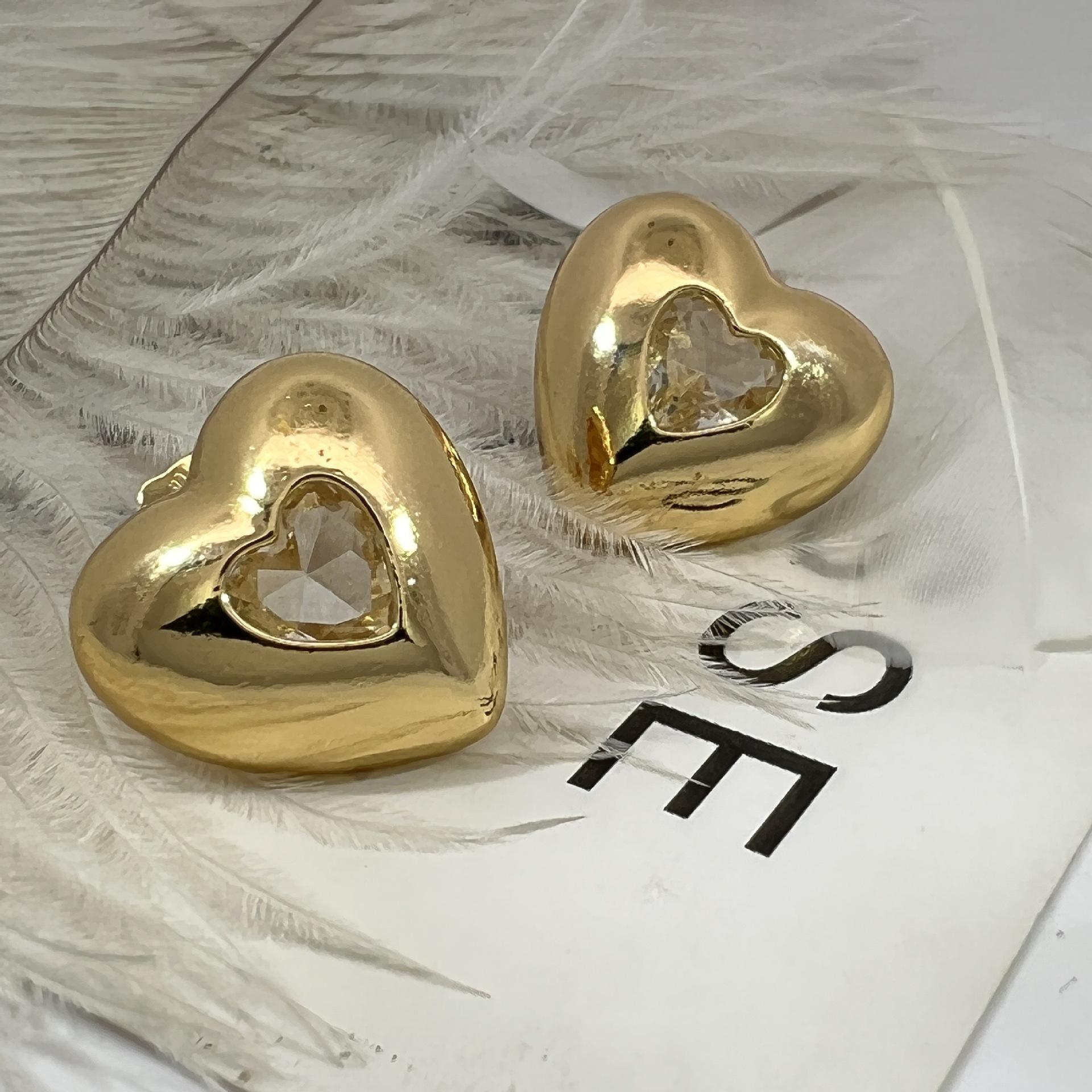 Pendientes de corazón de amor, de alta gama, para mujer, sin color, nuevos, transfronterizos, combinables con todo, ligeros, joyas de oro de lujo.