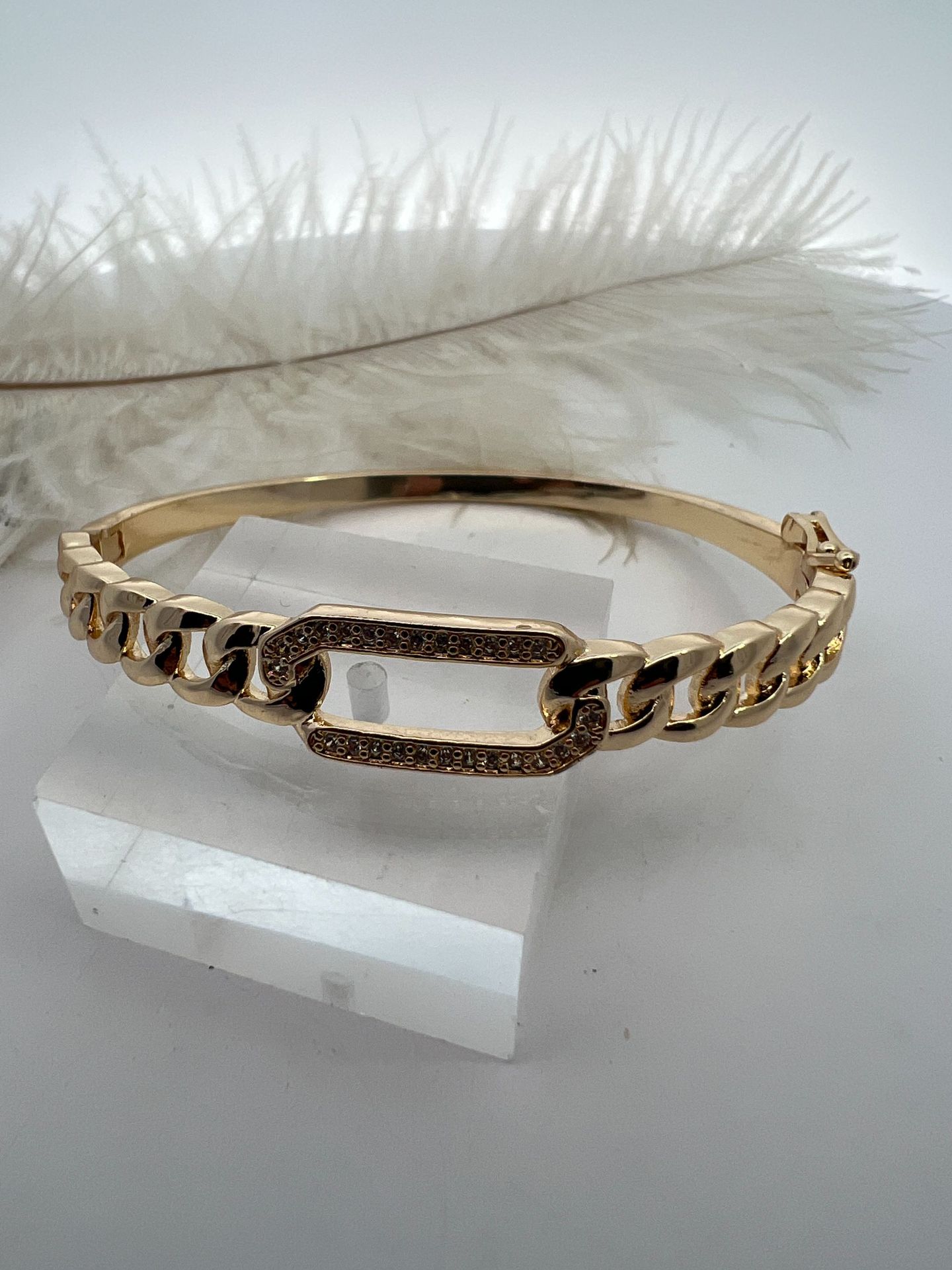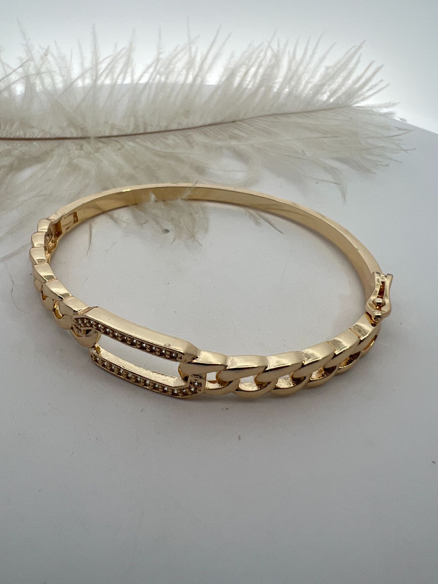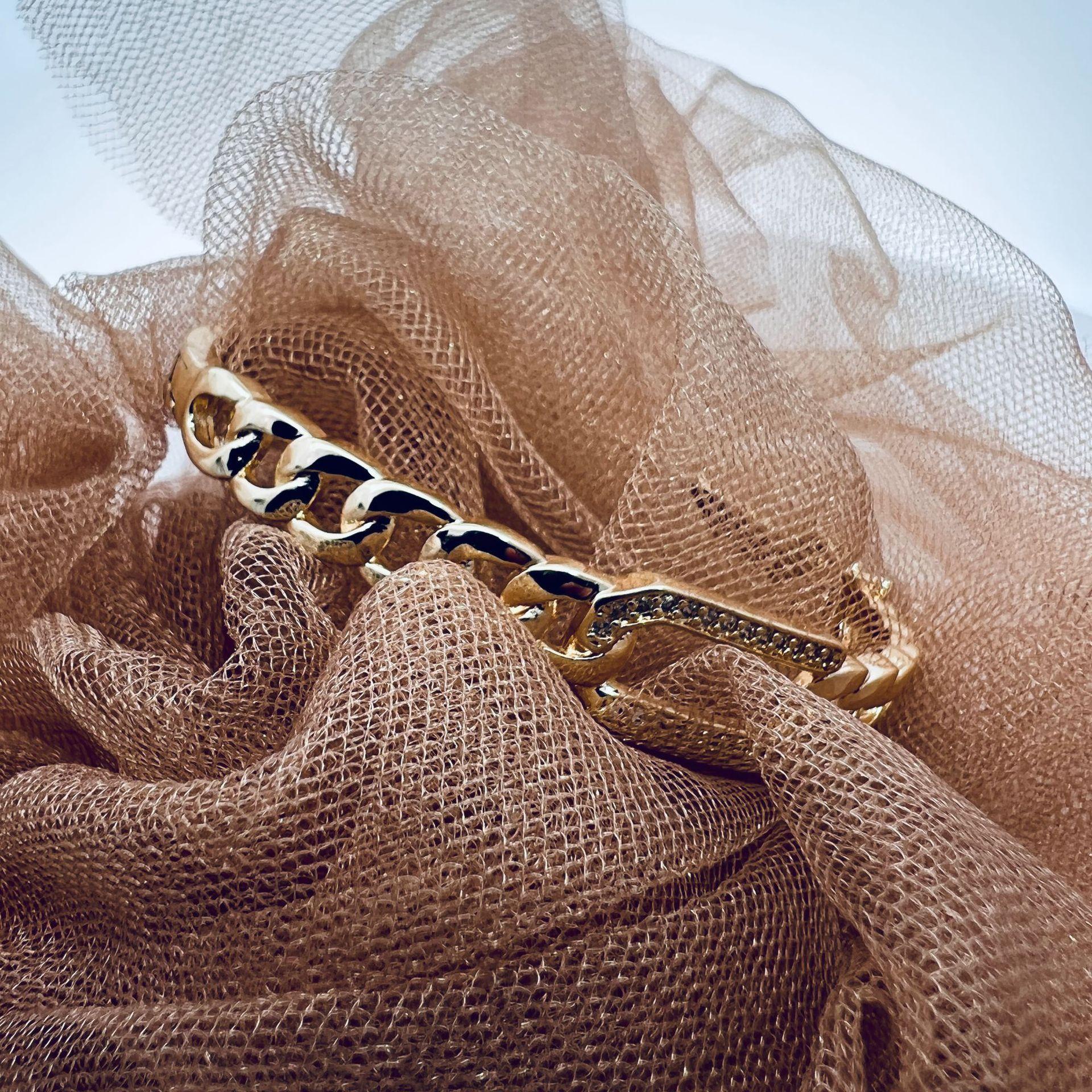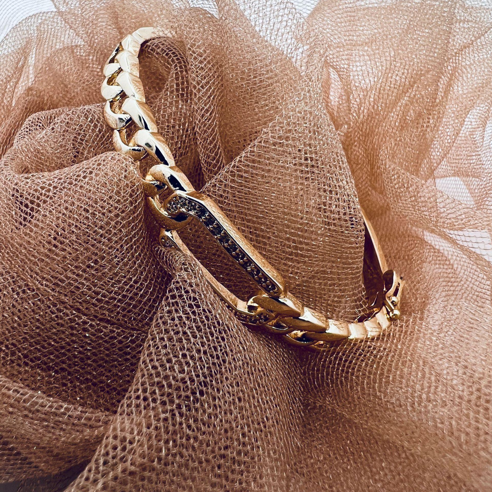 Pulsera Rectangular Hueca con Textura Twist Nicho Europeo y Americano con Diamante Pulsera para Mujer Chapada en Oro de 18K