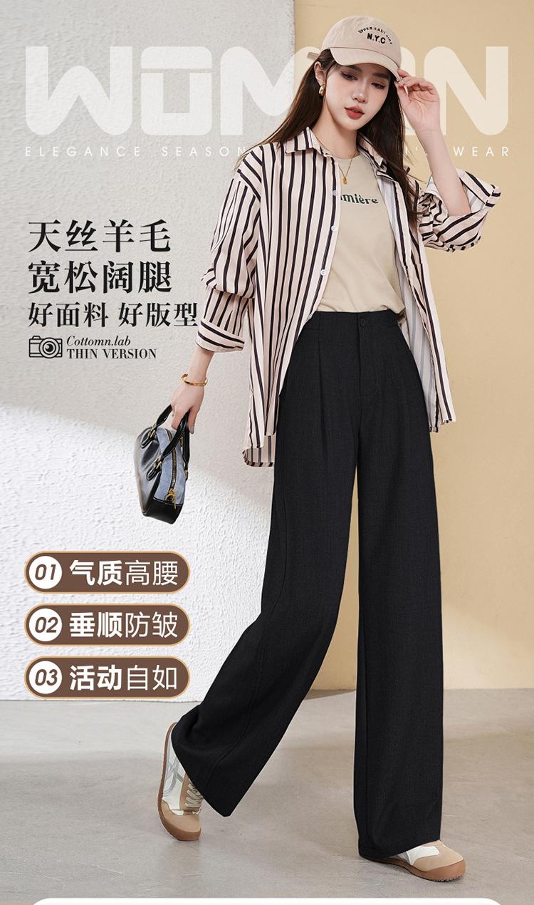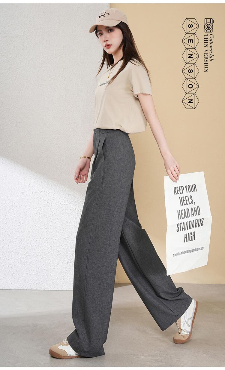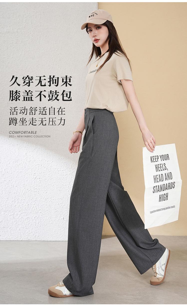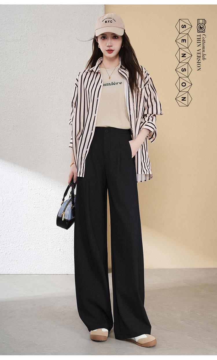 Pantalones anchos para mujer, primavera y otoño 2025, nuevos pantalones negros, rectos, casuales, de cintura alta