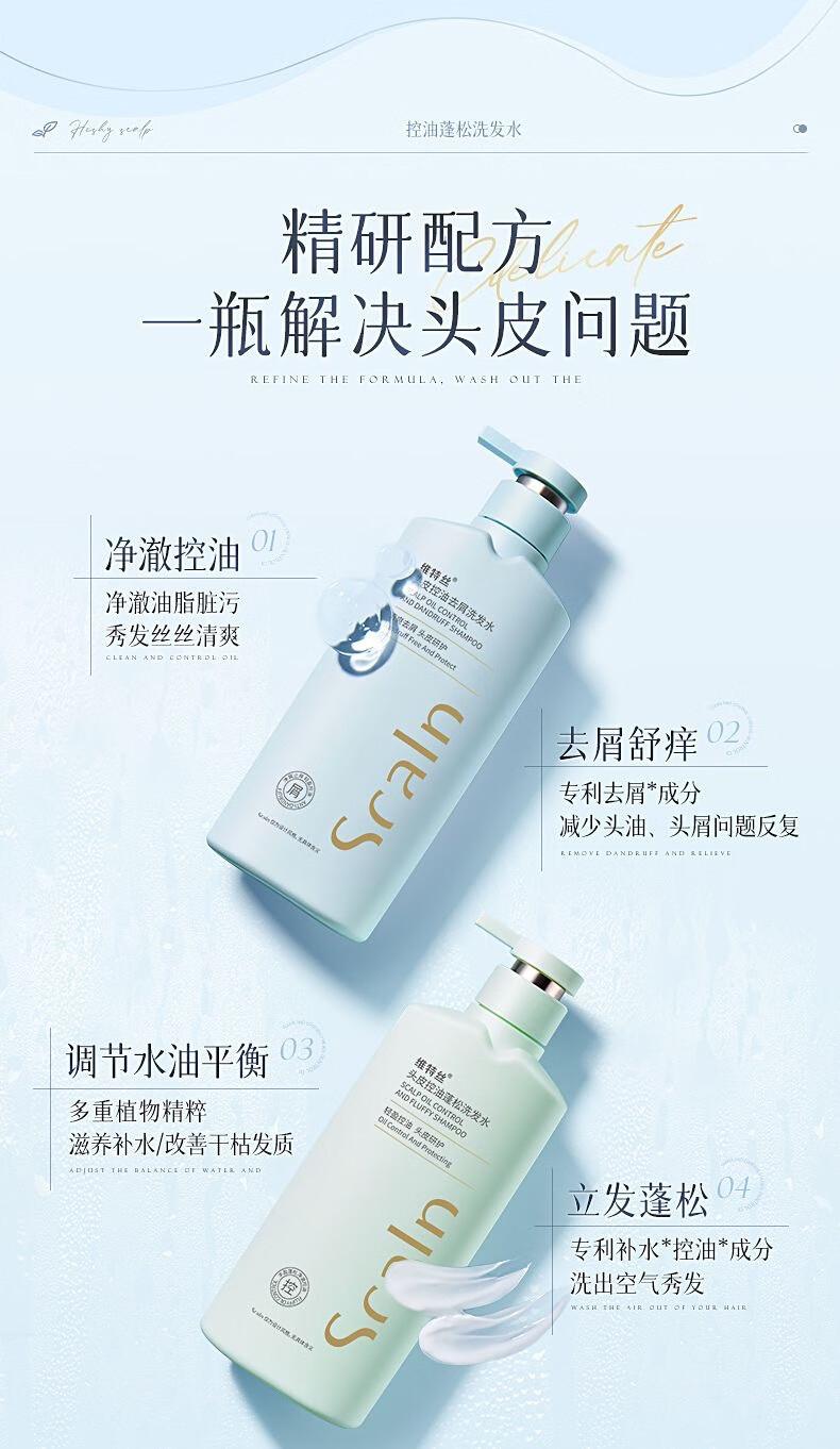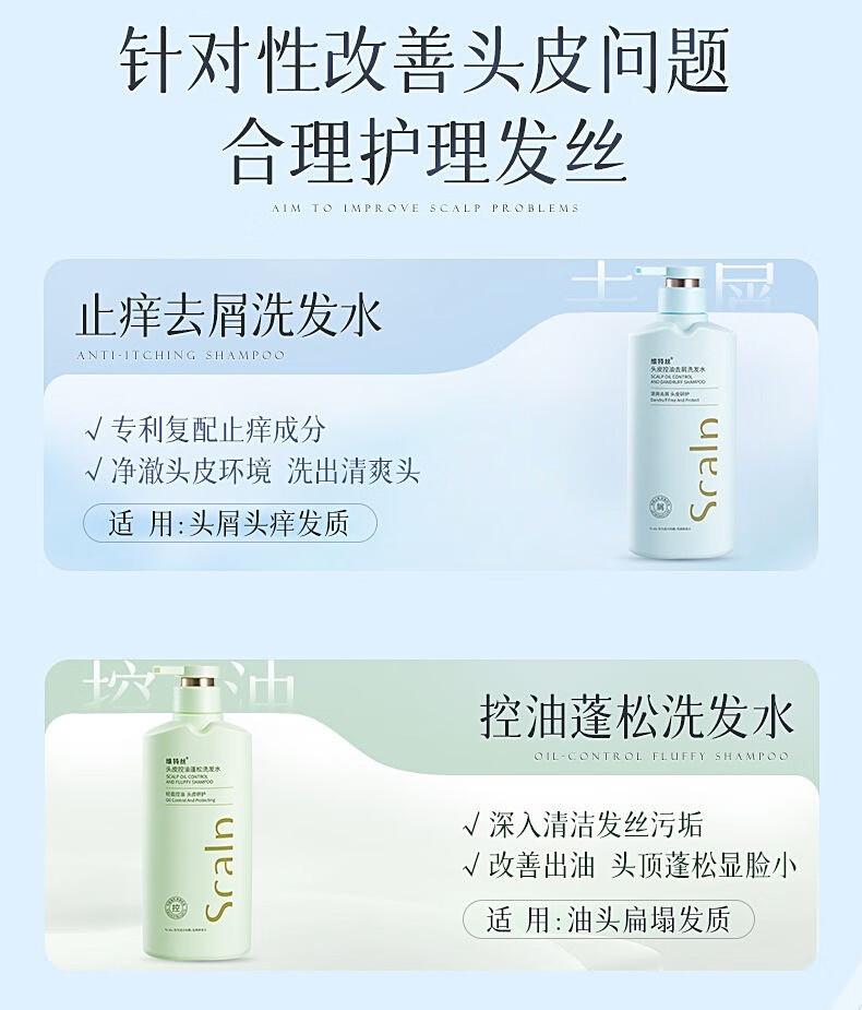 Vts scalp oil control anti-dandruff shampoo 500ml (blue), Vts scalp oil control fluffy shampoo 500ml (green)