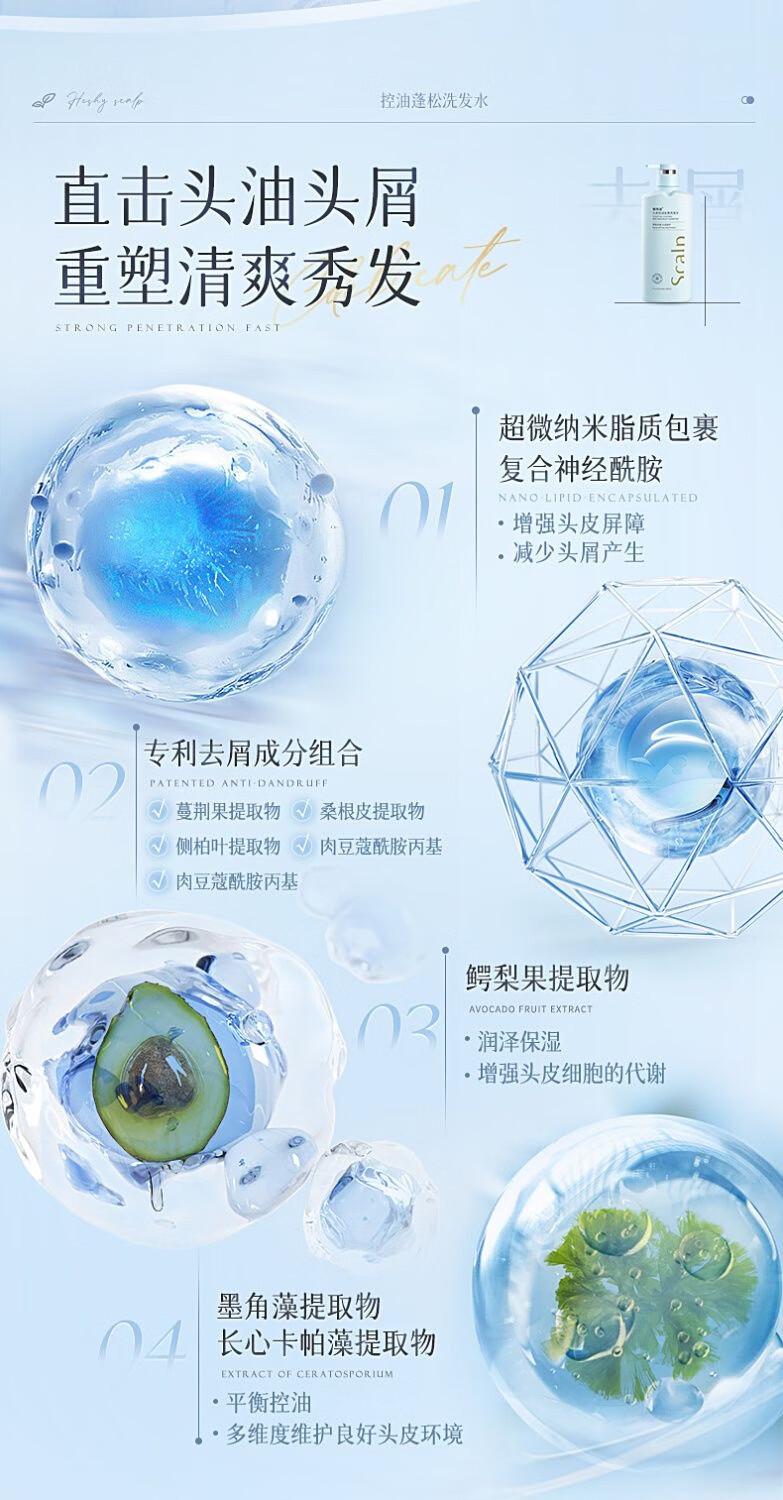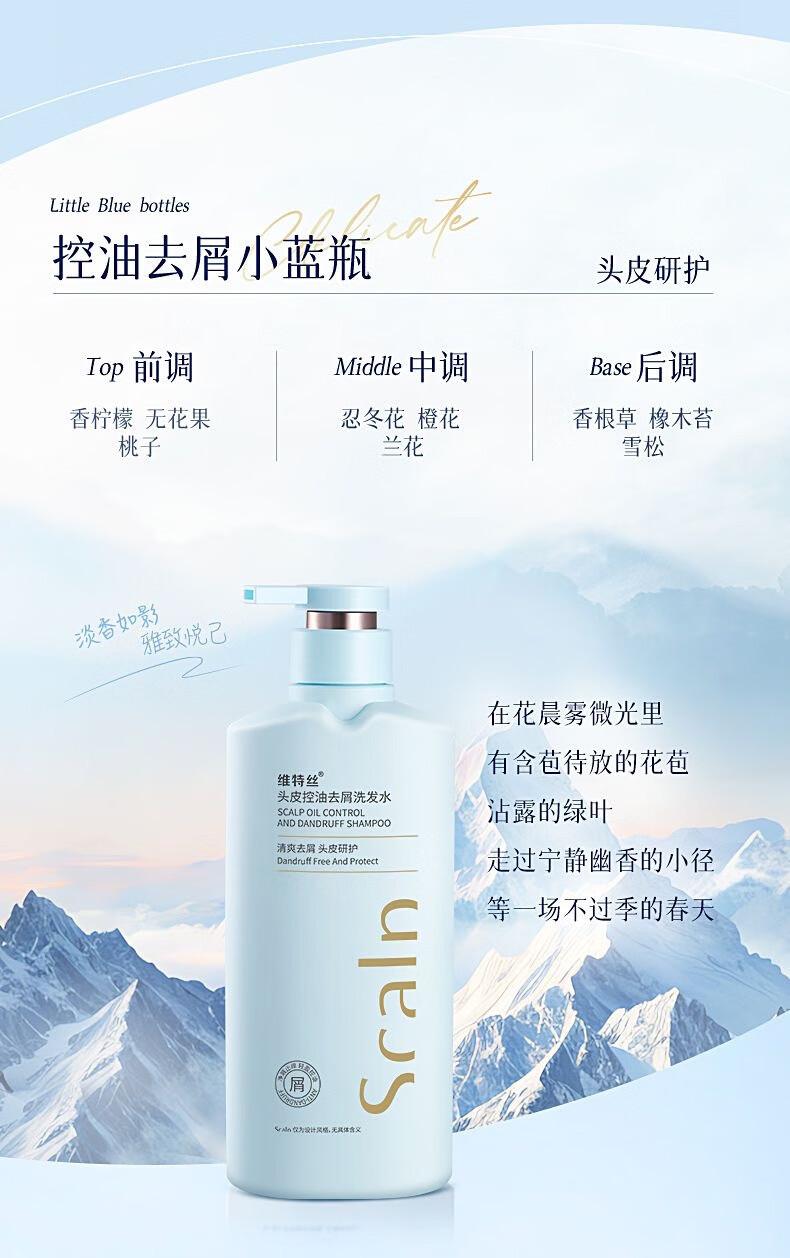 Vts scalp oil control anti-dandruff shampoo 500ml (blue)