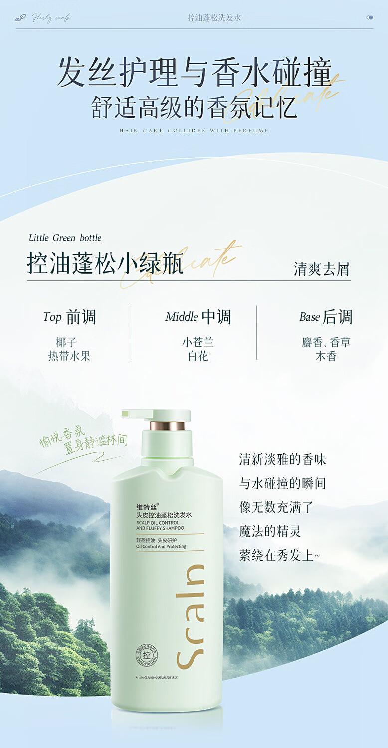 Vts scalp oil control fluffy shampoo 500ml (green)