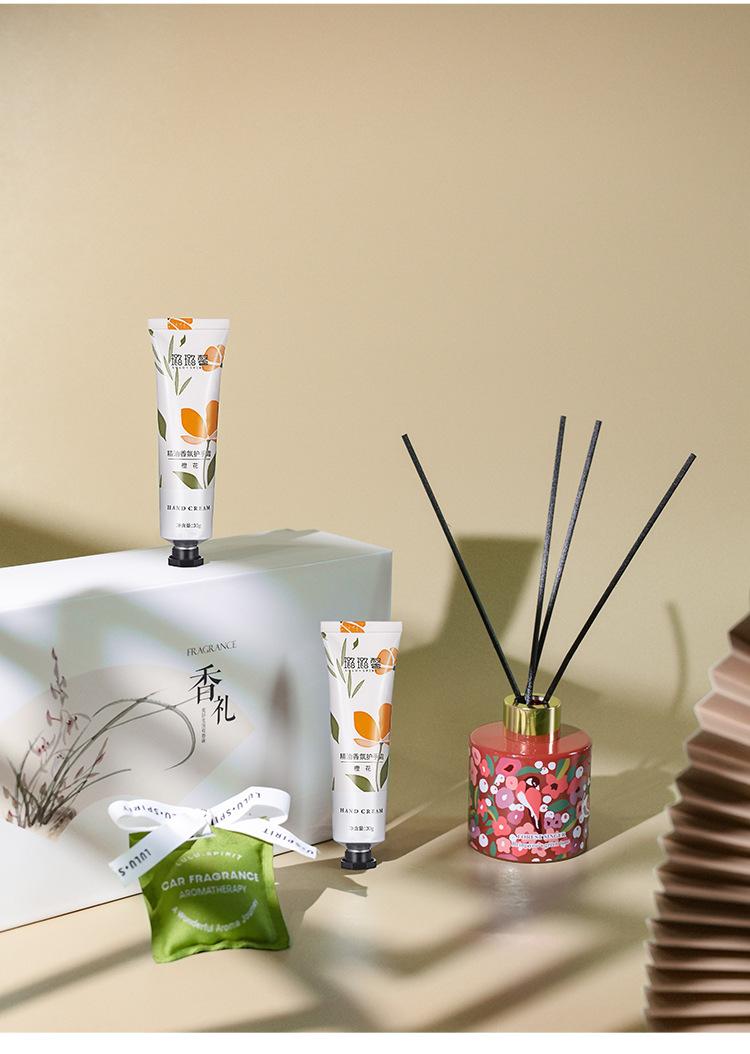 Caja de Regalo de Aromaterapia Fragancia Interior Duradera sin Fuego Set de Aceite Esencial y Crema de Manos Paquete de Tarjeta de Aromaterapia Perfumada Regalo Fragancia Personalizada