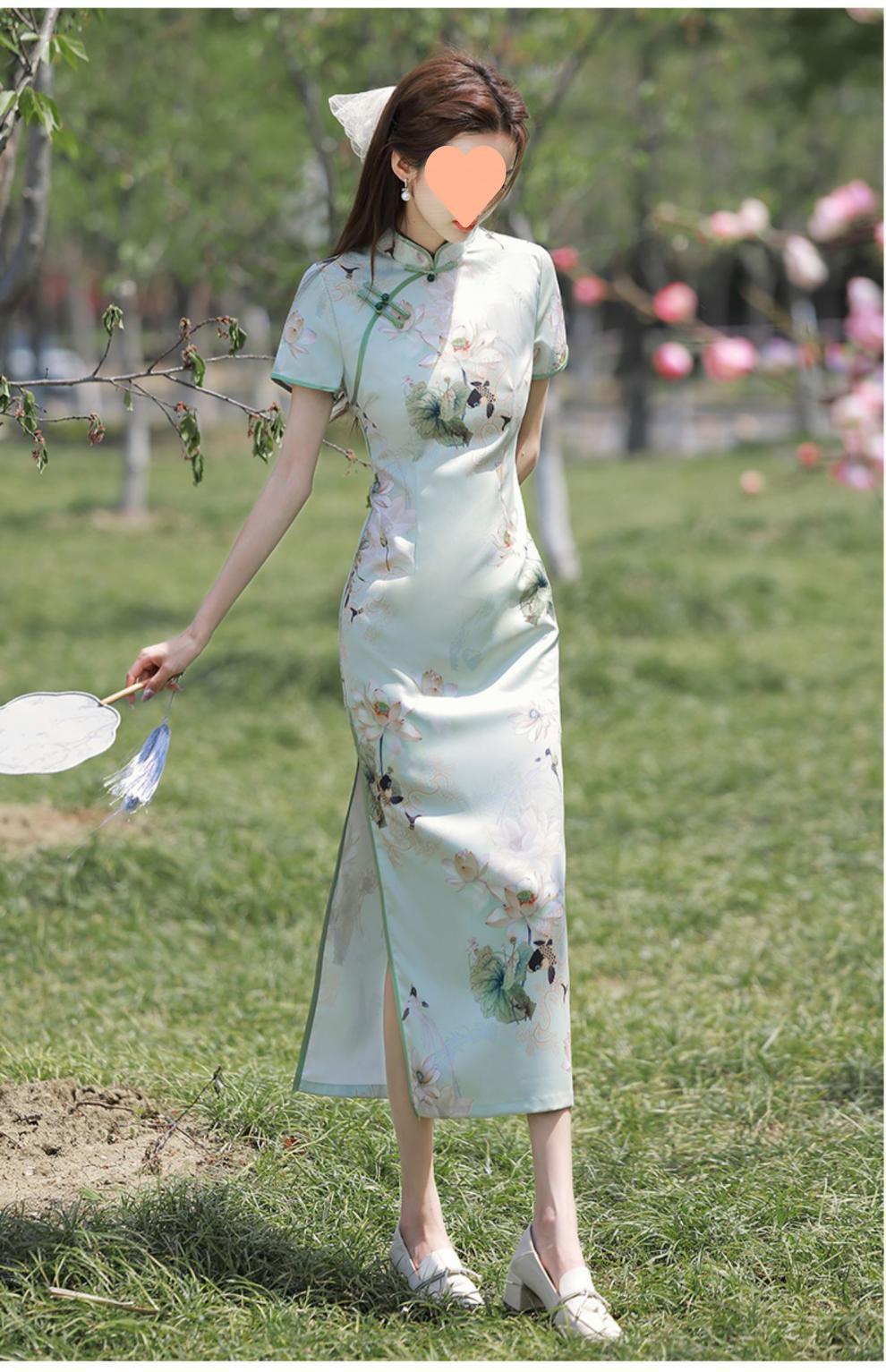 Falda cheongsam mejorada 2025 Nueva mujer Verano Nuevo estilo chino Vestido elegante para niña joven Noble