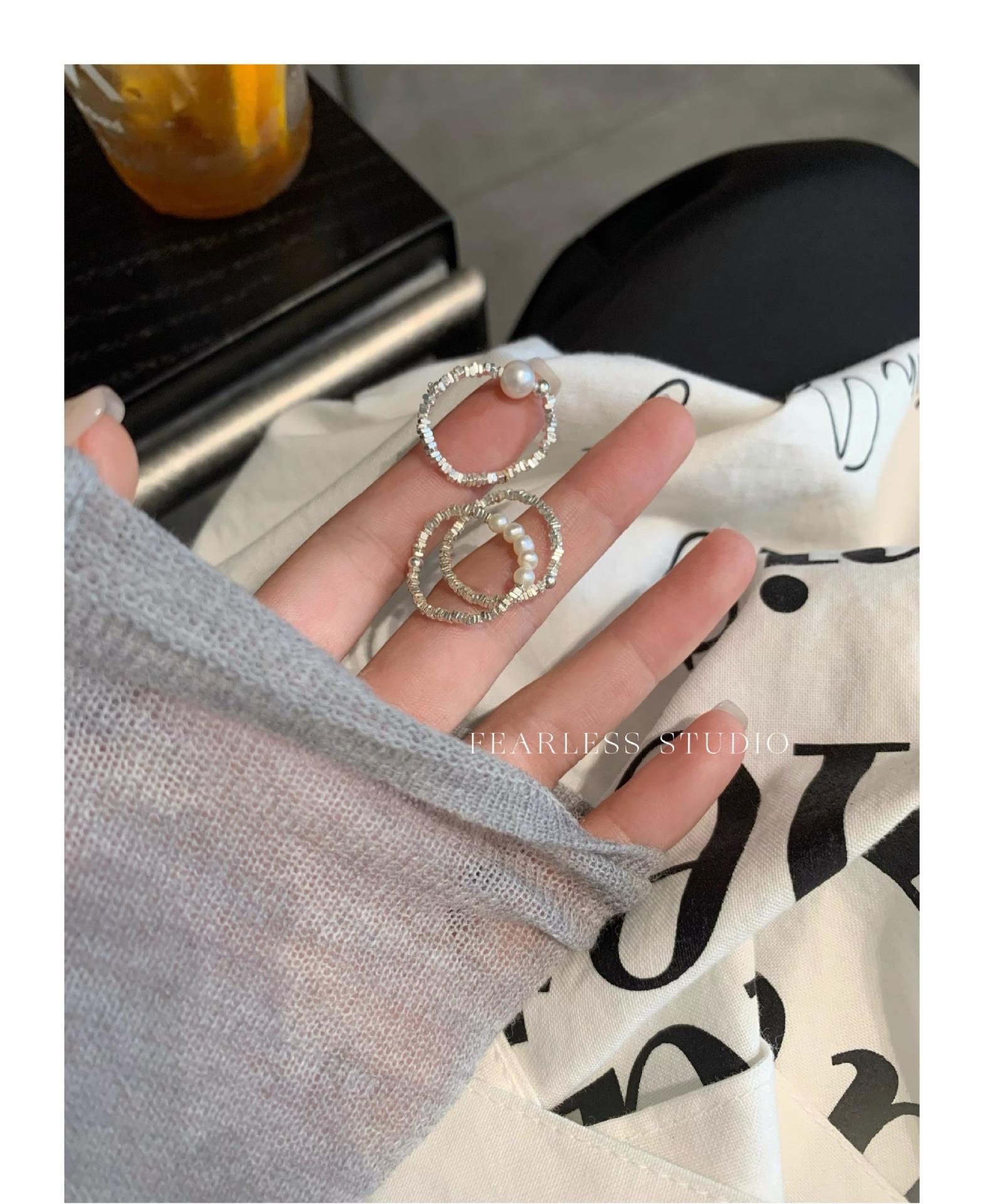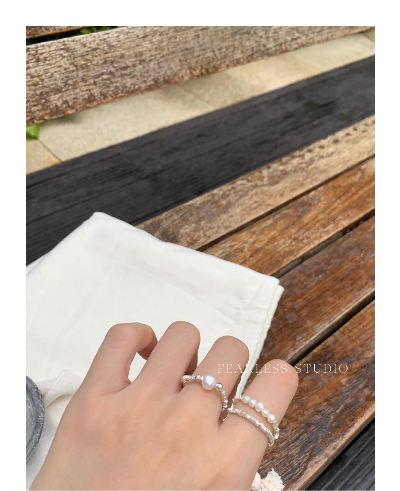 Anillo de Plata Rota Super Hada para Mujer Elástico con Cuentas Hecho a Mano Exquisito Perla S925 Anillo Combinable Apilable Creativo Anillo de Dedo