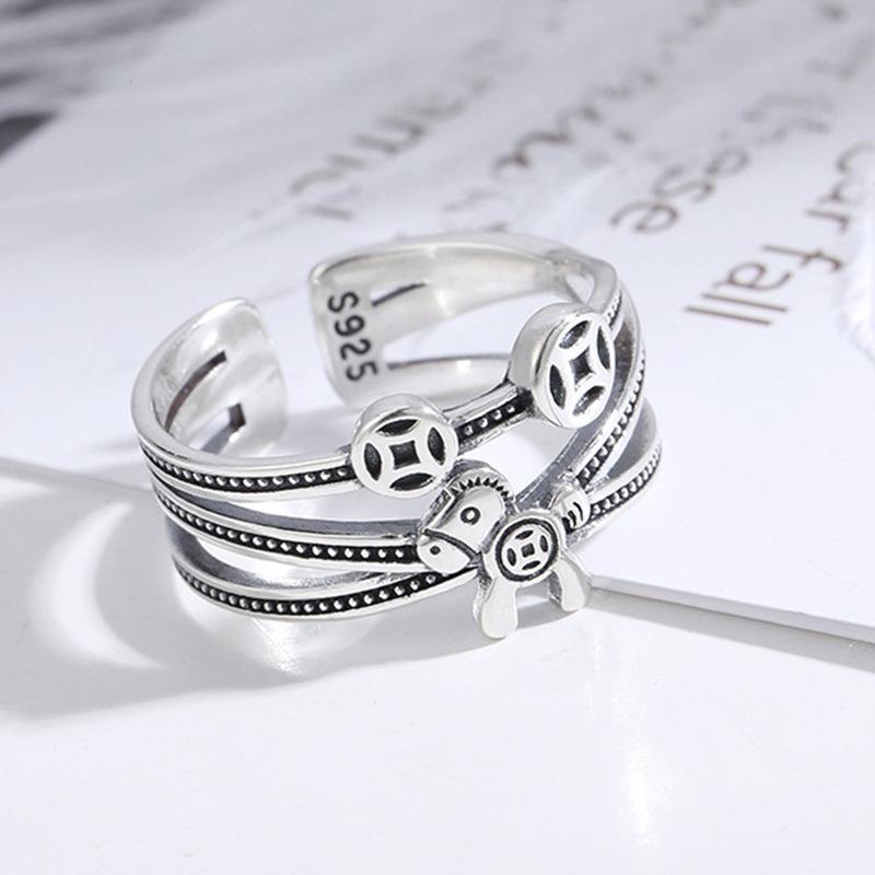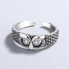 Anillo de rosa de búho con cara sonriente retro estilo japonés y coreano, temperamento de moda para mujer, chapado en plata tailandesa, una generación de cabello