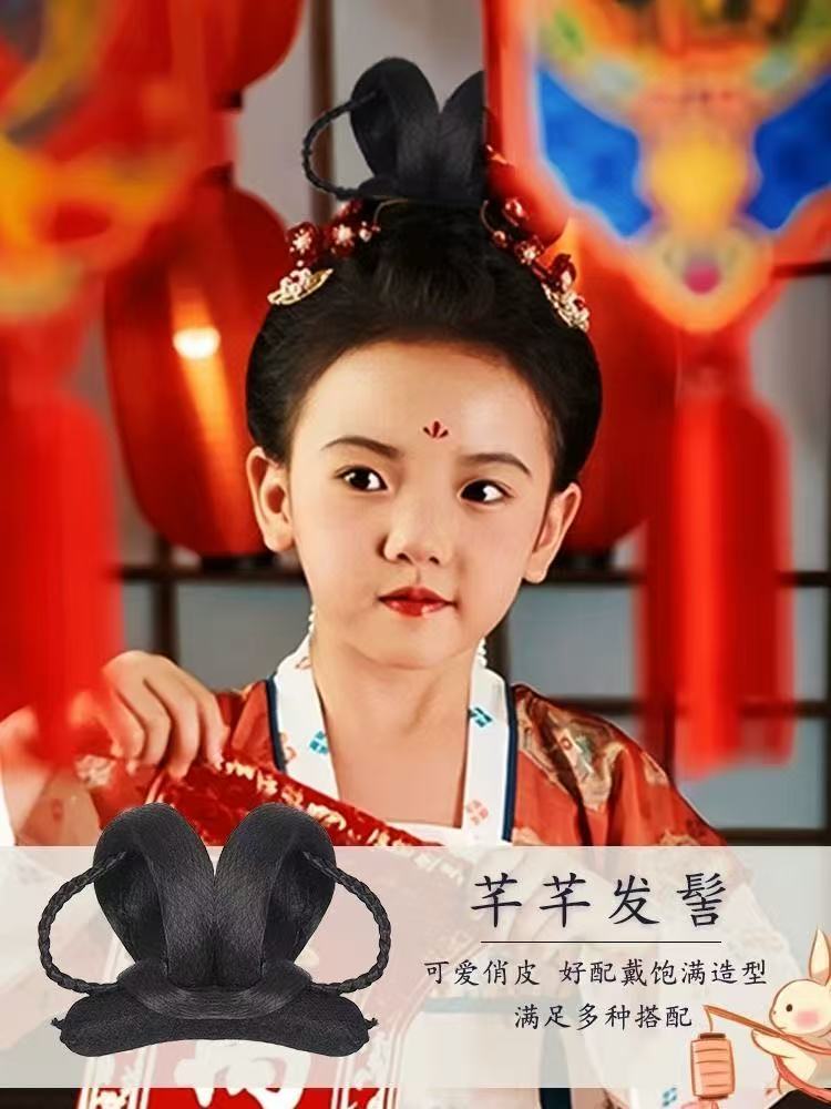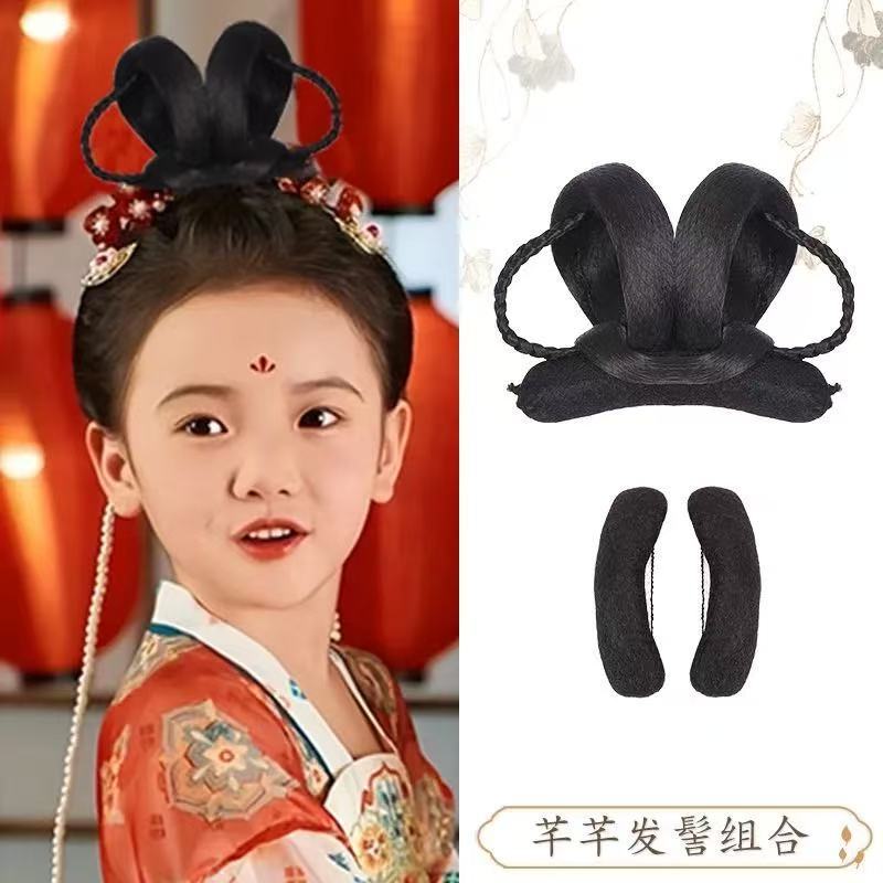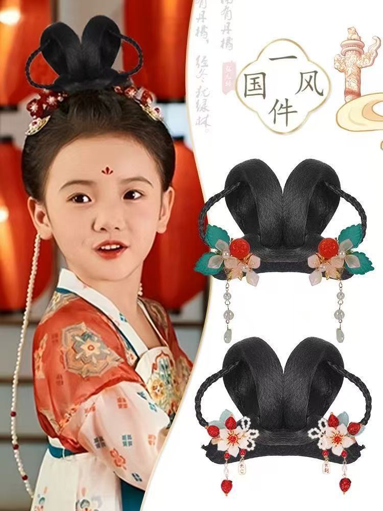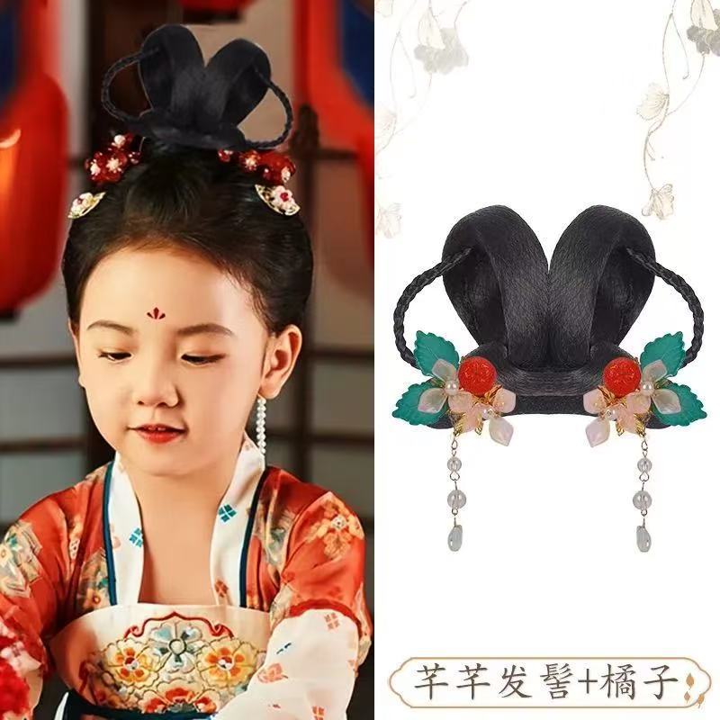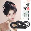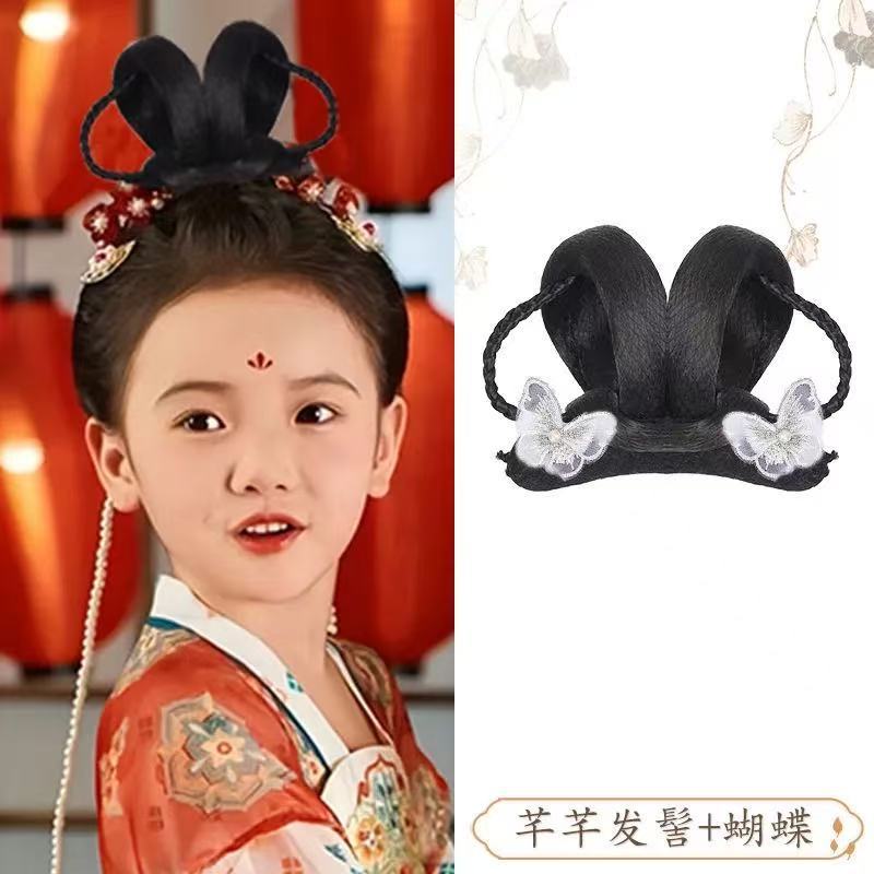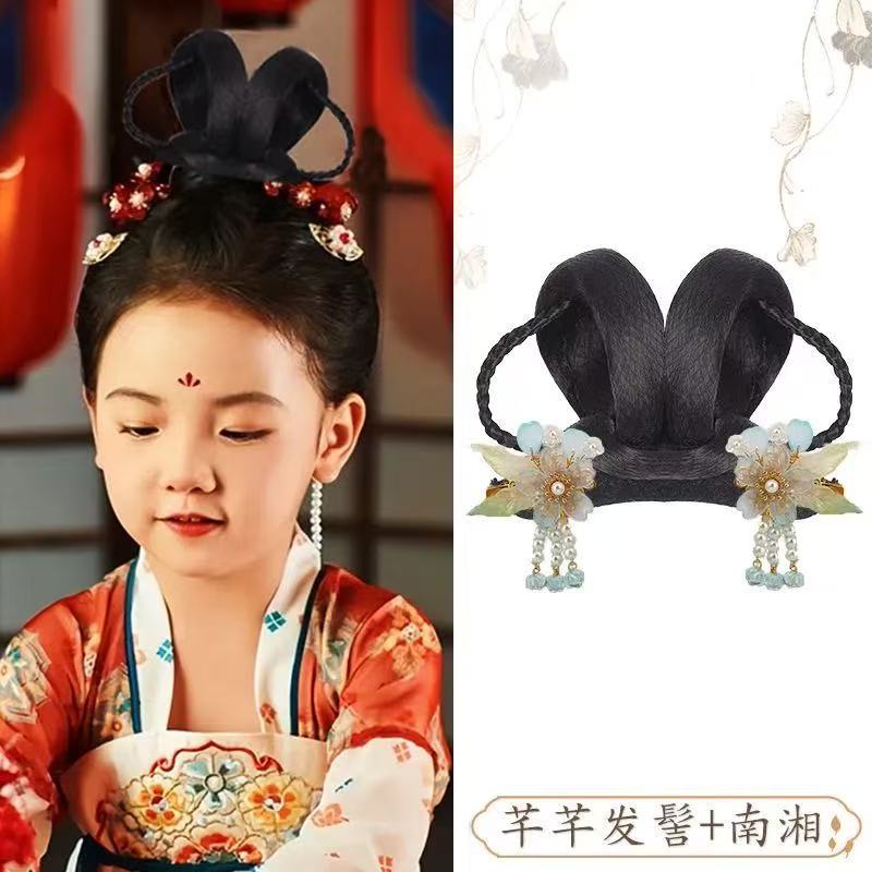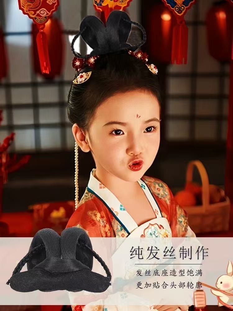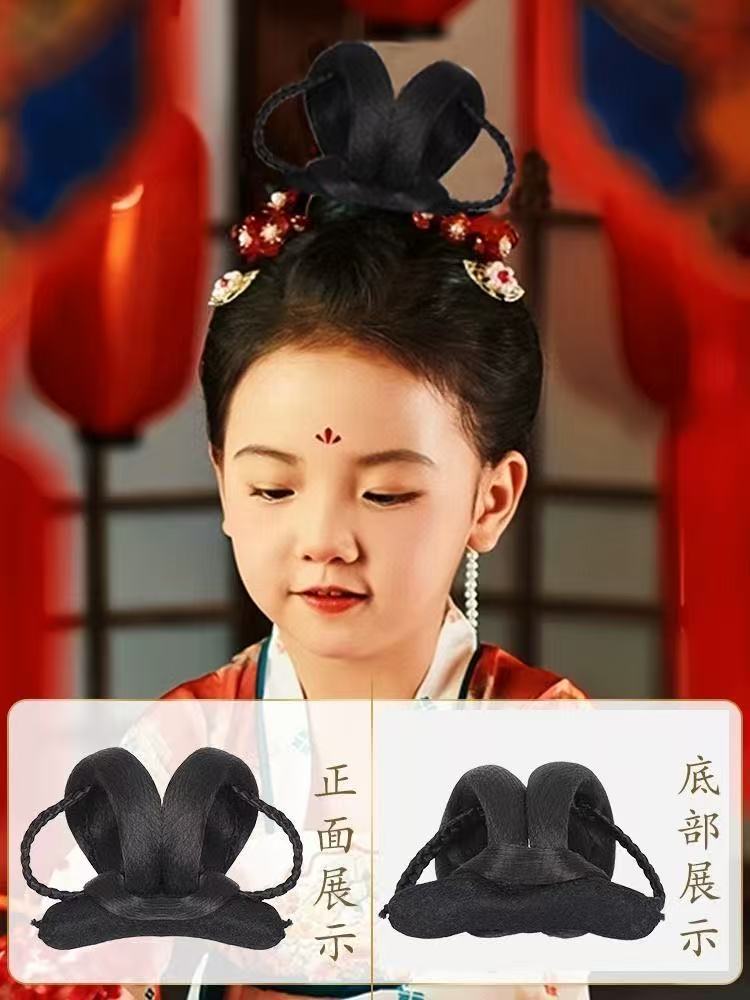 Tocado Hanfu para niños Aro para el cabello perezoso integrado Peluca de vestido antiguo Bolsa Tocado lindo de estilo antiguo Almohadilla Moño para el cabello