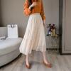 Falda de encaje de corte A para mujer, primavera 2025, nueva, cintura alta, adelgazante, que cubre la cadera, falda de paraguas plisada grande de longitud media