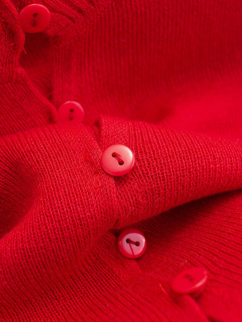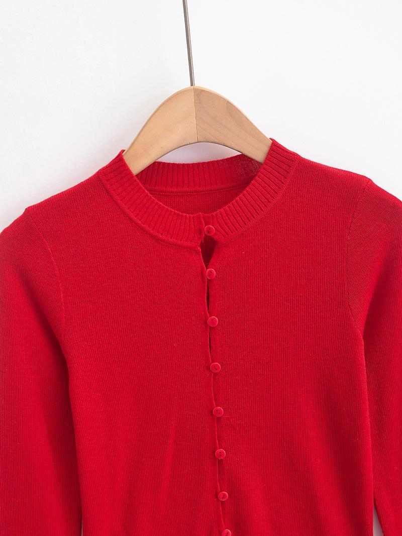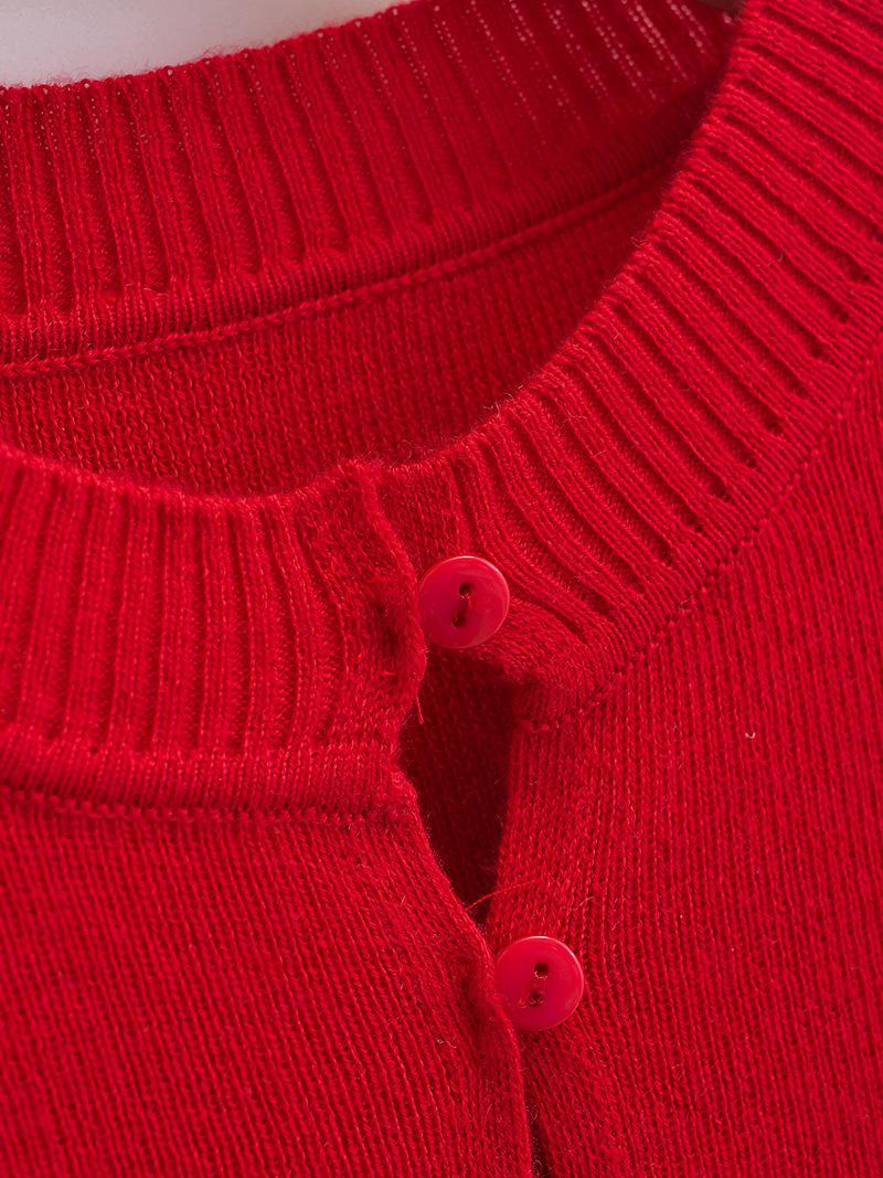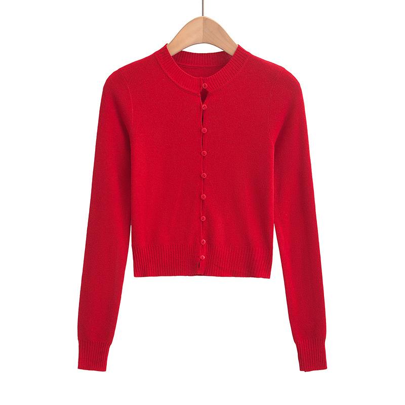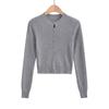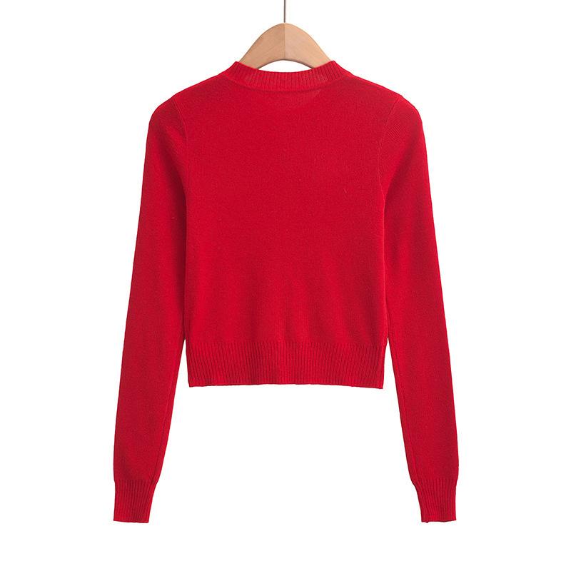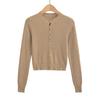 Suéter corto ajustado de otoño, elegante cárdigan francés de cuello redondo con hebilla y manga larga calada.