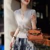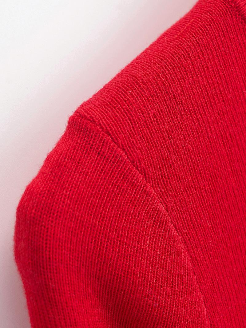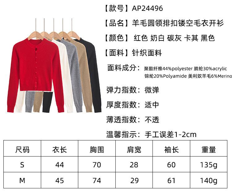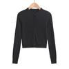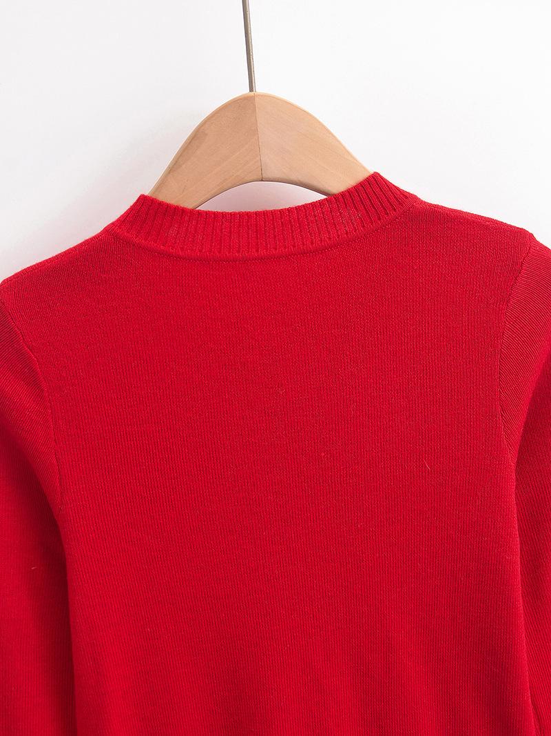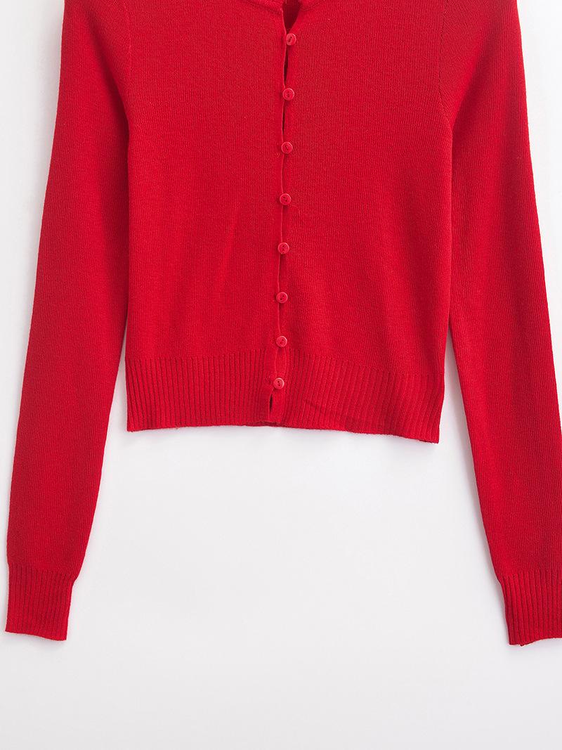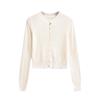 Suéter corto ajustado de otoño, elegante cárdigan francés de cuello redondo con hebilla y manga larga calada.