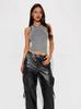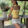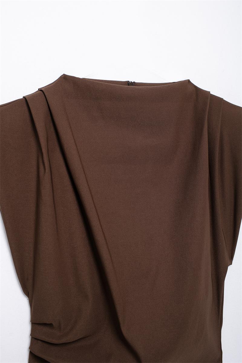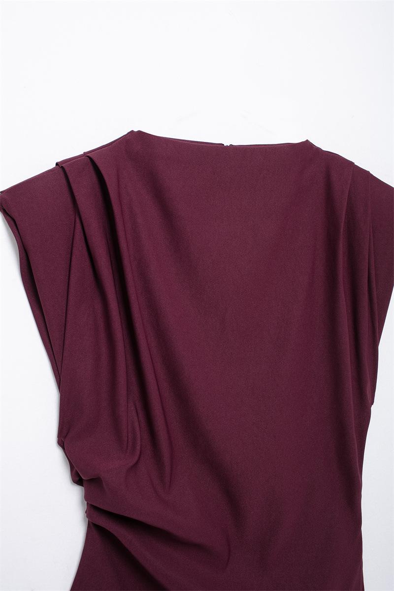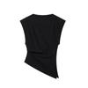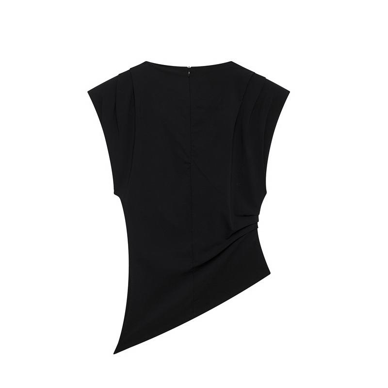Top con hombreras decorativas plisadas tricolores biseladas sexys de color sólido de primavera y verano estilo europeo y americano 2025 nuevo estilo europeo y americano para mujer