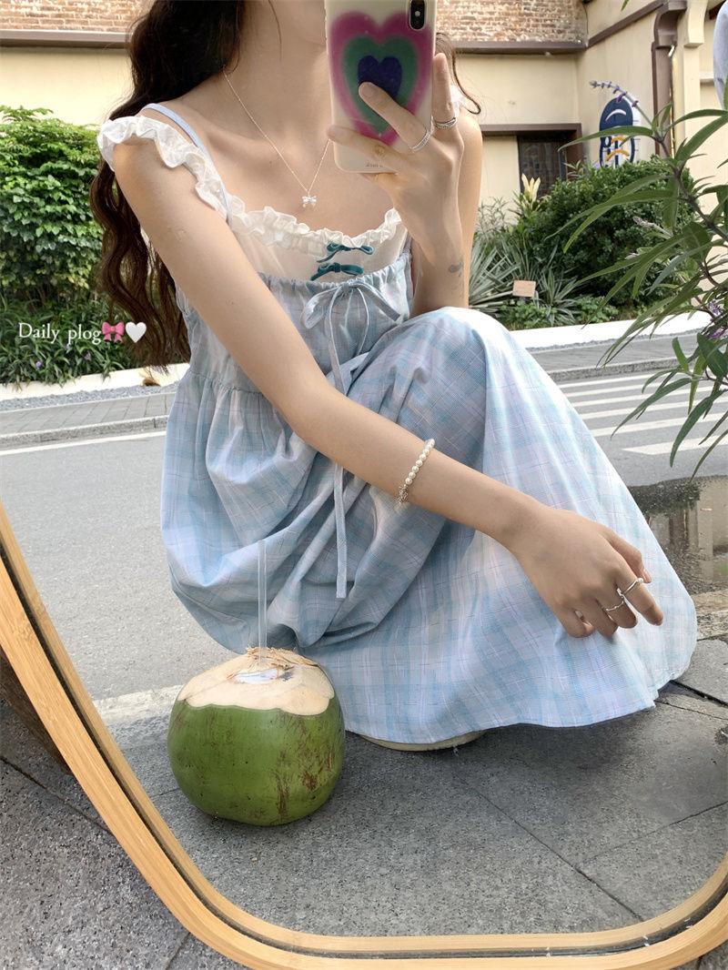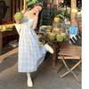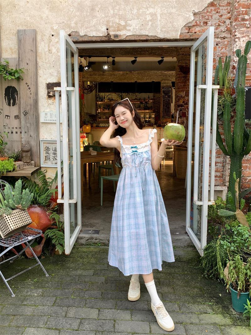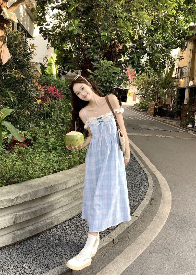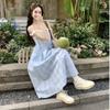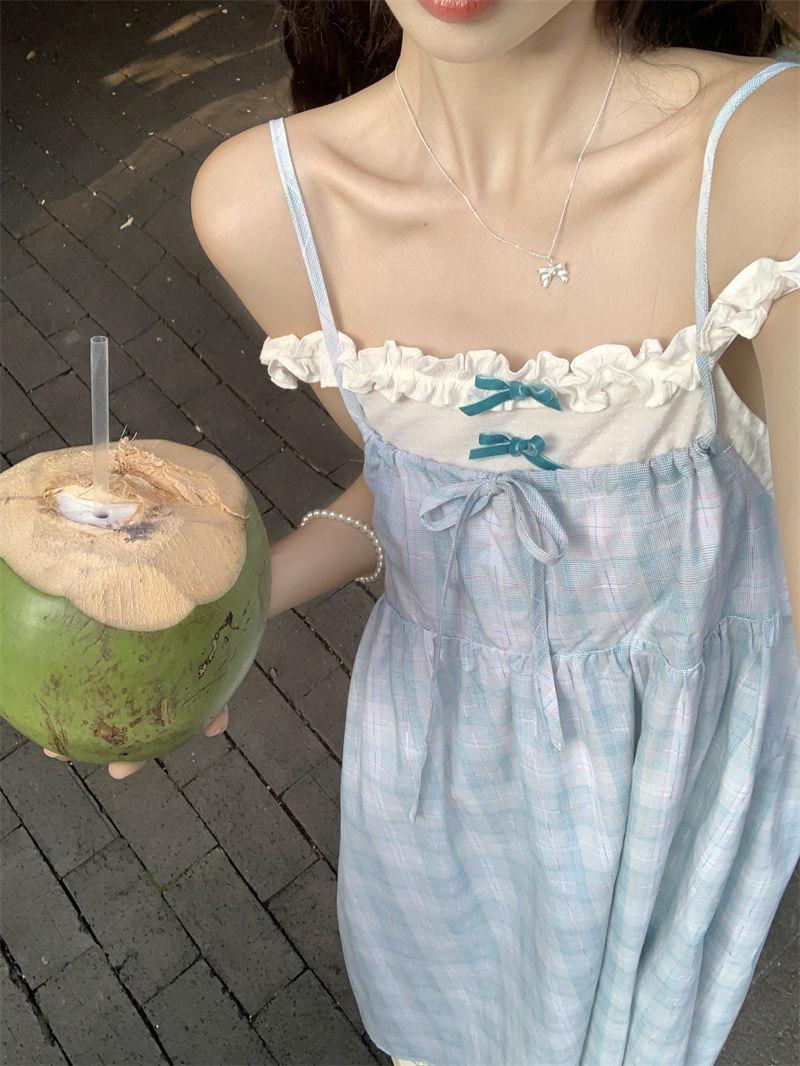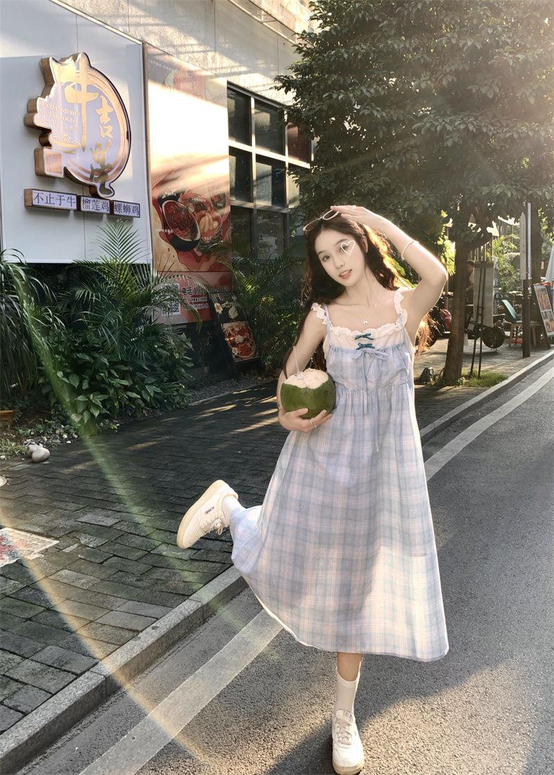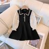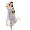 Vestido a cuadros de niña de sal, falda de verano de dos piezas falsas, falda de línea A dulce para estudiantes infantiles, Oriente Medio