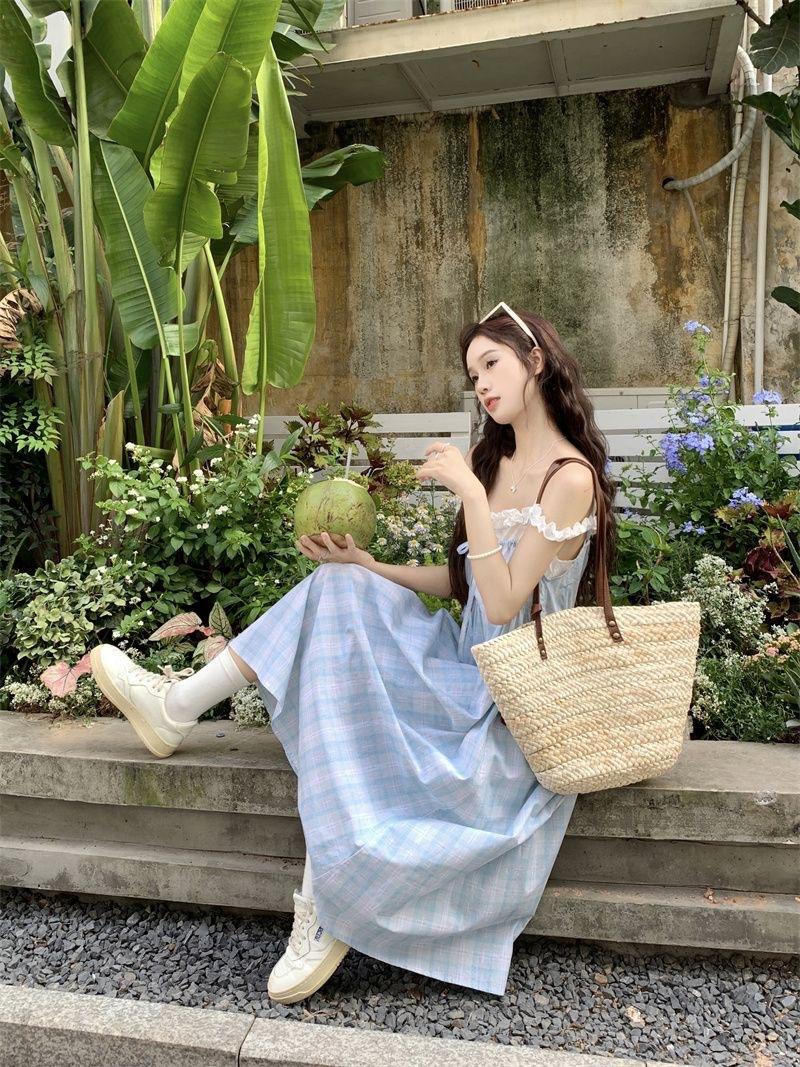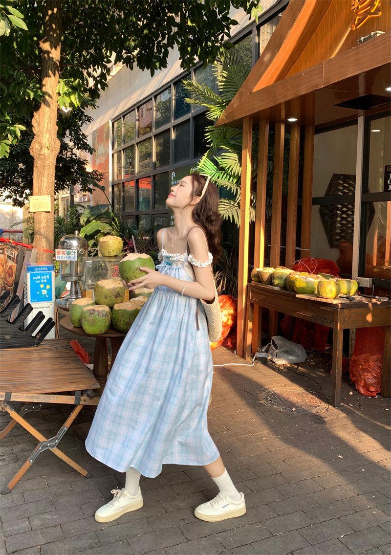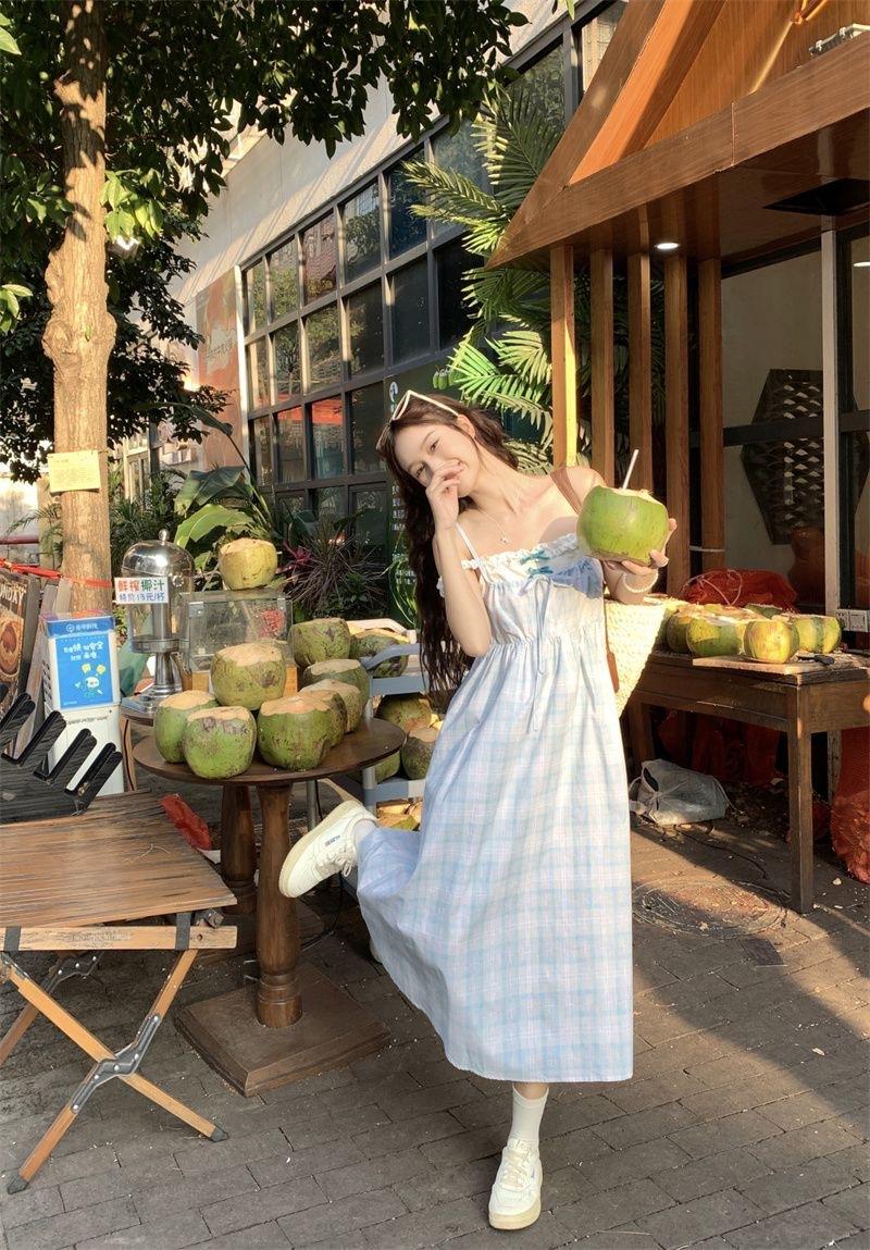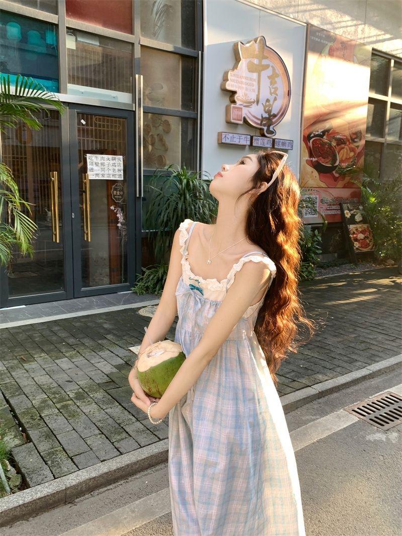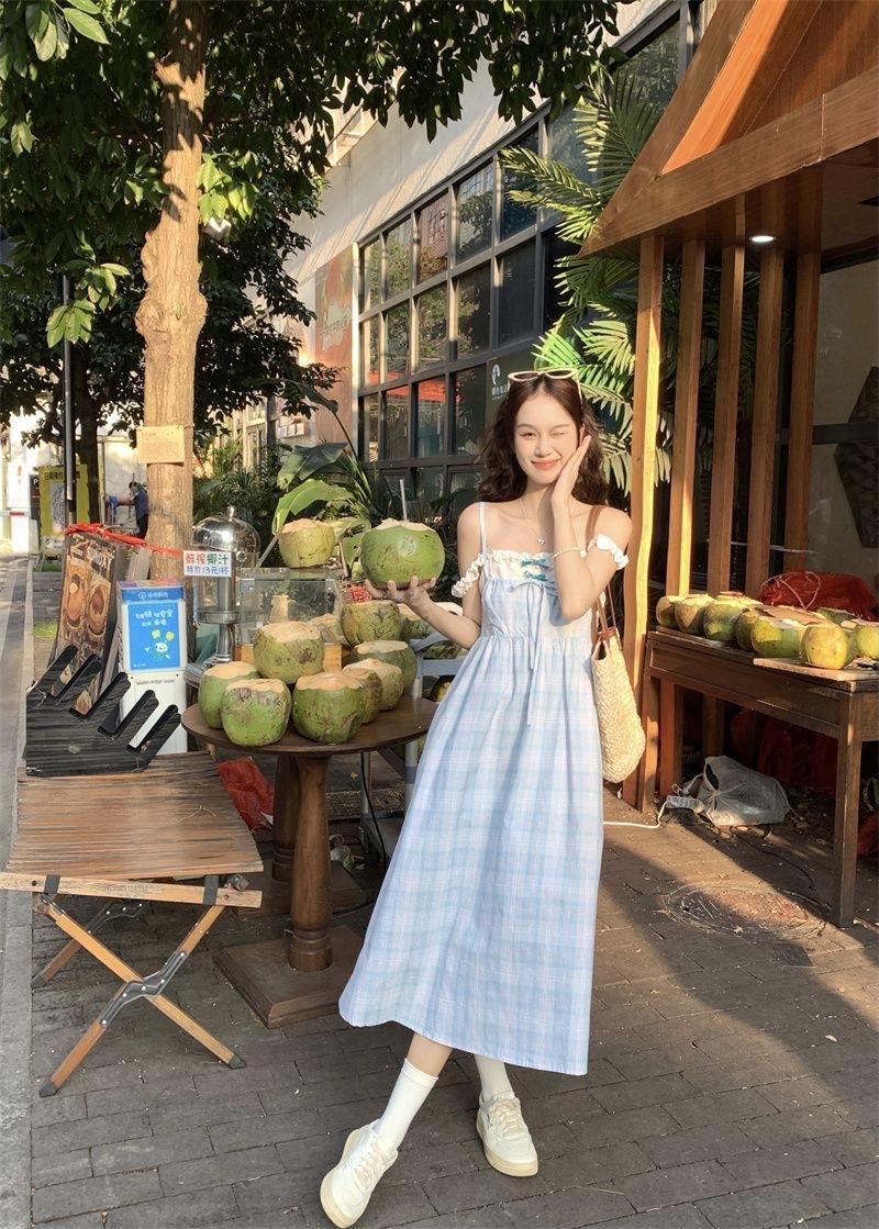 Vestido a cuadros de niña de sal, falda de verano de dos piezas falsas, falda de línea A dulce para estudiantes infantiles, Oriente Medio