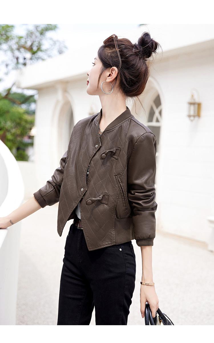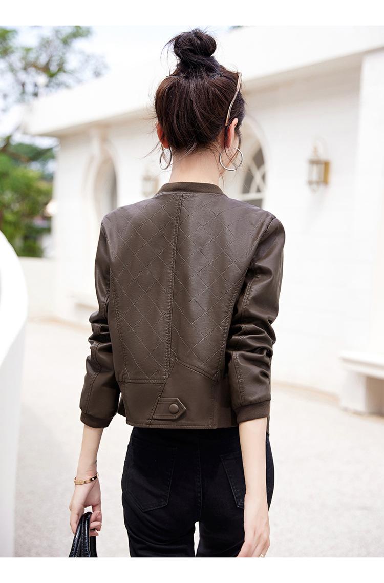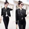 Chaqueta de motociclista de piel de oveja para mujer, estilo coreano, corta, ajustada, adelgazante, estilo occidental, primavera y otoño, 2025