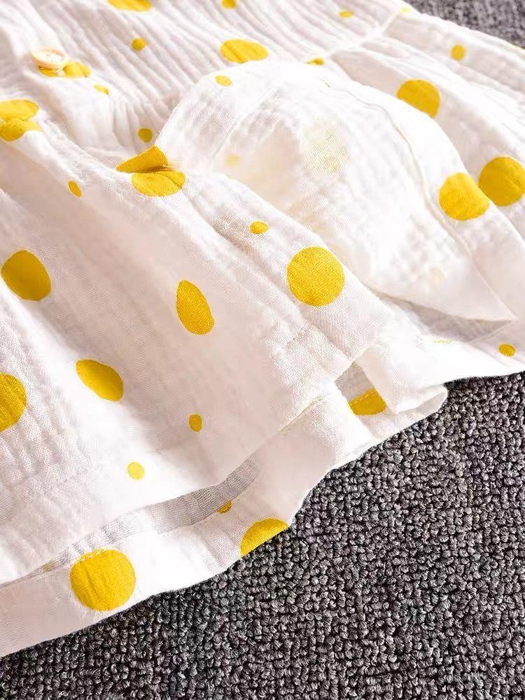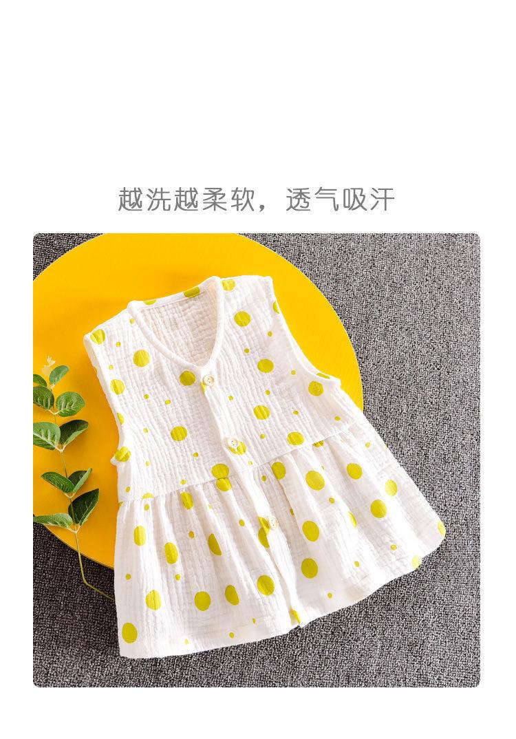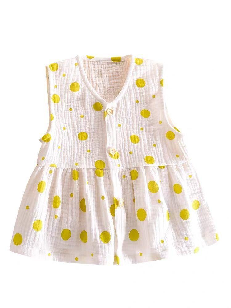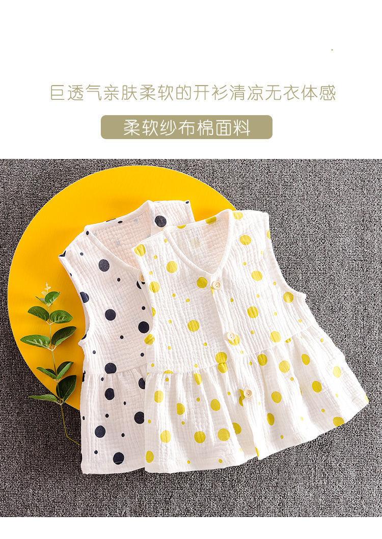 Chaleco de Algodón y Lino de Verano para Bebé Top sin Mangas de Gasa con Lunares para Niña Abrigo Estilo Occidental Cárdigan Chaleco para Niños 0011