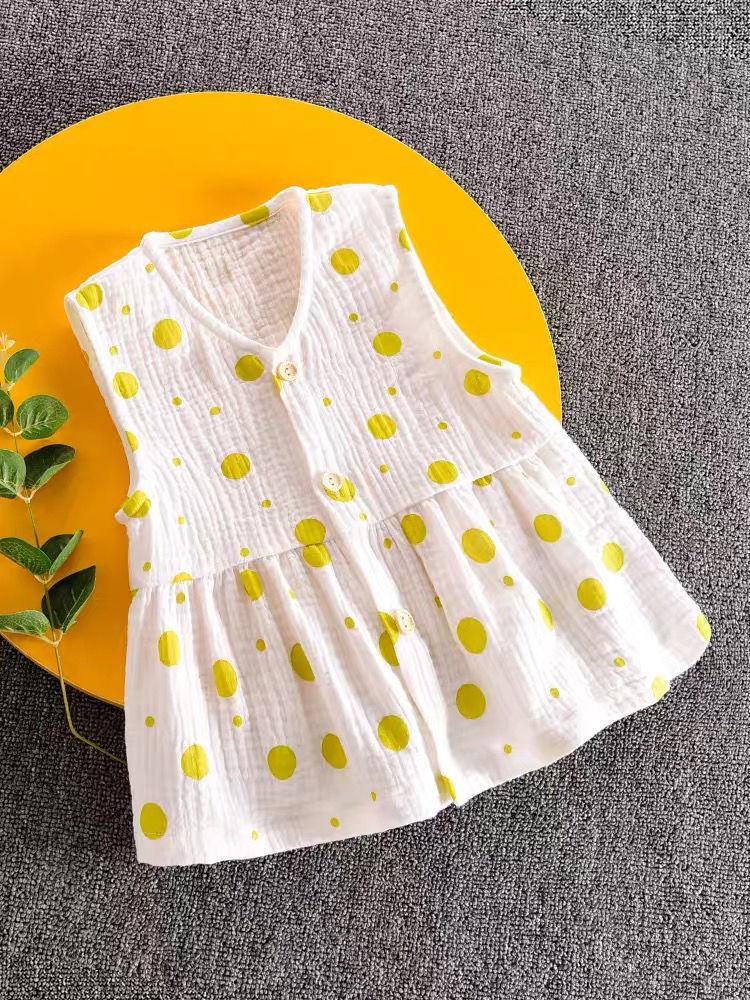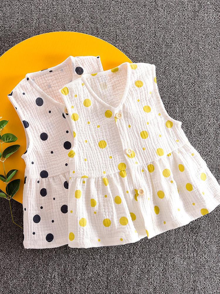Ropa de verano para bebé, chaleco de algodón y lino para niñas, top sin mangas de gasa con lunares, chaleco cárdigan de moda para niños
