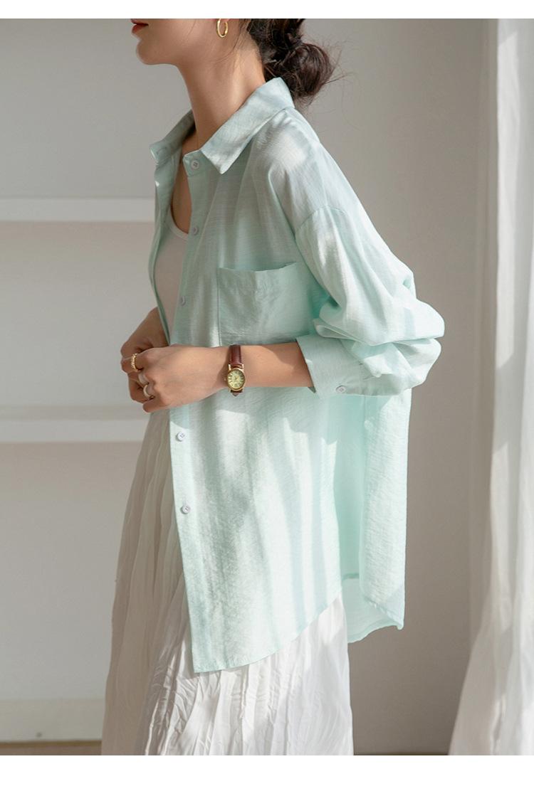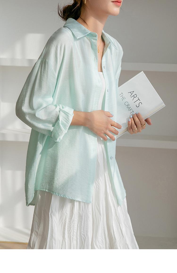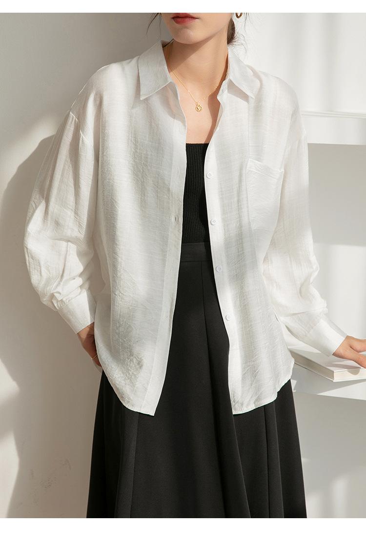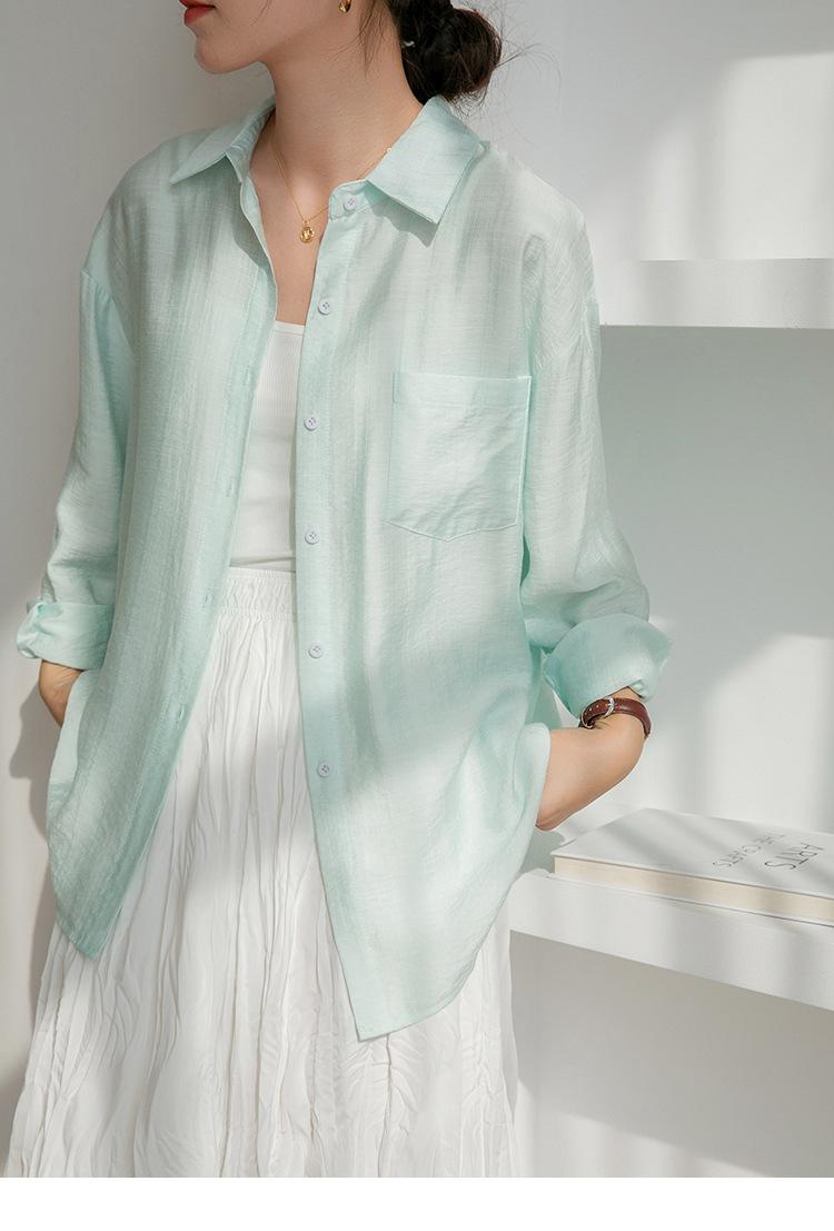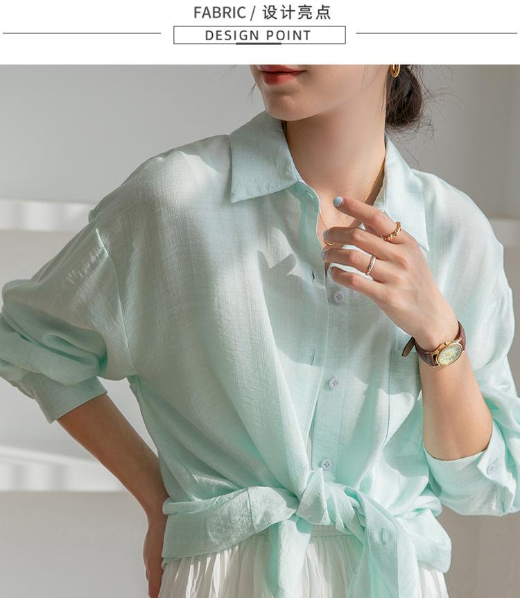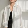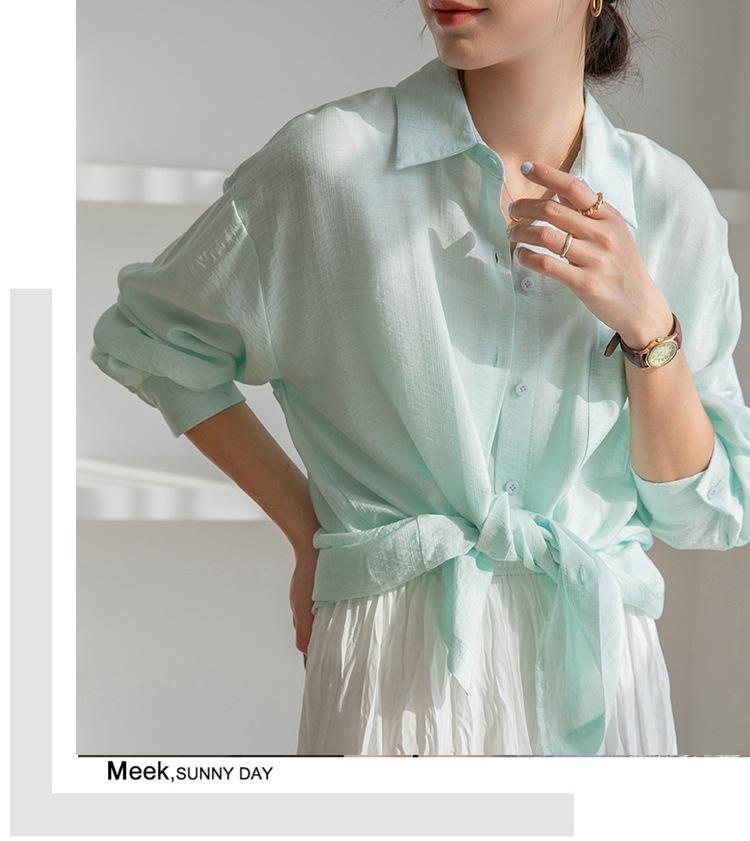 Camisa de Protección Solar Tencel para Mujer Diseño de Verano 2025 Nicho Camisa Delgada de Gasa Top Holgado Drapeado Chaqueta